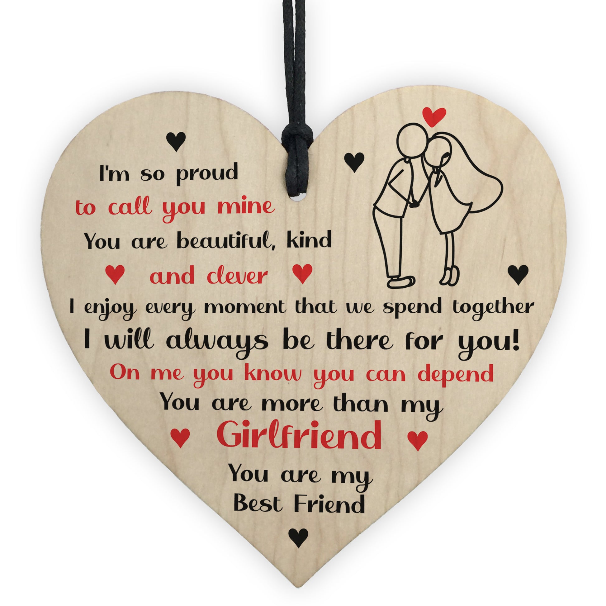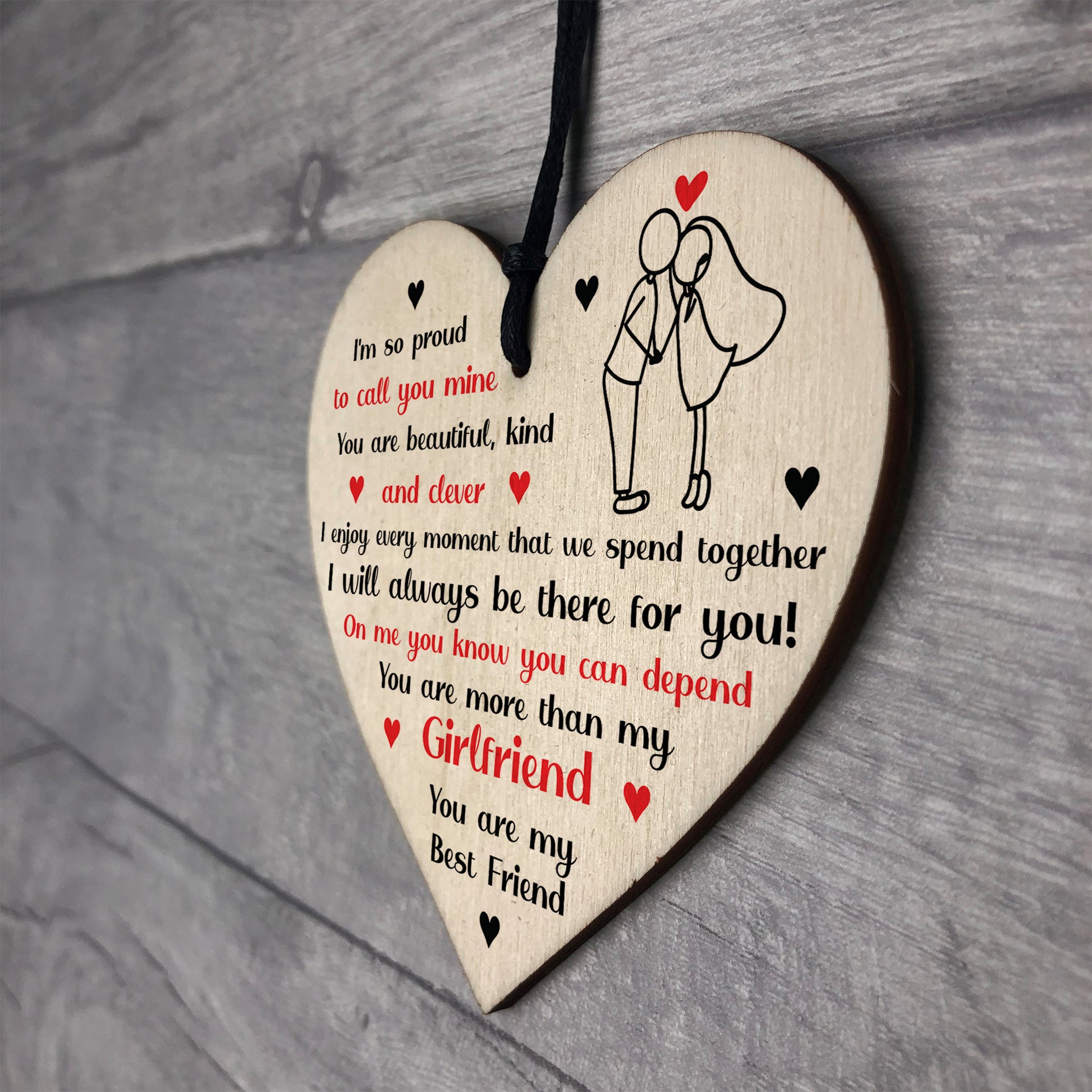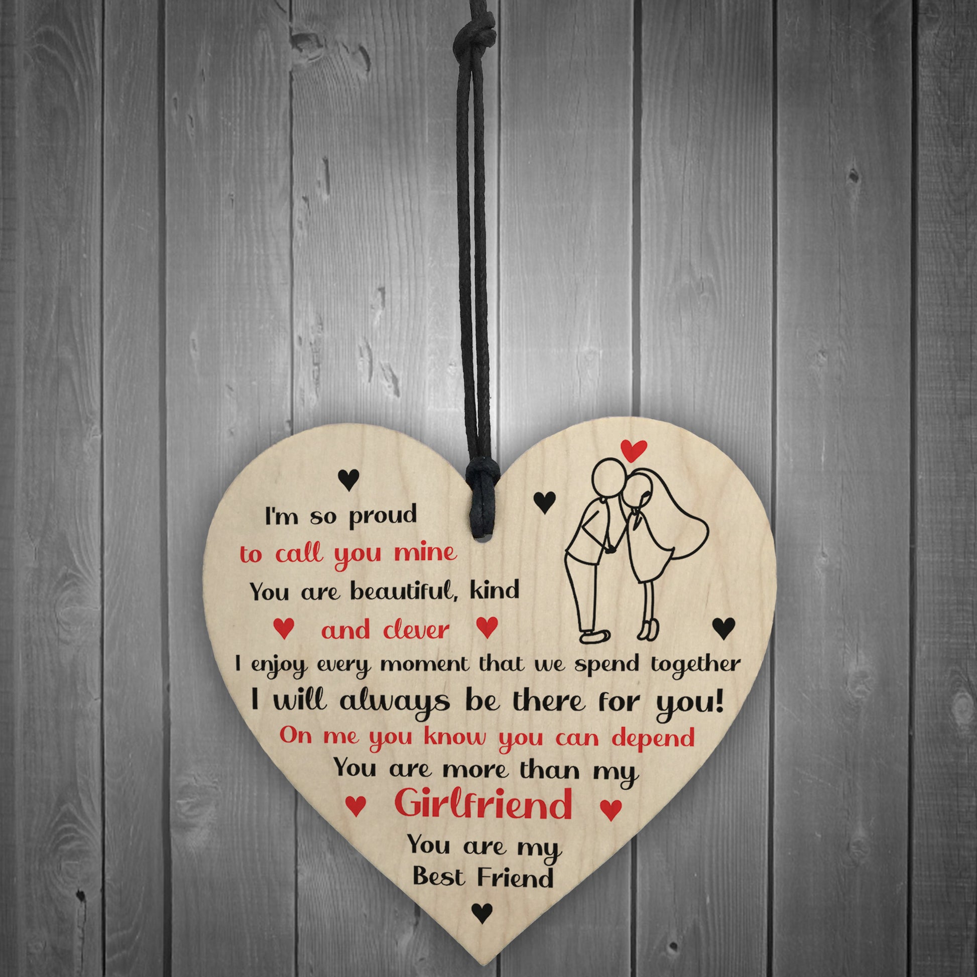 A gorgeous wooden heart plaque printed with a beautiful message would be a great gift for your Girlfriend. Give this gift with love and put a smile on your Girlfriend's face every time they read it.