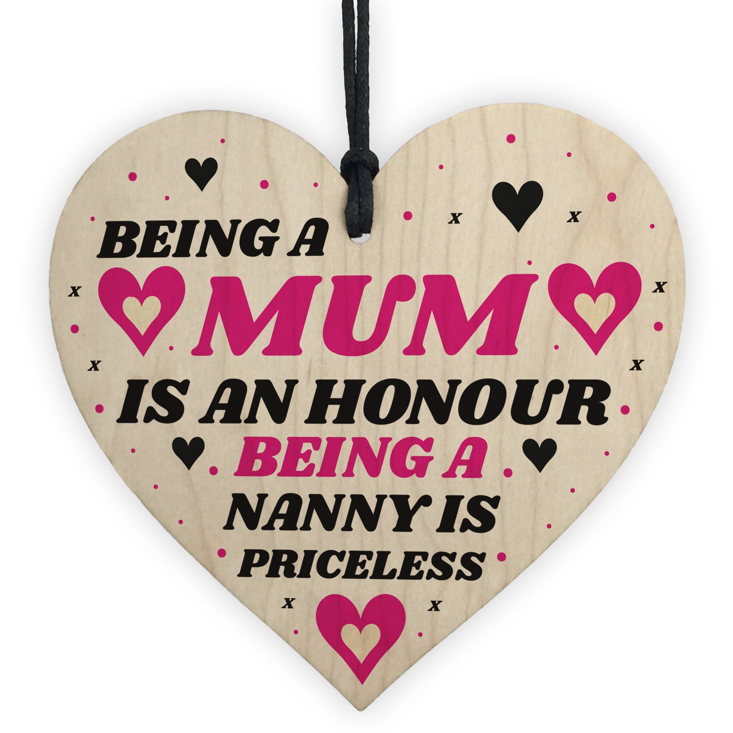 The sign is made from FSC Certified wood, and the design is permanently printed into the wood. The wooden heart is supplied with waxed cotton rope to allow easy hanging and looks great in any room of the house.