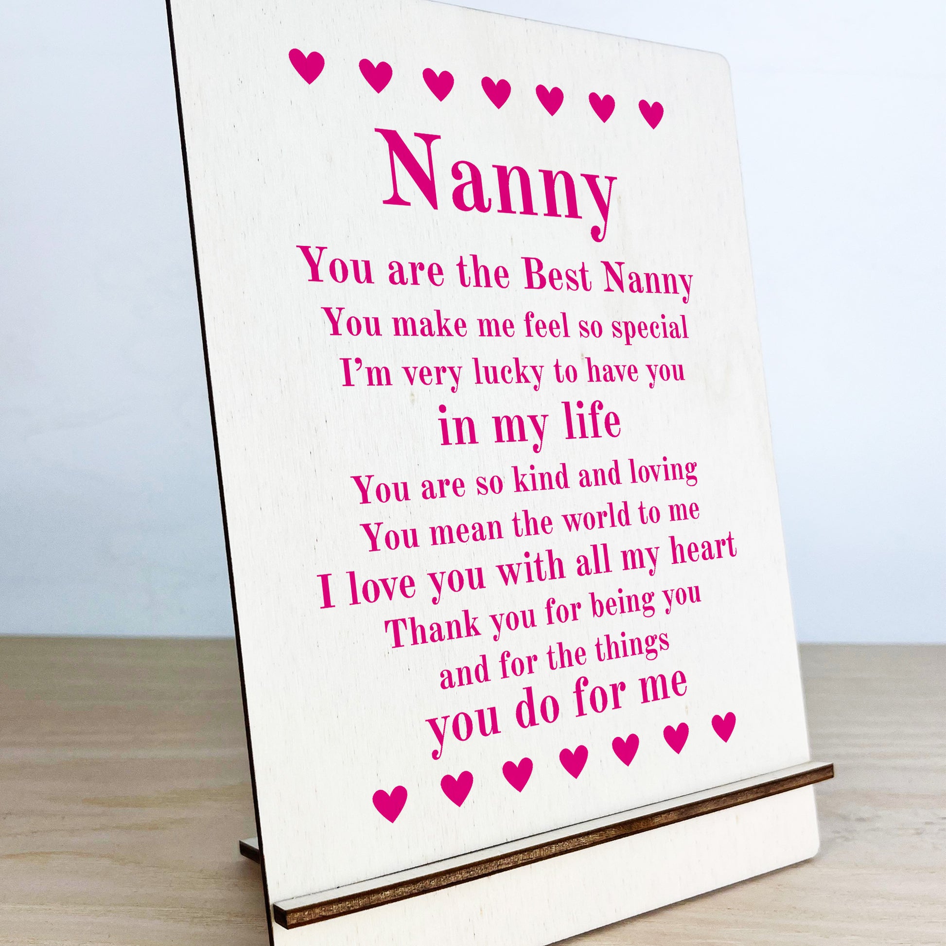 Gifts for Nanny A5 Wood Standing Sign Birthday Mothers Day Gift
