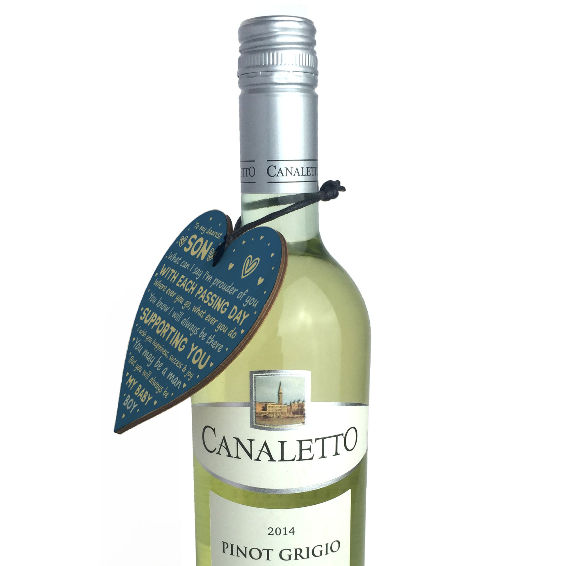 The hand crafted real wood heart measures 10cm, is gift packaged and includes a variety of waxed cotton cord to hang. We've made these for replacing traditional greetings cards, placing in hampers or on the next of a bottle, or to even hang on a Christmas Tree. There are so many uses, you are sure to not be dissapointed. We have thousands of exclusive designs, with original verses, that touch the heart.