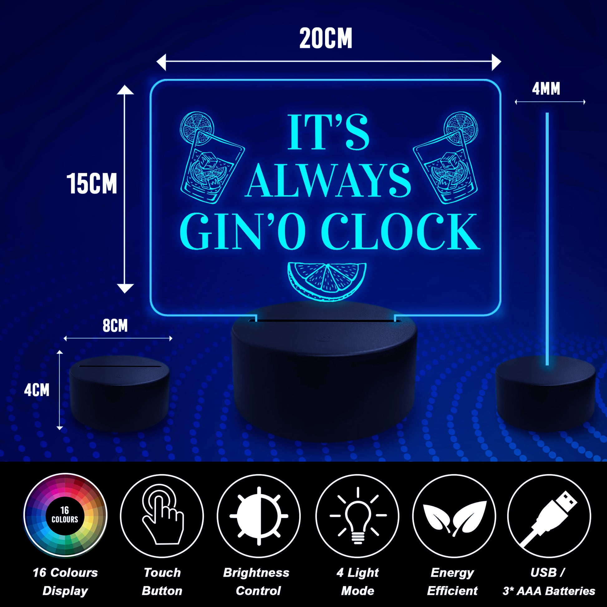 Gin Signs And Plaques GIN O CLOCK Sign Funny Alcohol Home Bar