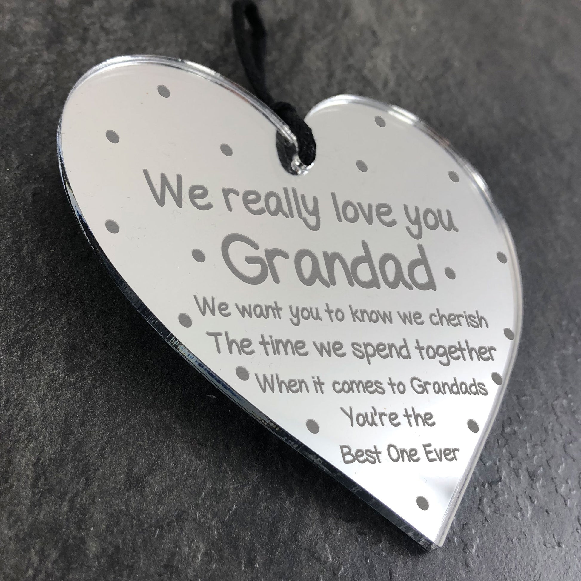 The sign is made from Mirror Acrylic, and the design is permanently engraved into the acrylic. The acrylic heart is supplied with waxed cotton rope to allow easy hanging and looks great in any room of the house.