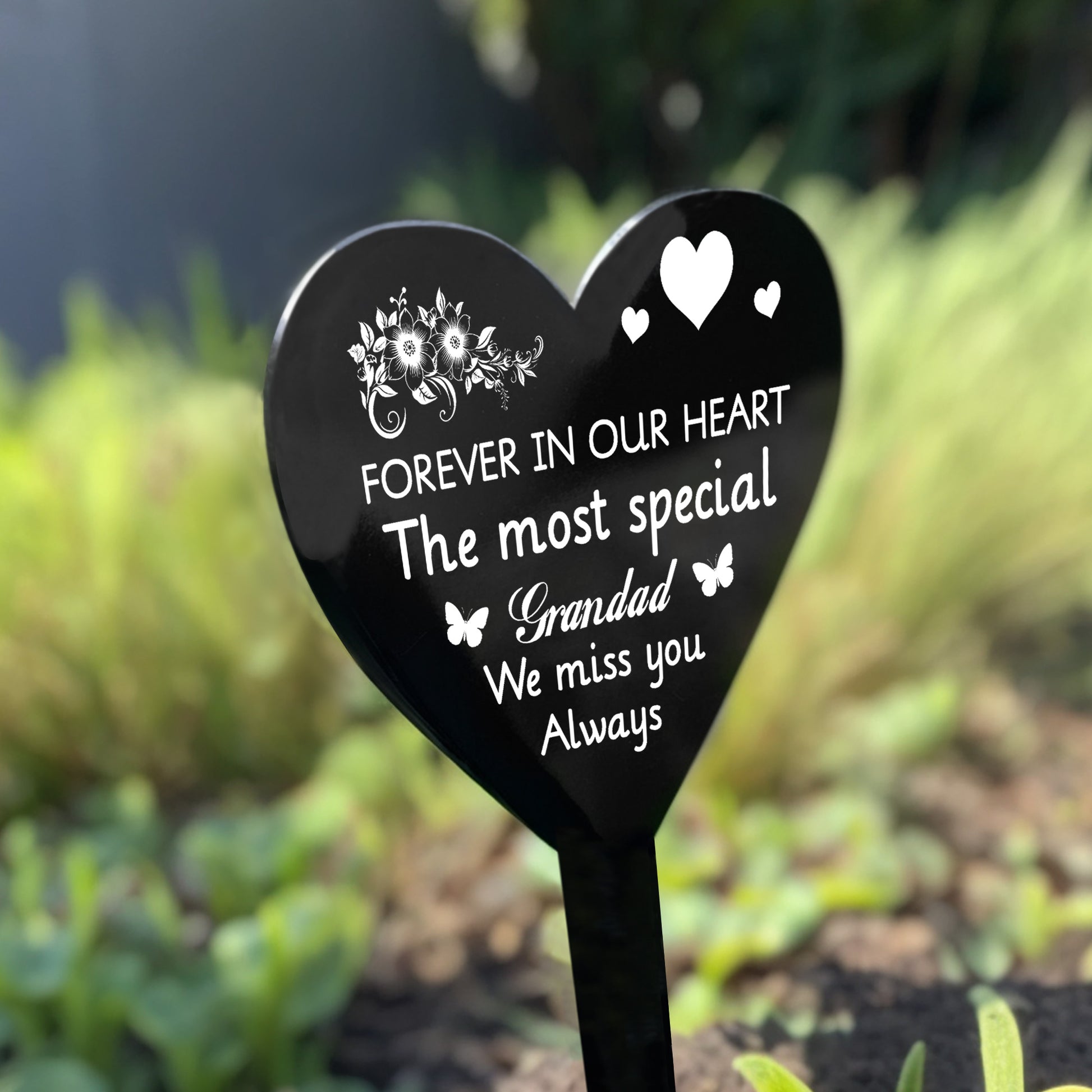 The black acrylic heart with stake is not only a beautiful and practical way to remember a loved one, but it's also a great way to add a personal touch to your garden or outdoor space. Whether you're looking to create a peaceful and reflective area or simply want to add some decoration to your garden, this memorial plaque is the perfect choice.