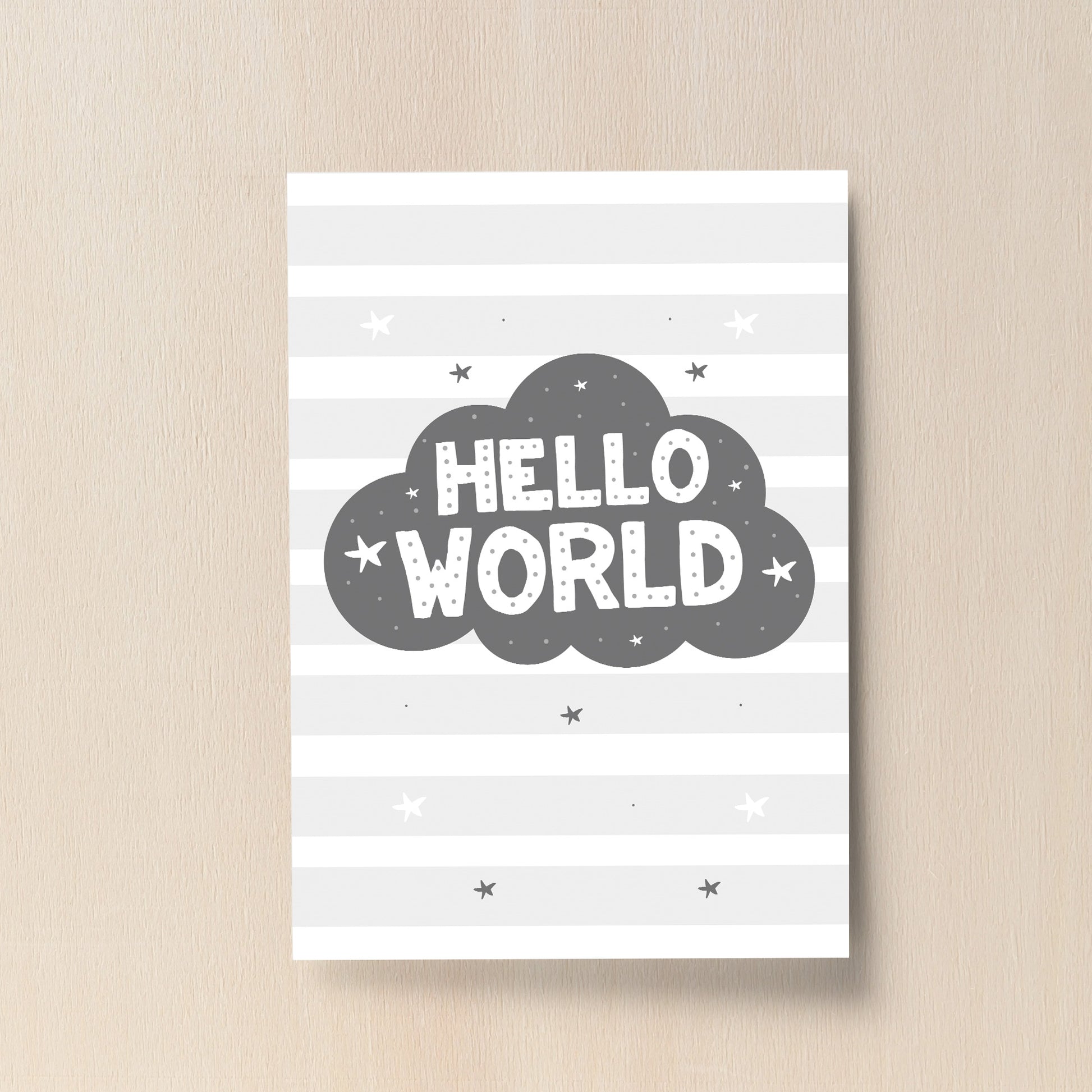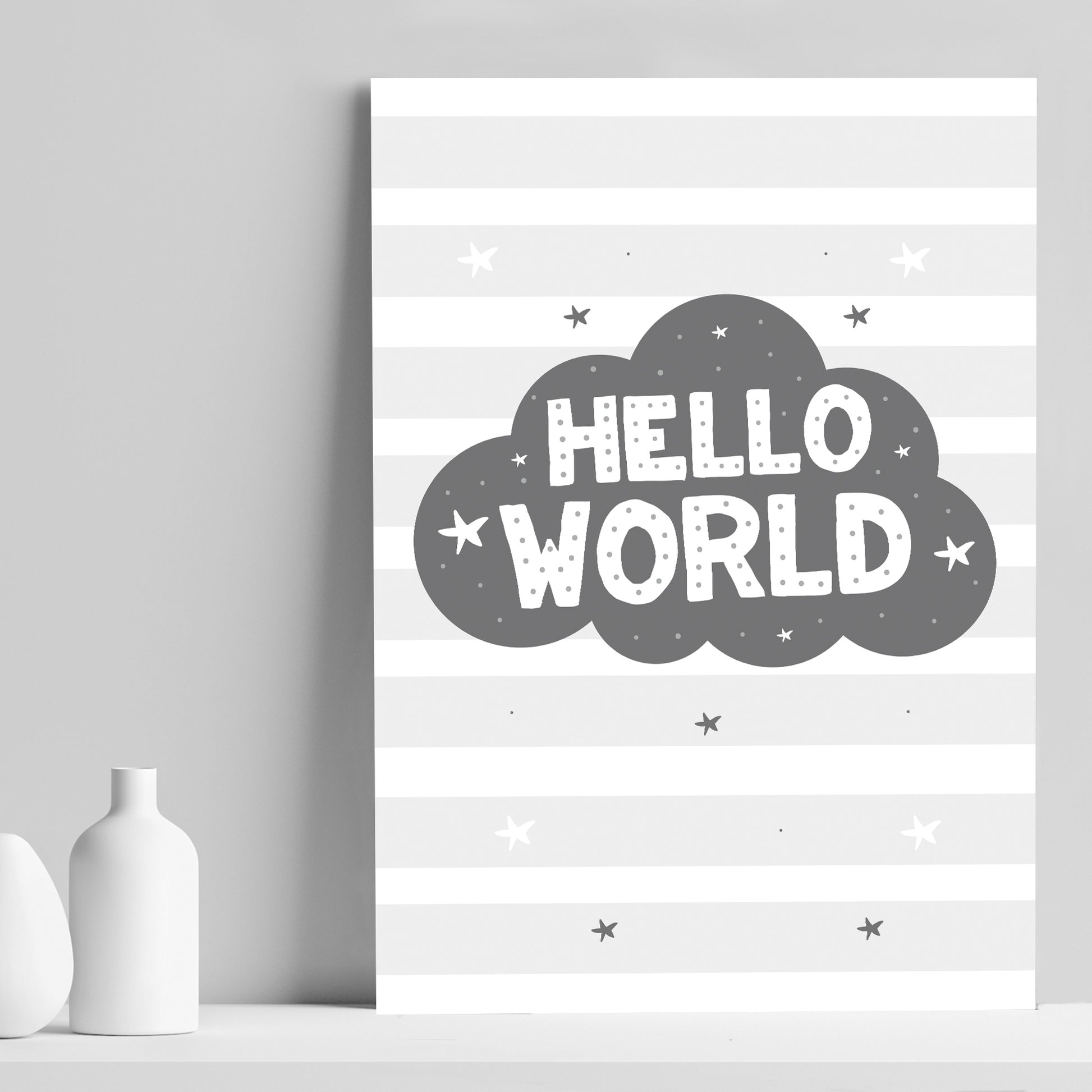 Grey Nursery Print Hello World Baby Room Pictures Wall Art Gift