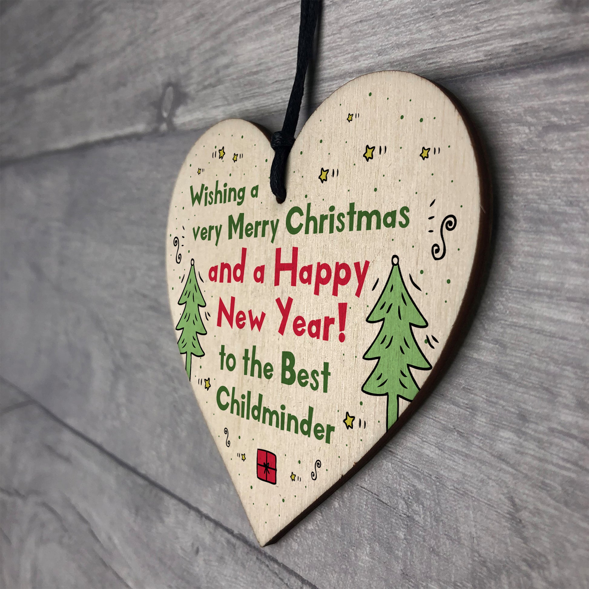 Handmade Christmas Gift For Childminder Wooden Heart Thank You