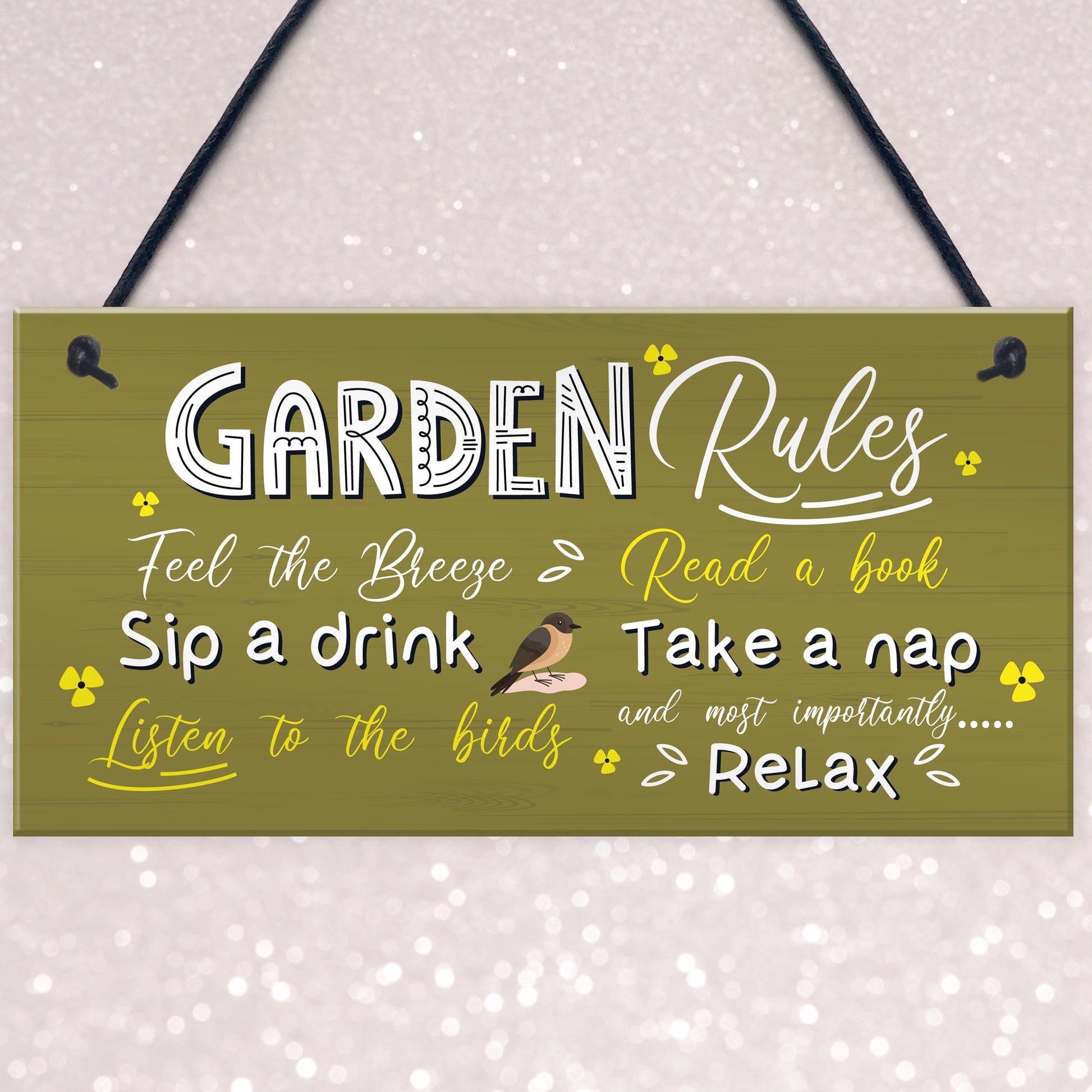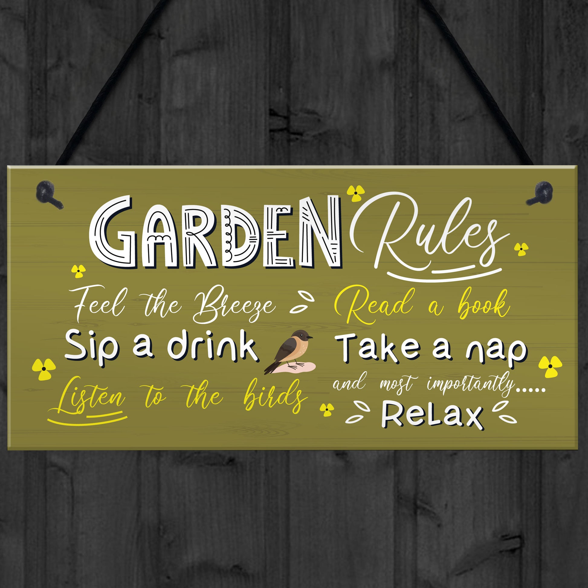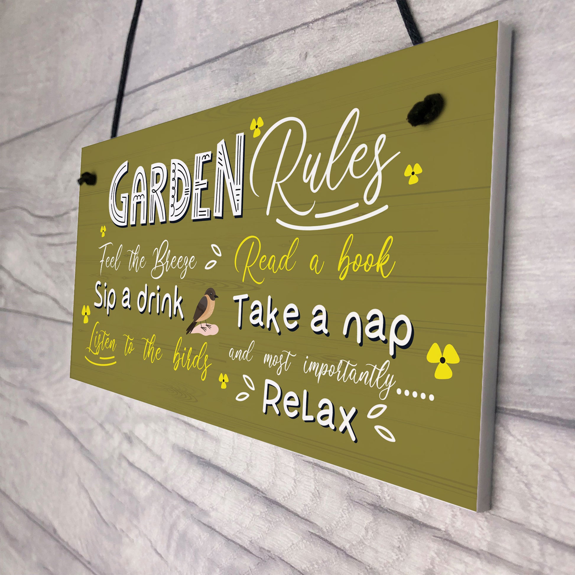 Handmade Hanging Wall Plaque Garden Rules Sign For Gardener