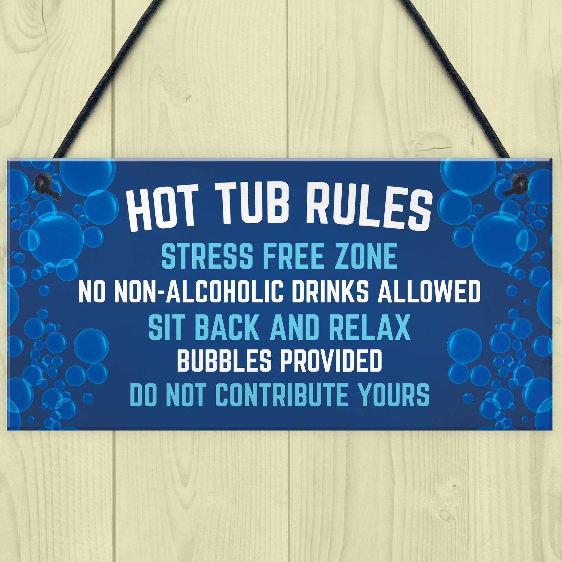 Hanging Hot Tub Rules Plaque Funny Garden Sign For Hot Tub