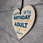 A gorgeous wooden heart plaque printed with a lovely birthday message that is the perfect gift for someone turning 18! and becoming an ADULT. Give this gift with love and put a smile on your friend's/ brother or sisters face every time they read it.