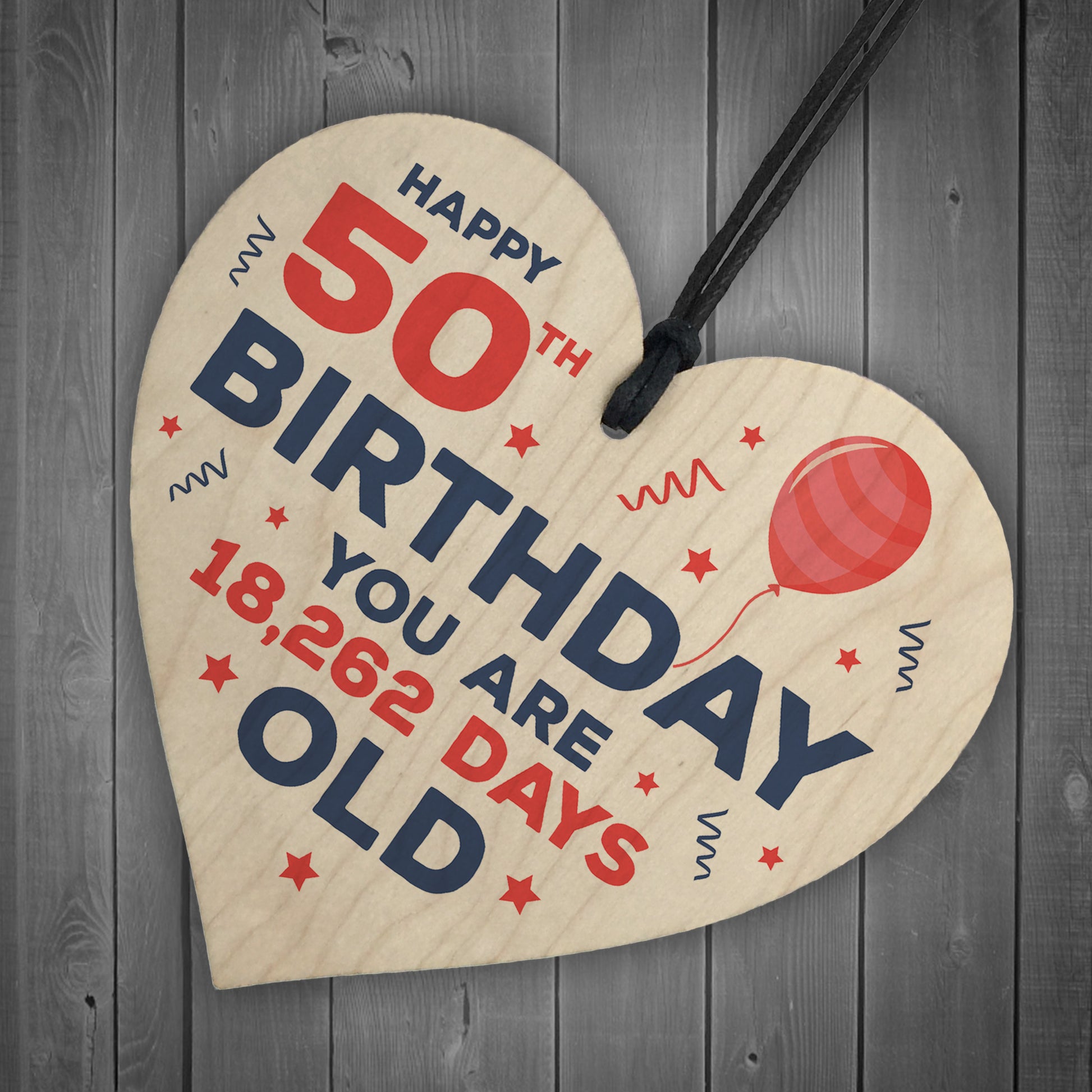 Happy 50th Birthday Funny Novelty Wooden Heart Birthday Gifts