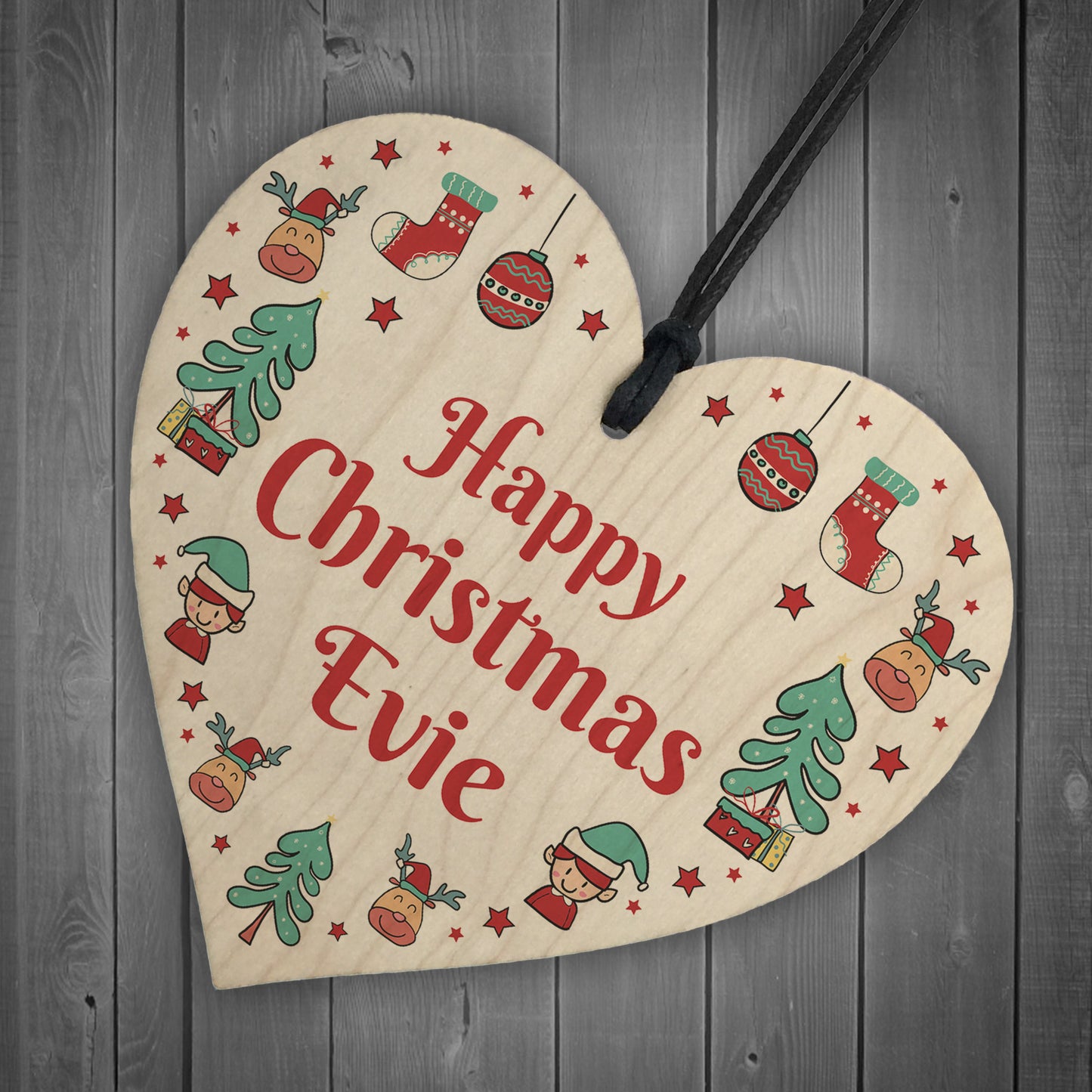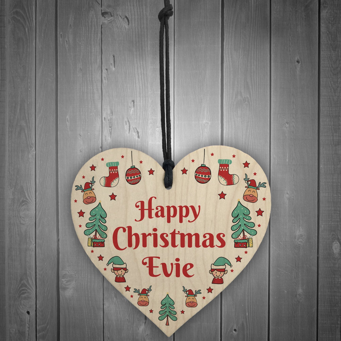 Happy Christmas Gift Personalised Hanging Heart 1st Christmas