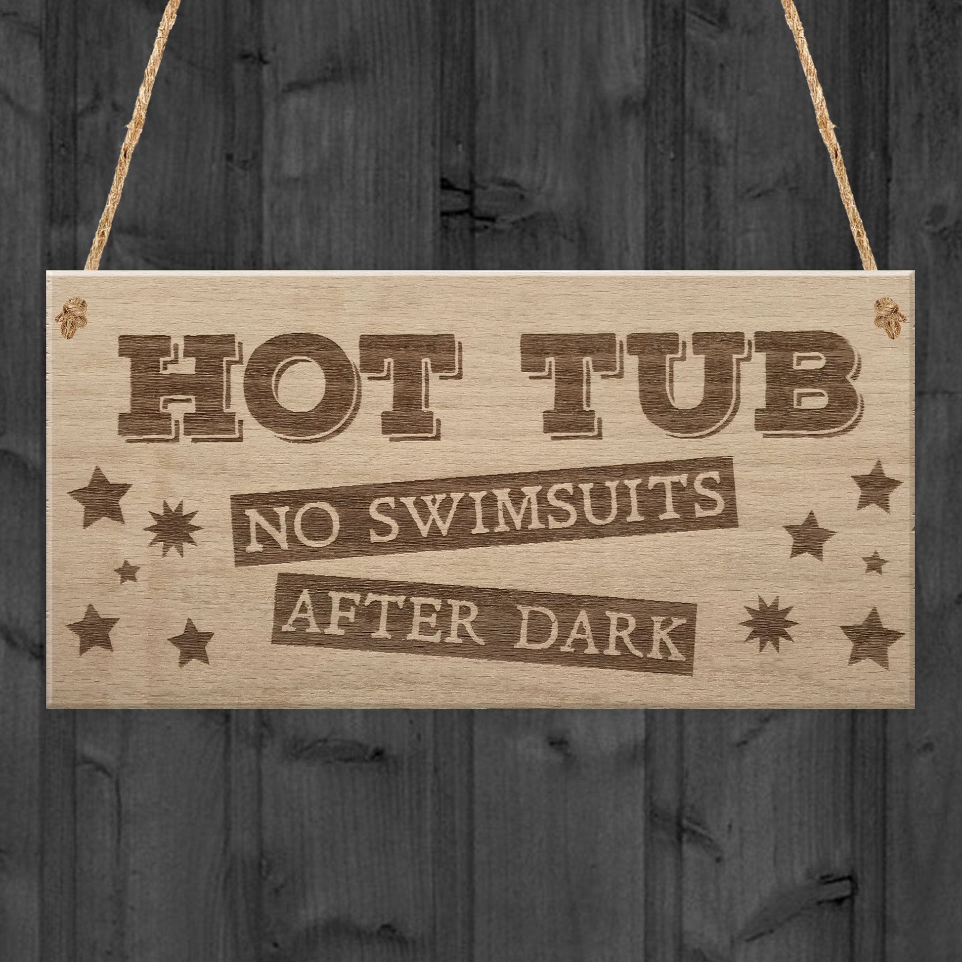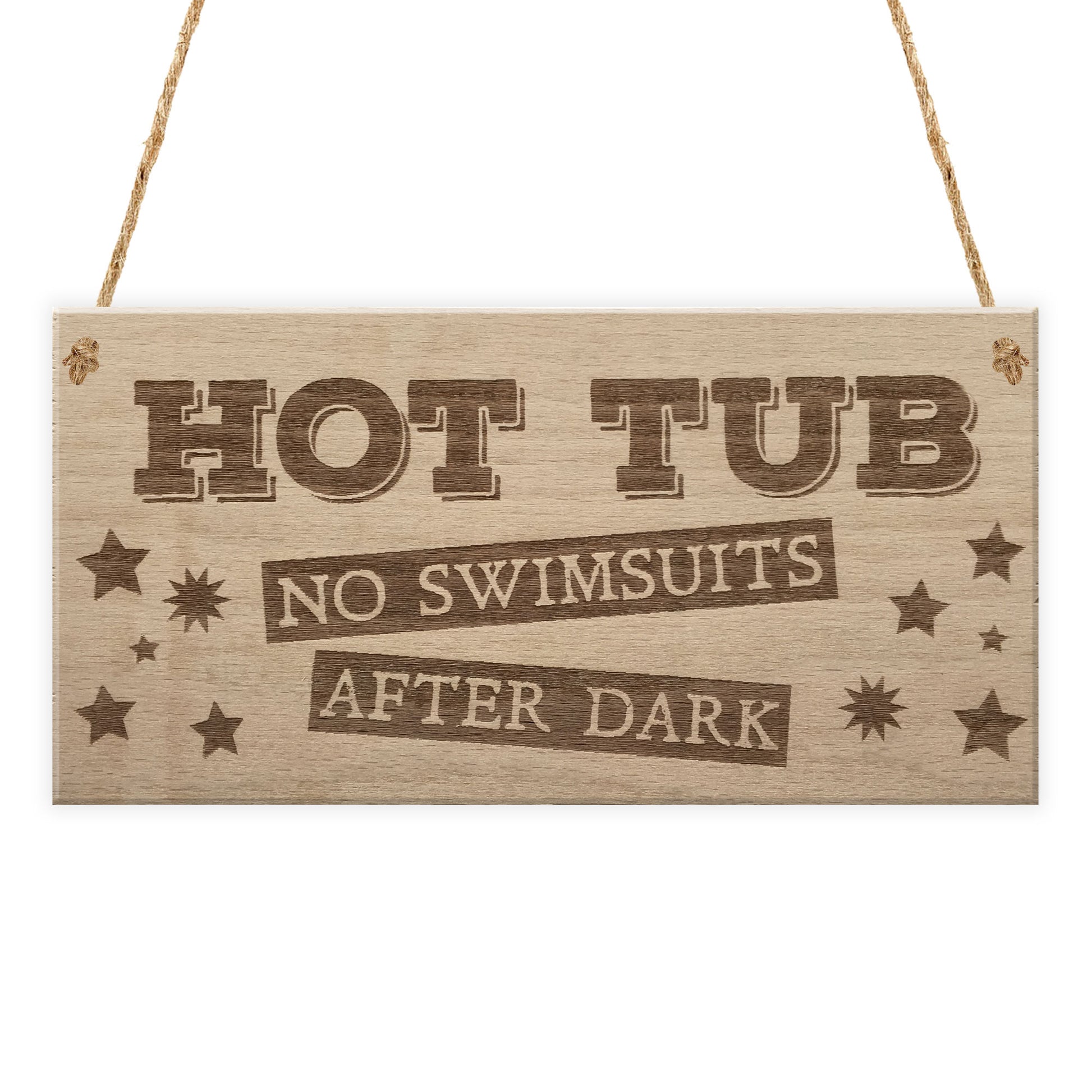 The perfect sign to compliment a hot tub, let people know the rules of the tub, no swimsuits after dark! Supplied ready to hang, a beautiful keepsake that will be treasured for years to come. As a stunning plaque it makes a fantastic gift for a Birthday, Christmas or maybe an Anniversary or just a gift for whatever the time of the year! Don't miss out and get yours today!