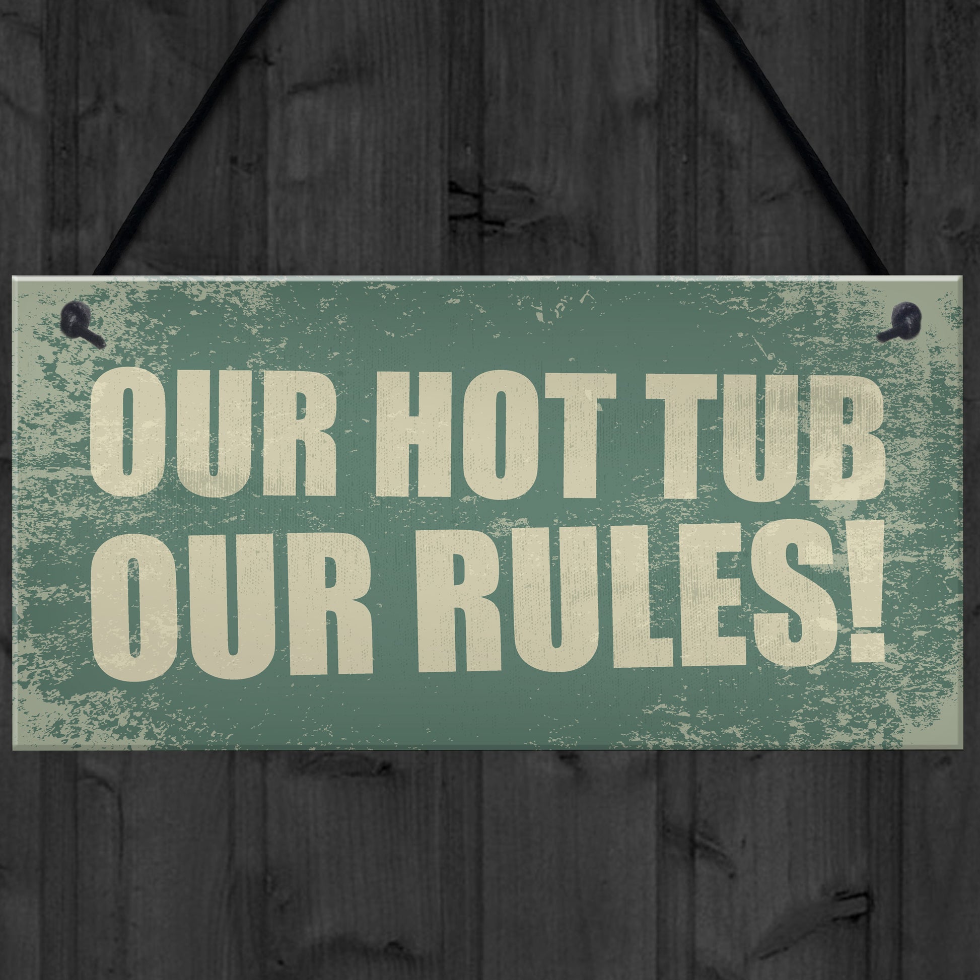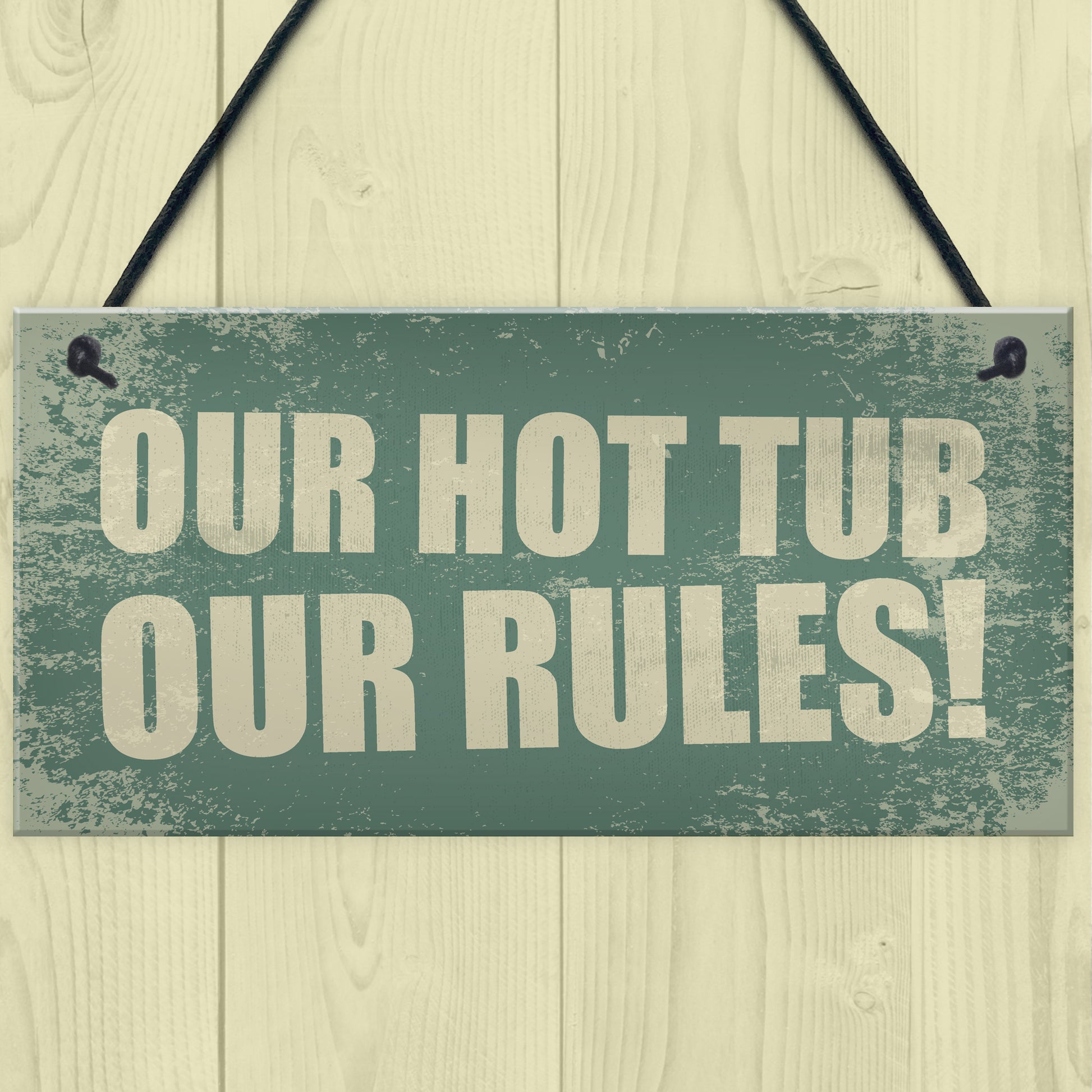 Hot Tub Our Rules Hanging Garden Shed Plaque Jacuzzi FRIEND Gift