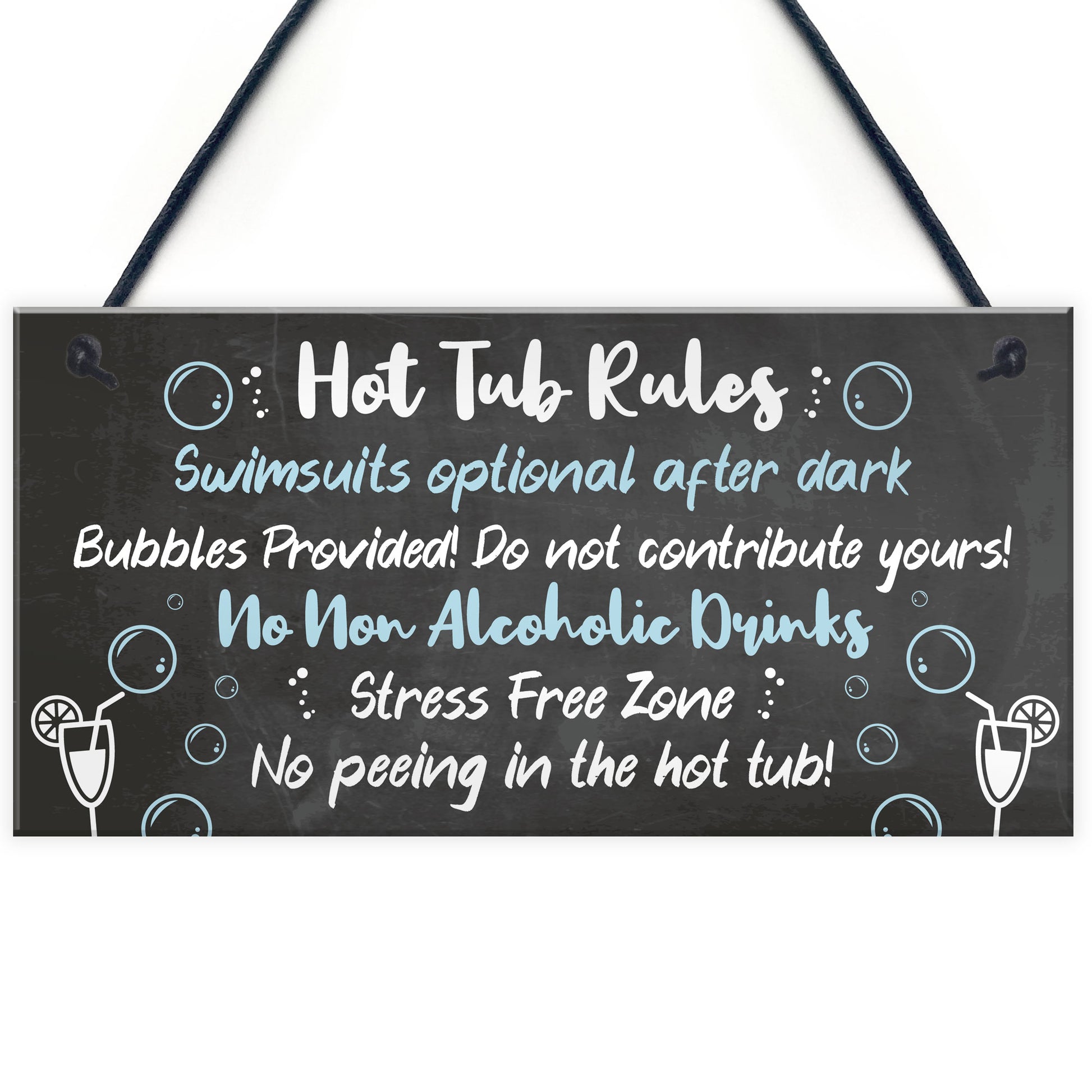 Contribute Yours No Non-Alcoholic Drinks Stress Free Zone No peeing in the hot tub".Our hot tub set of three will be lovely to add to your Garden with our bright summer colours!