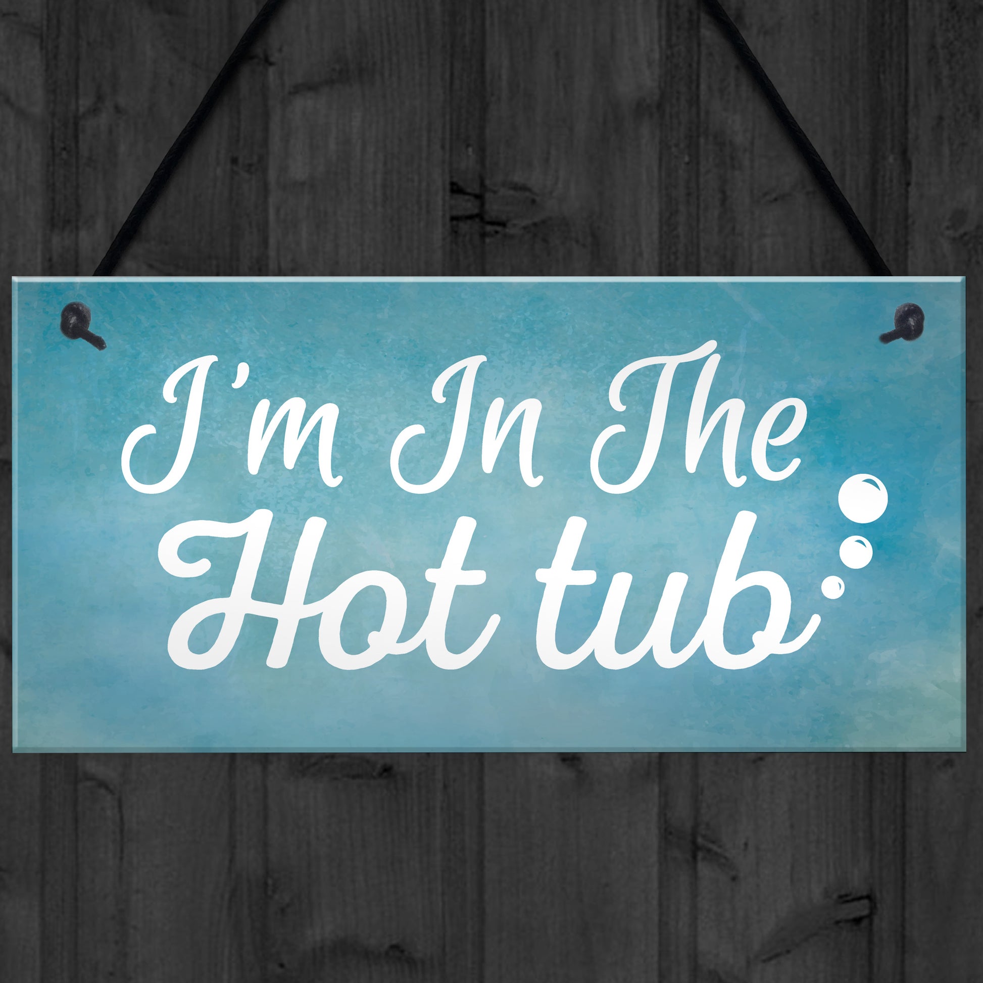 I'm In The Hot Tub Garden Shed Jaccuzi Pool Wooden Heart Novelty