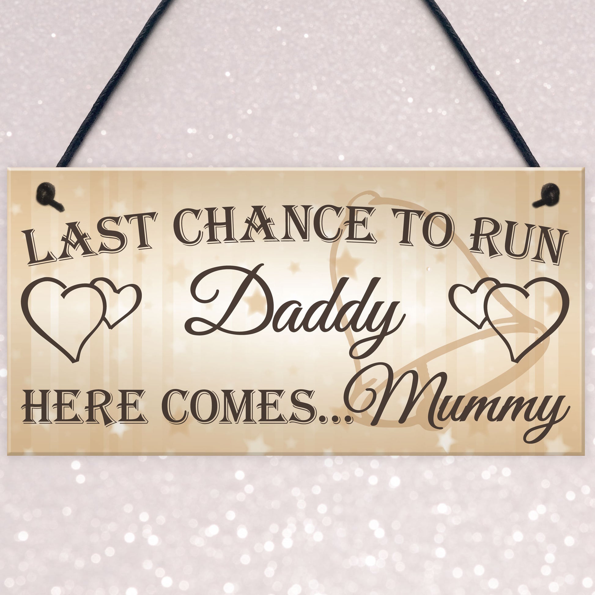 Last Chance To Run Daddy Cute Hanging Wedding Day Plaque