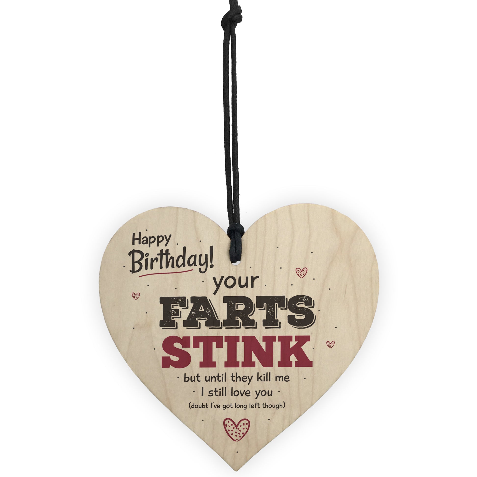 This gorgeous wooden heart plaque printed with this funny message would be a great gift for your Mum, Dad, Girlfriend or Boyfriend on their Birthday. Give this gift with love and make them laugh every time they read it. A lovely keepsake which they can have forever.