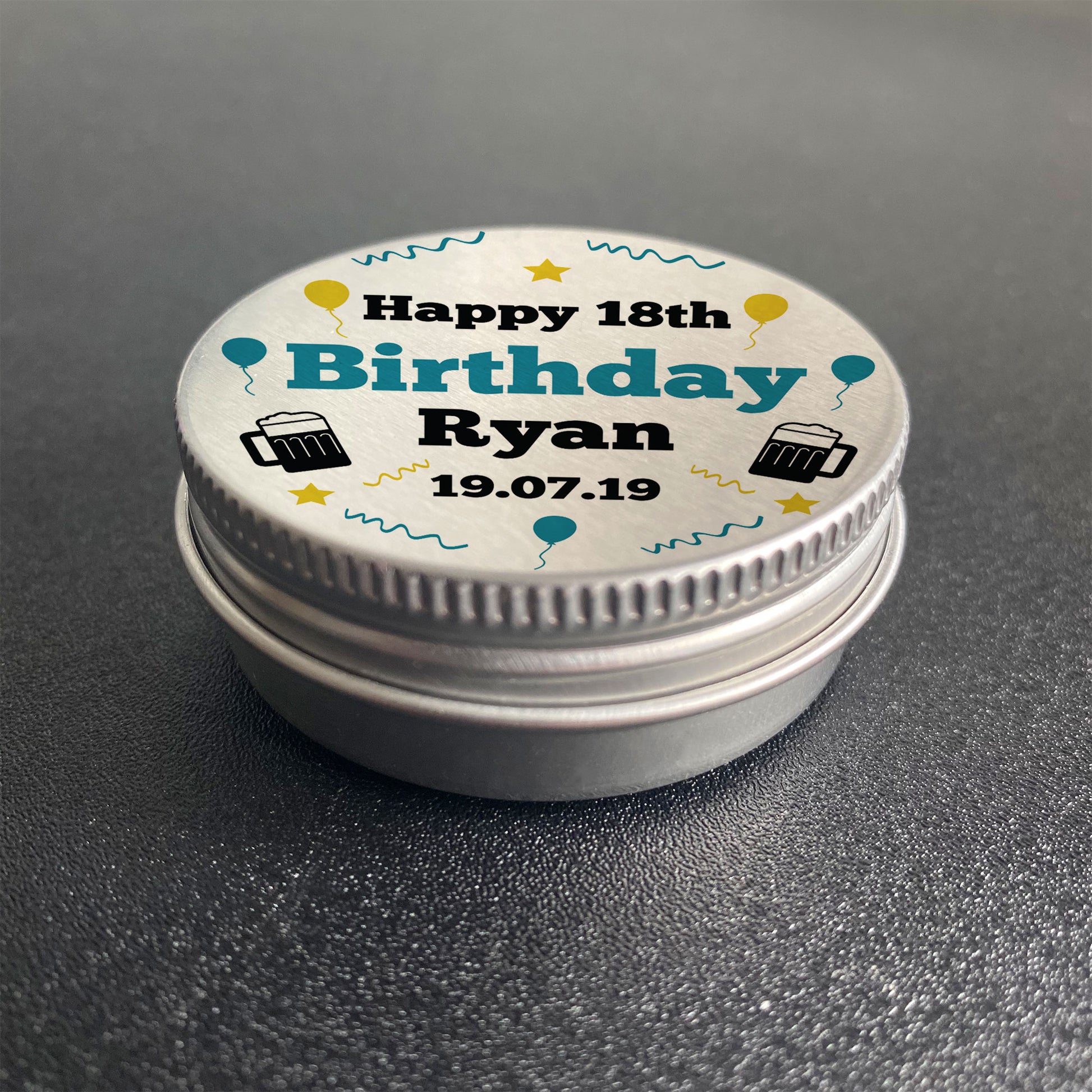 A lovely personalised favour tin for any occassion to put sweets or chocolate in. The perfect table decoration for a wedding, birthday party or stocking filler at christmas. A lovely keepsake that will be treasured for years to come. 18th Birthday Gift! Birthday Gift For Him! 18th Birthday Decorations! Birthday Decorations!