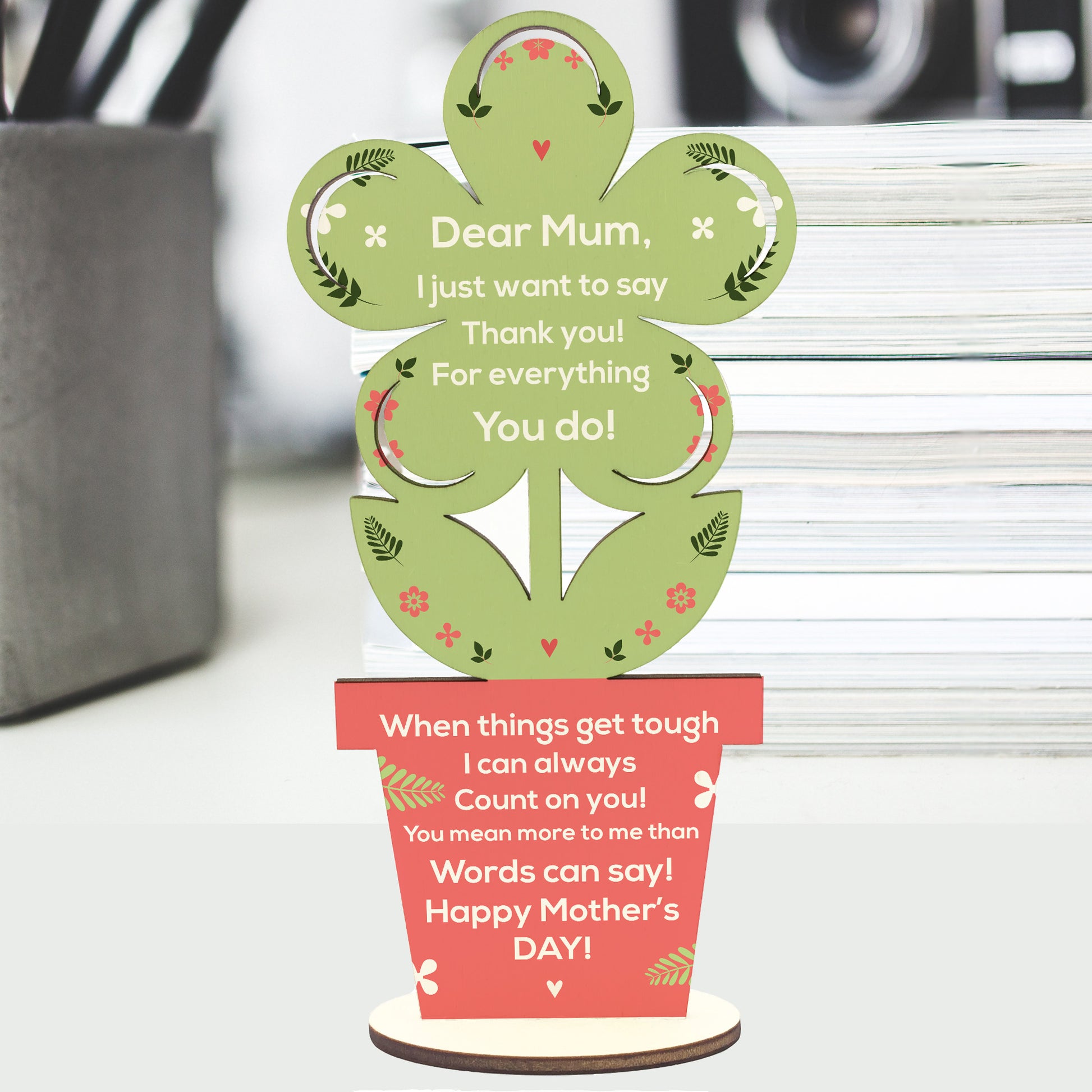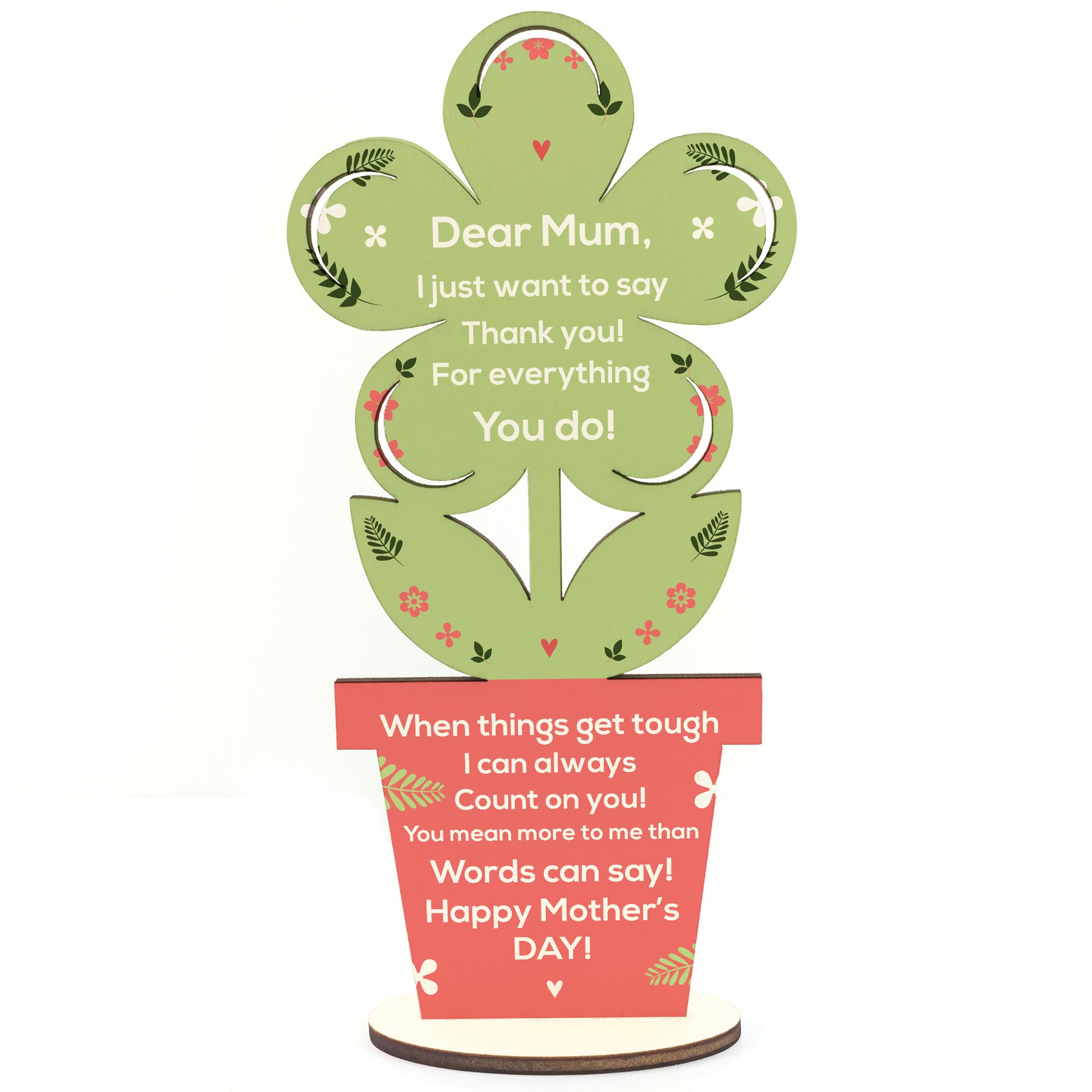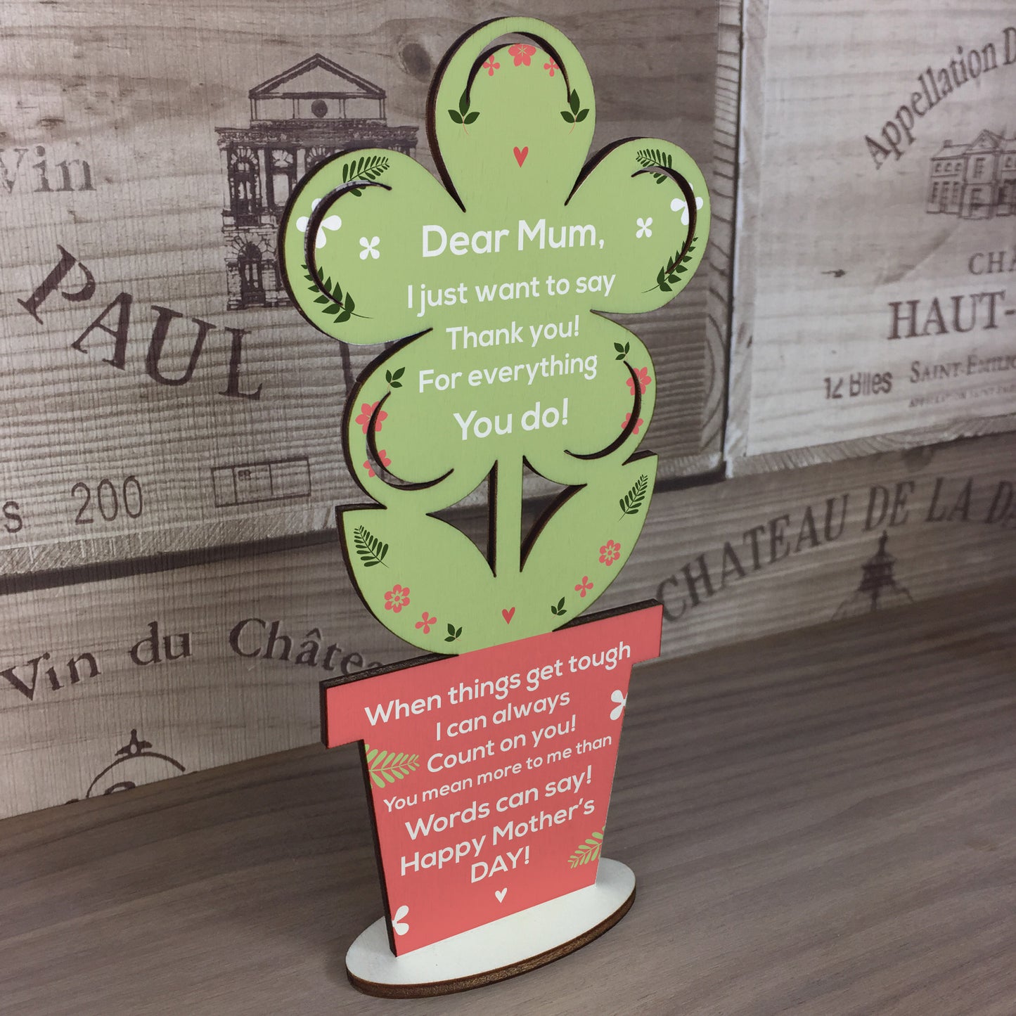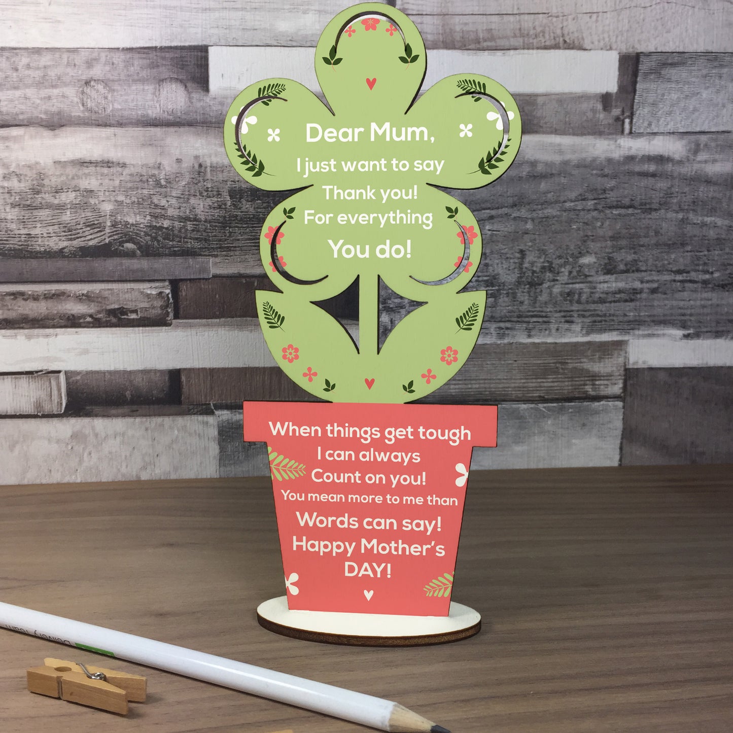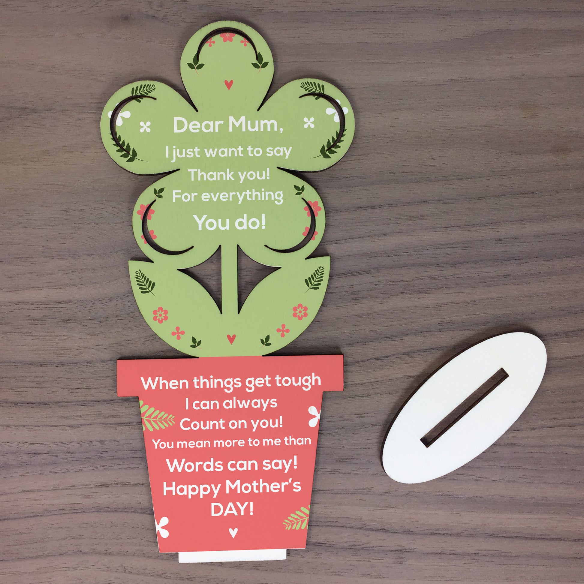 Mothers Day Poem Gift For Mum Wooden Flower Thank You Gift