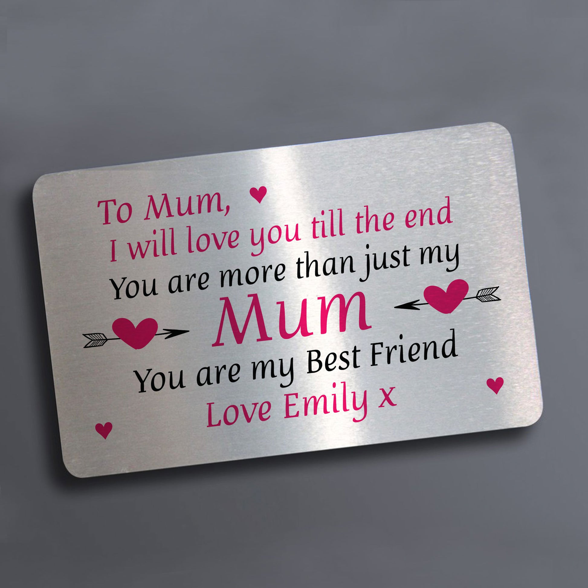 A beautifully printed metal wallet card with a personalised touch! A lovely keepsake and a quality alternative to just have a photo in your wallet! Give your Mum something they can carry with them wherever they go and treasure for years to come! The perfect birthday / mothers day gift and is a gorgeous, quality keepsake that will last for many years! Express your love through a beautiful keepsake today!