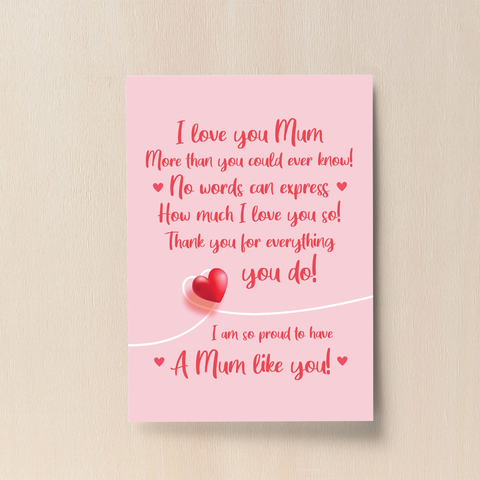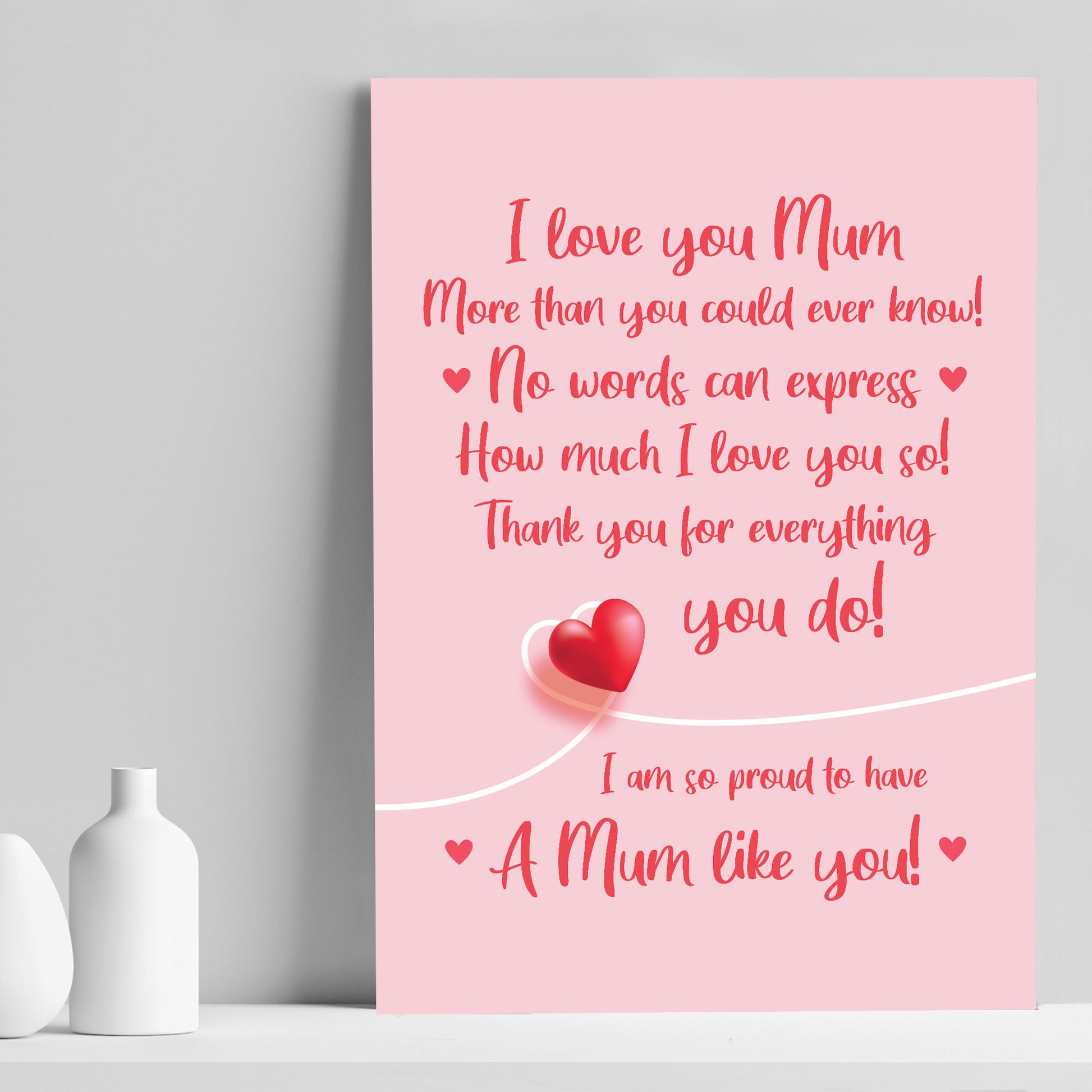 Mum Poem Daughter Son Print Keepsake THANK YOU Birthday Xmas