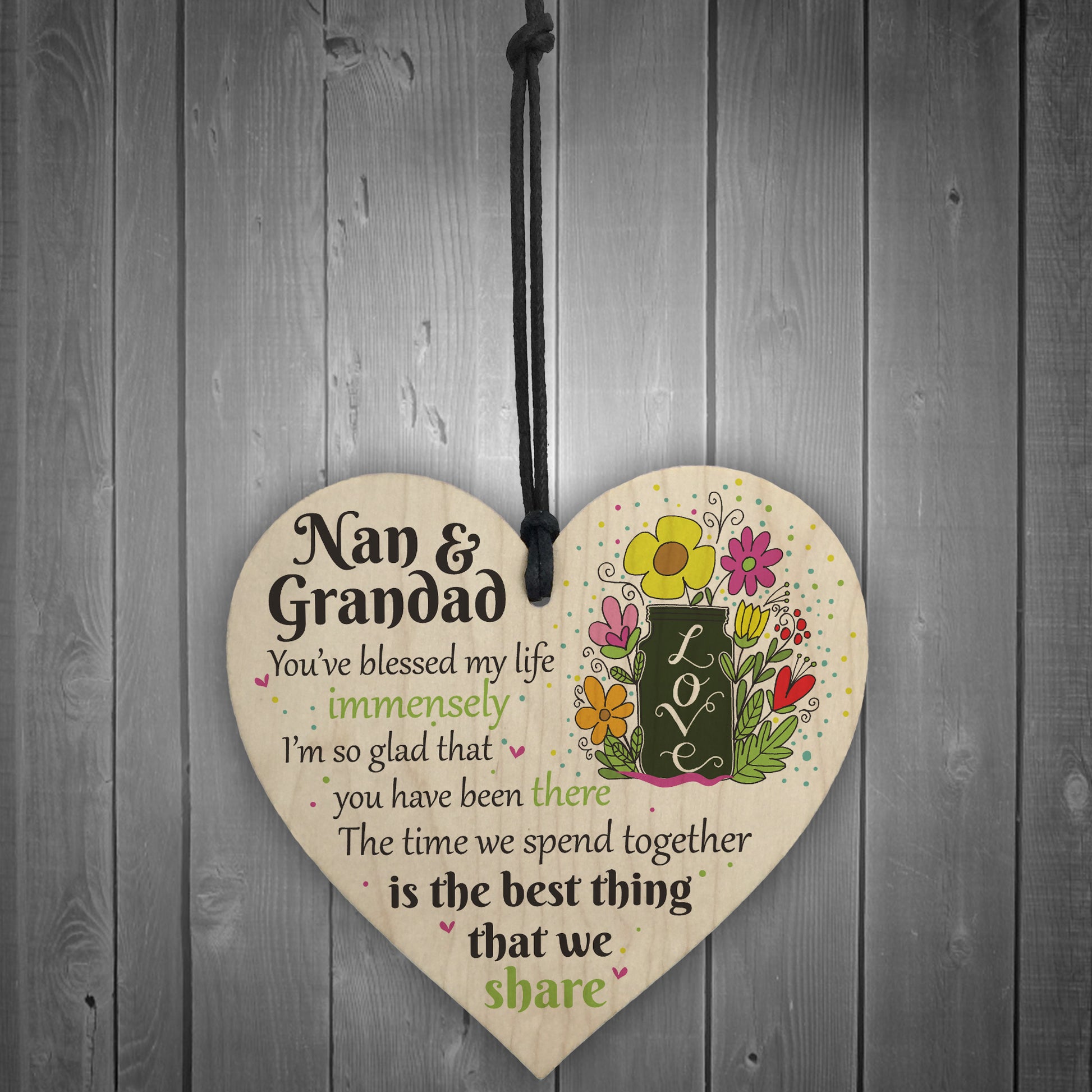 Nan and Grandad Time We Share Wood Hanging Heart Grandparents