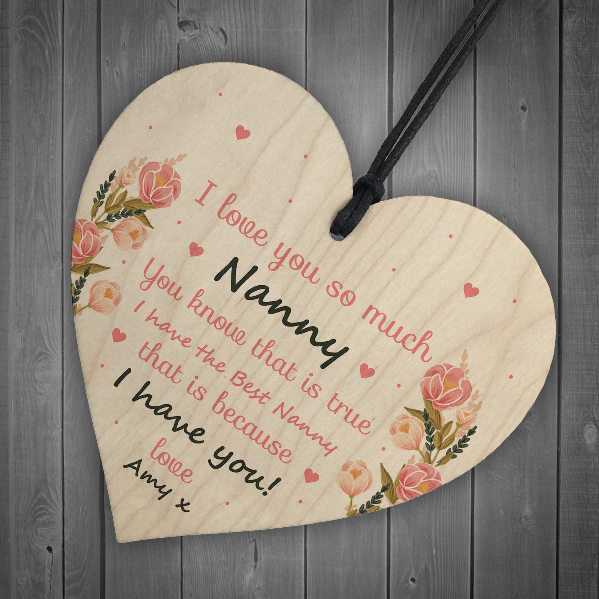 Nanny Birthday Christmas Thank You Gift Wood Heart Love Plaque