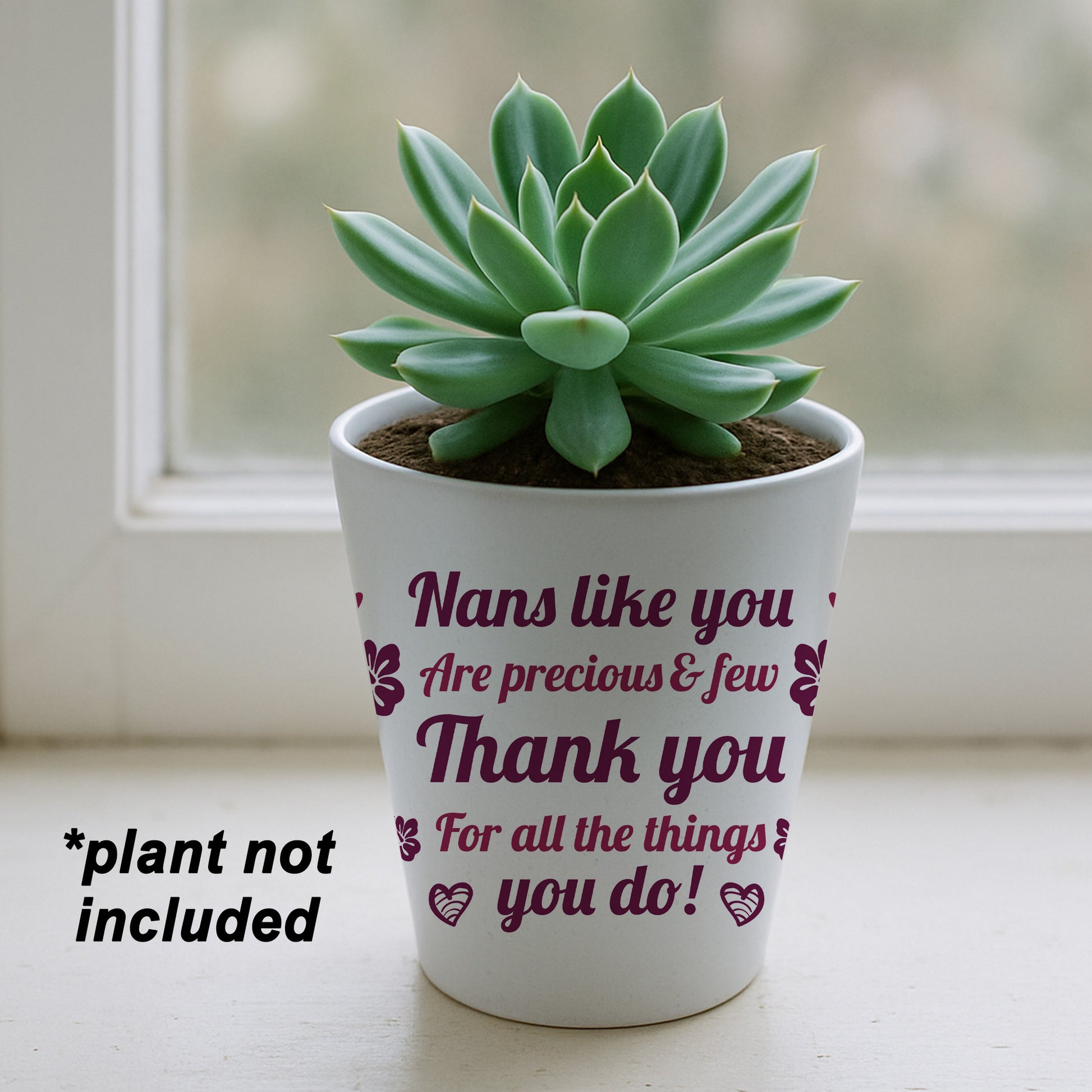 The ULTIMATE Birthday or Christmas Gift for your Nanny who deserves a blooming reminder of how appreciated they are! Celebrate your Nanny, with this beautiful ceramic flower pot, the perfect blend of heartfelt gratitude and everyday charm. This pot is a touching tribute to your love!