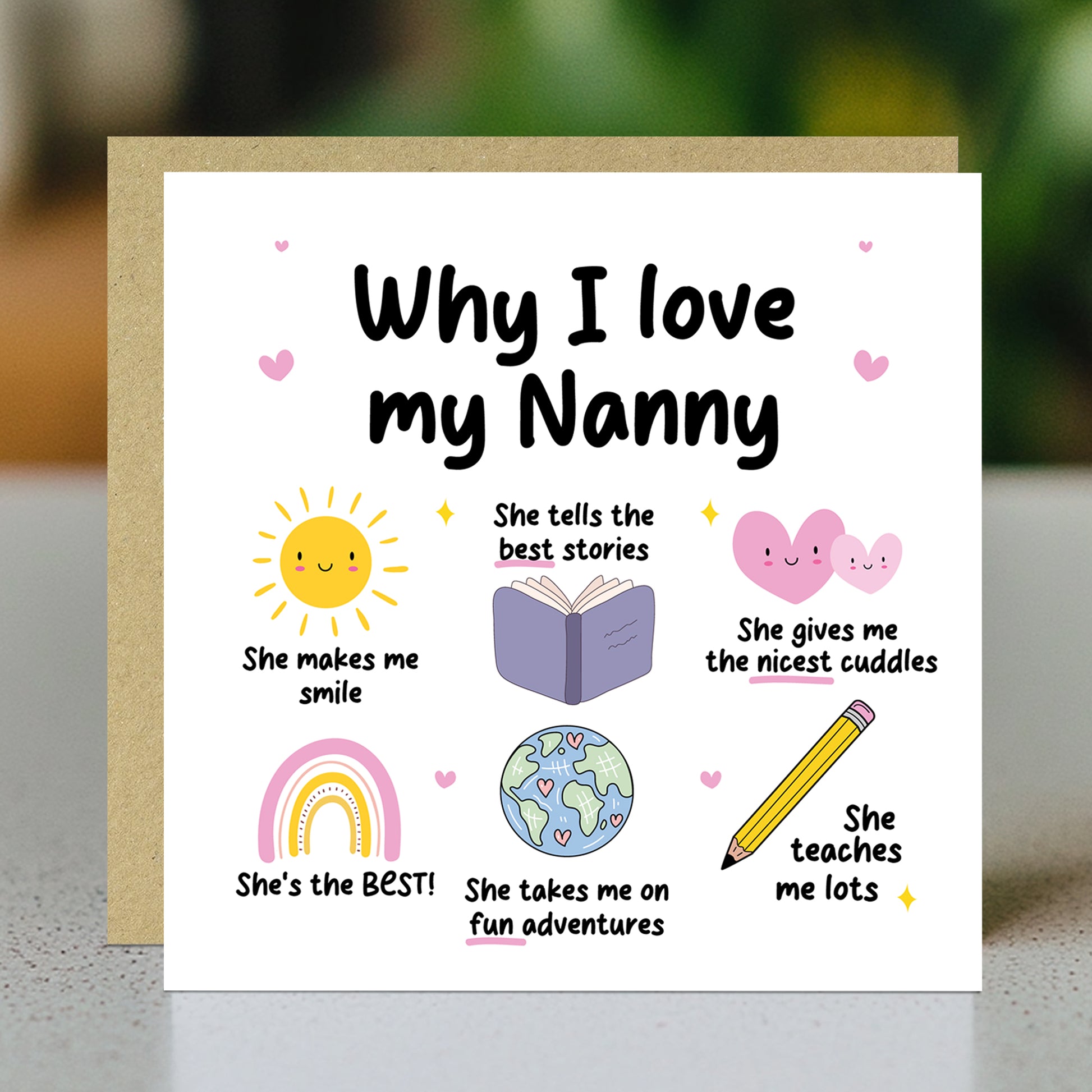 Nanny Card Why I Love Nanny Card Birthday Card for Nanny
