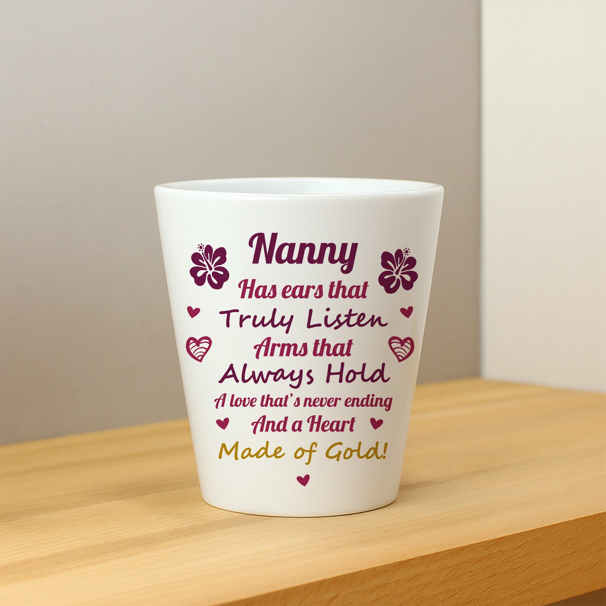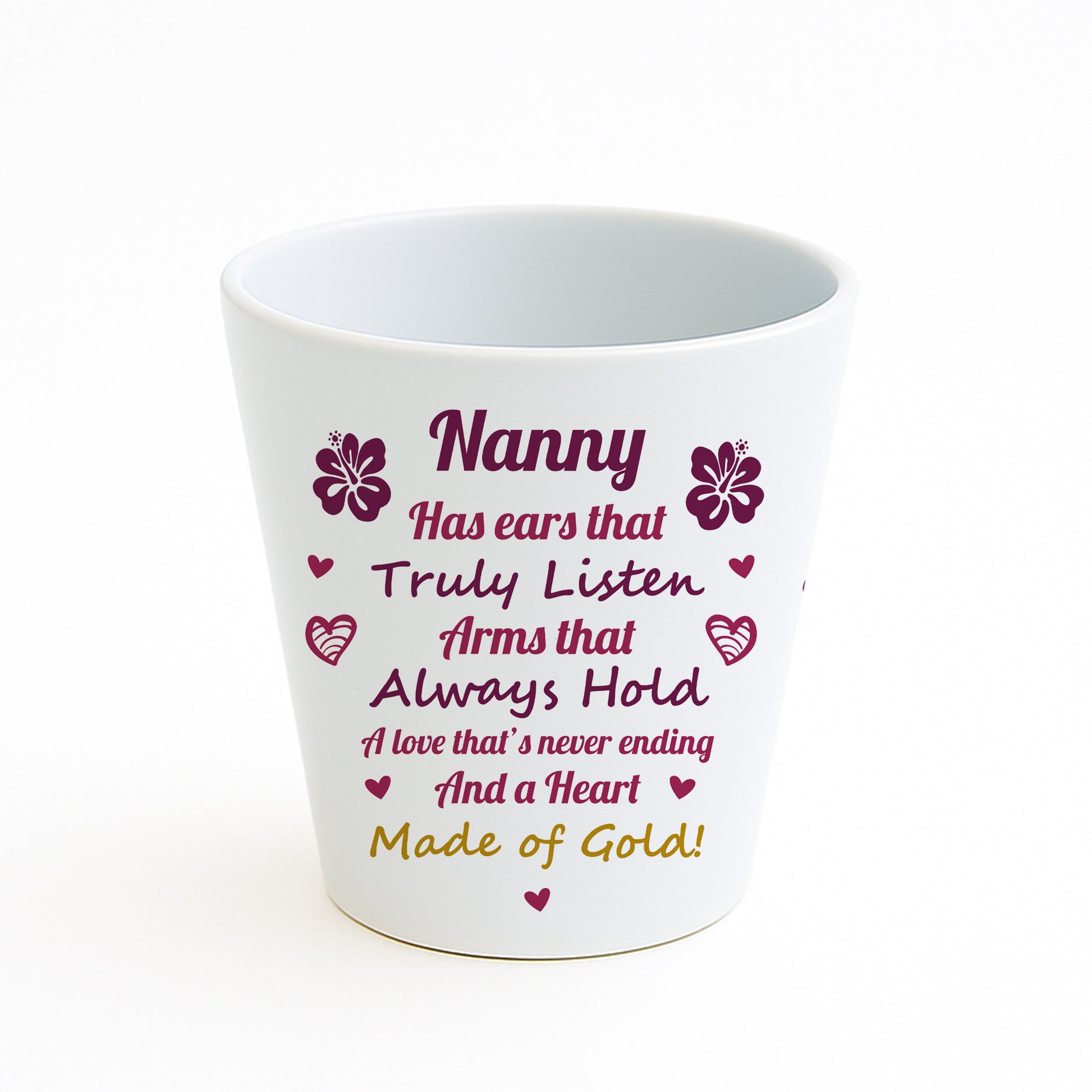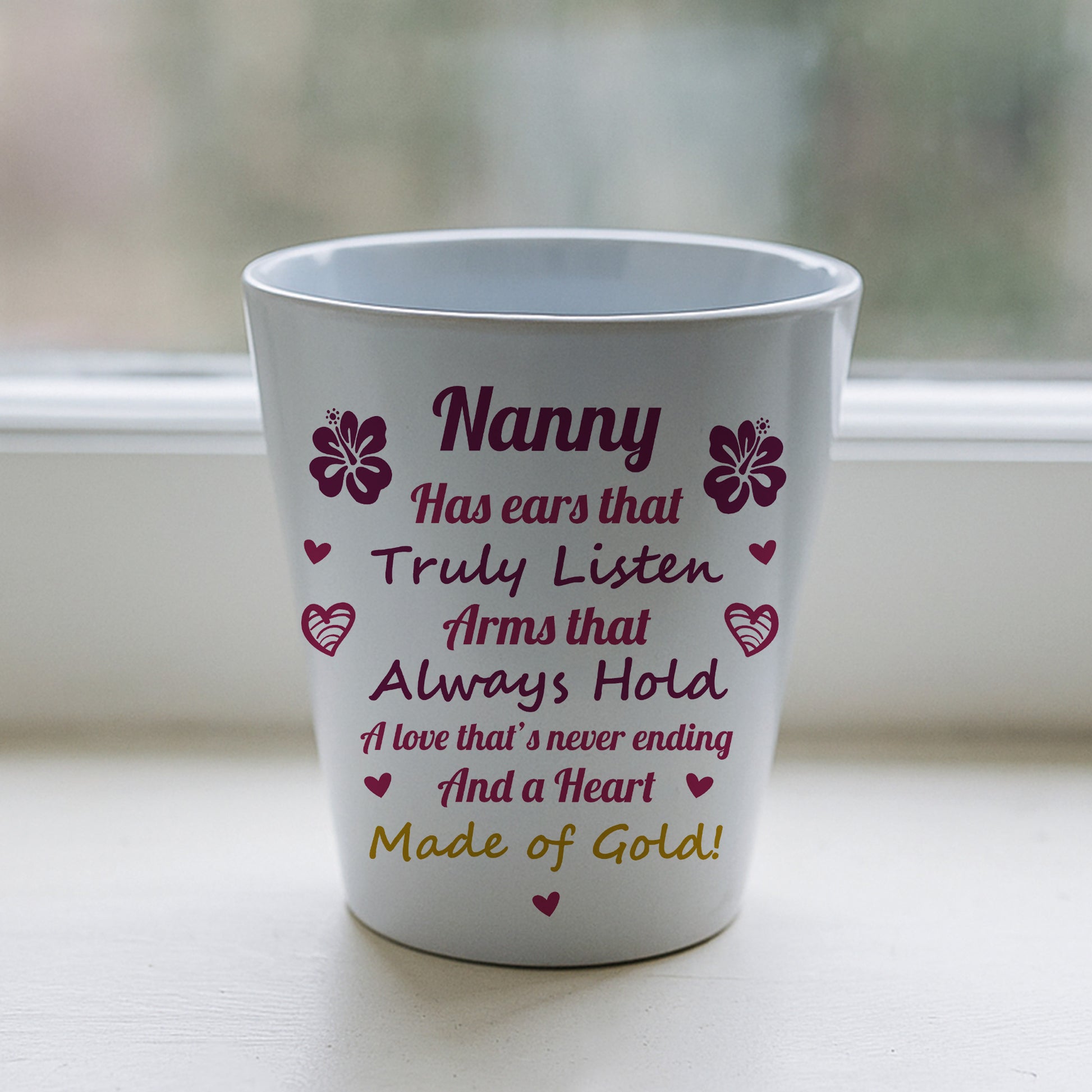 The ULTIMATE Birthday or Christmas Gift for your Nanny who deserves a blooming reminder of how appreciated they are! Celebrate your Nanny, with this beautiful ceramic flower pot, the perfect blend of heartfelt gratitude and everyday charm. This pot is a touching tribute to your love!