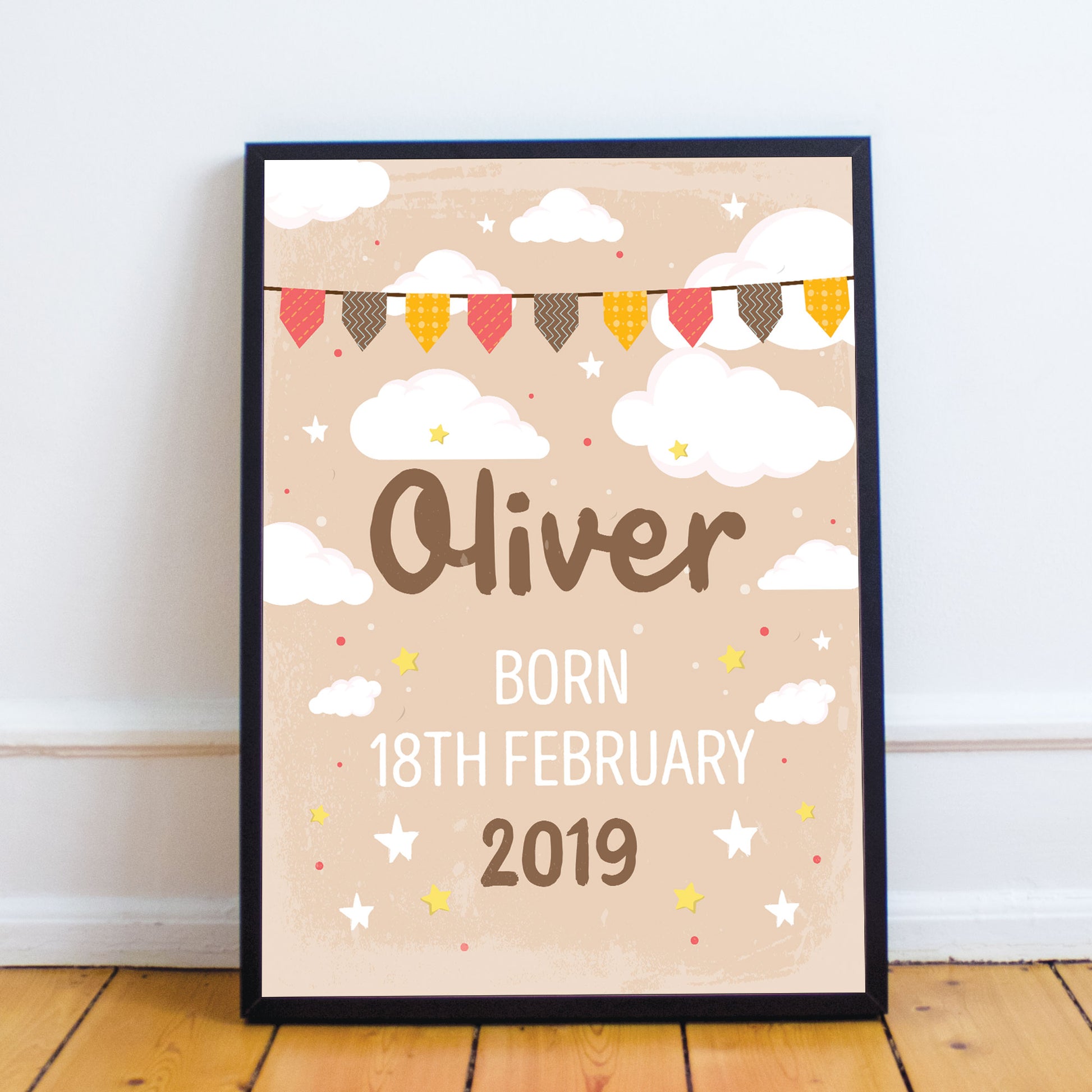 NEW BABY Gift Birth Details Print Framed Baby Girl Baby Boy Gift