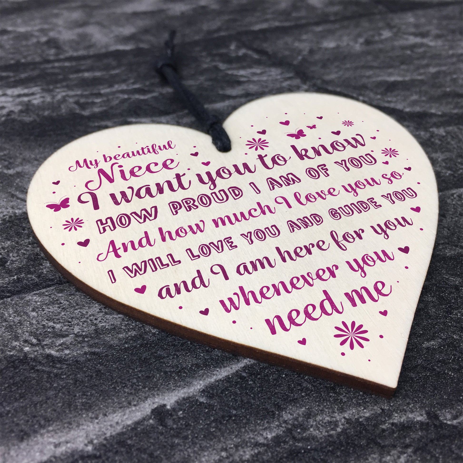 A gorgeous wooden heart plaque printed with a beautiful message that is a lovely gift to give to your wonderful niece! They can hang up this heartfelt poem and treasure it forever. Give this gift with love and put a smile on your neice's face every time they read it.