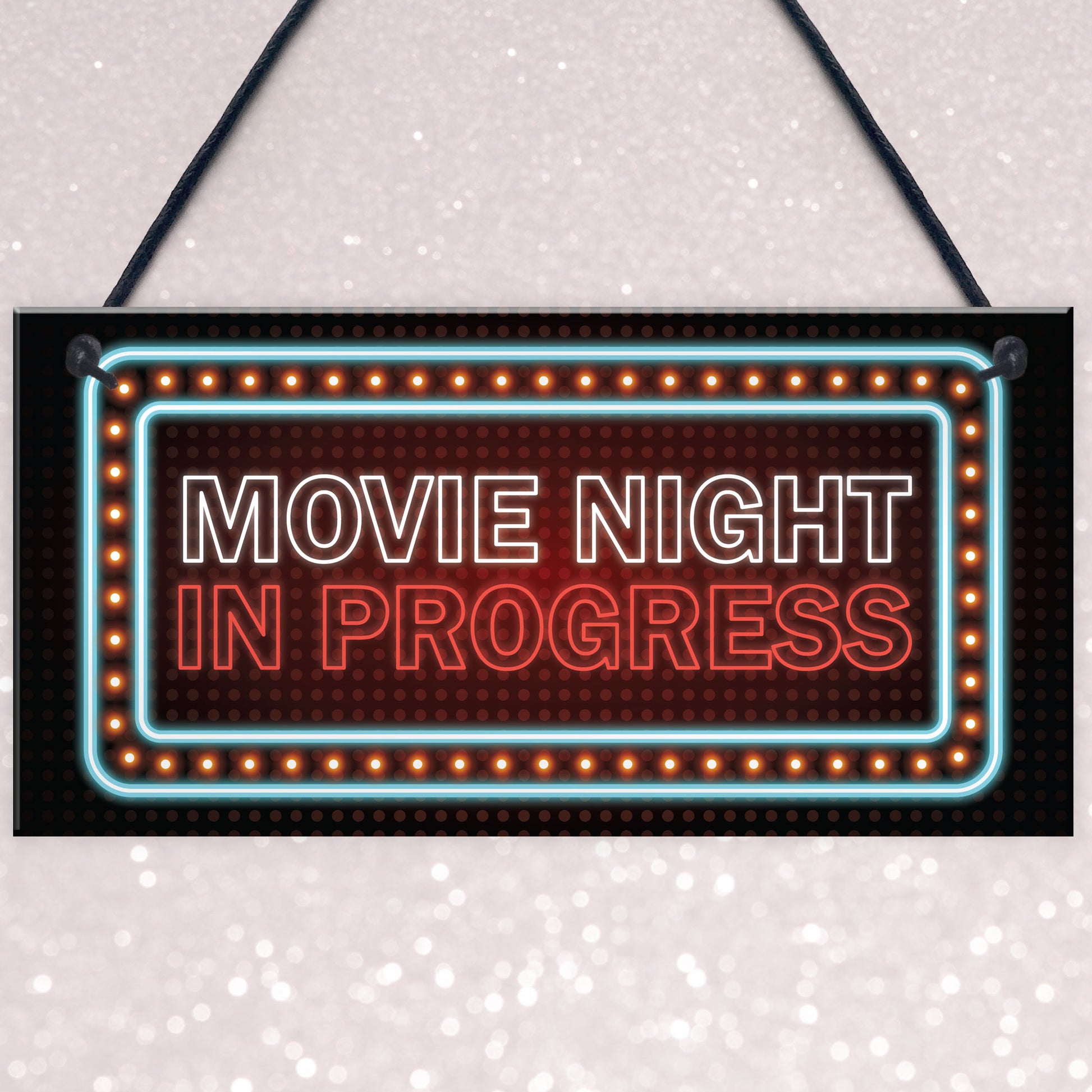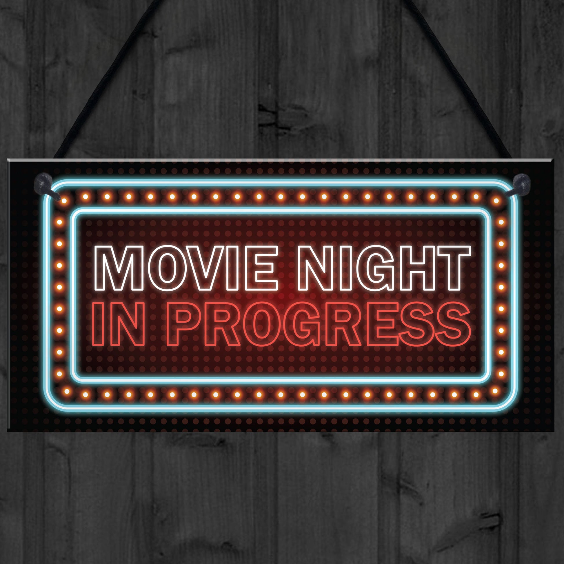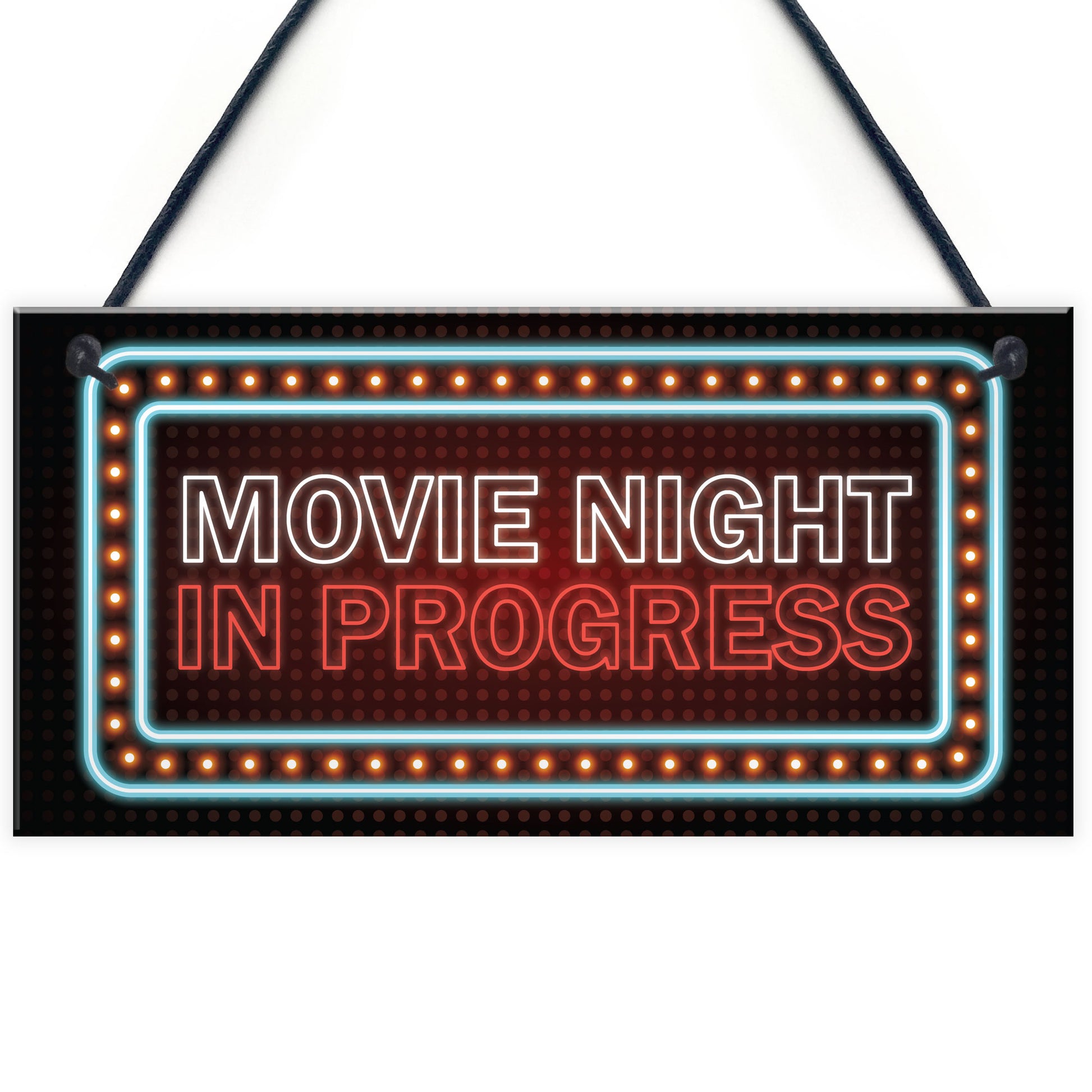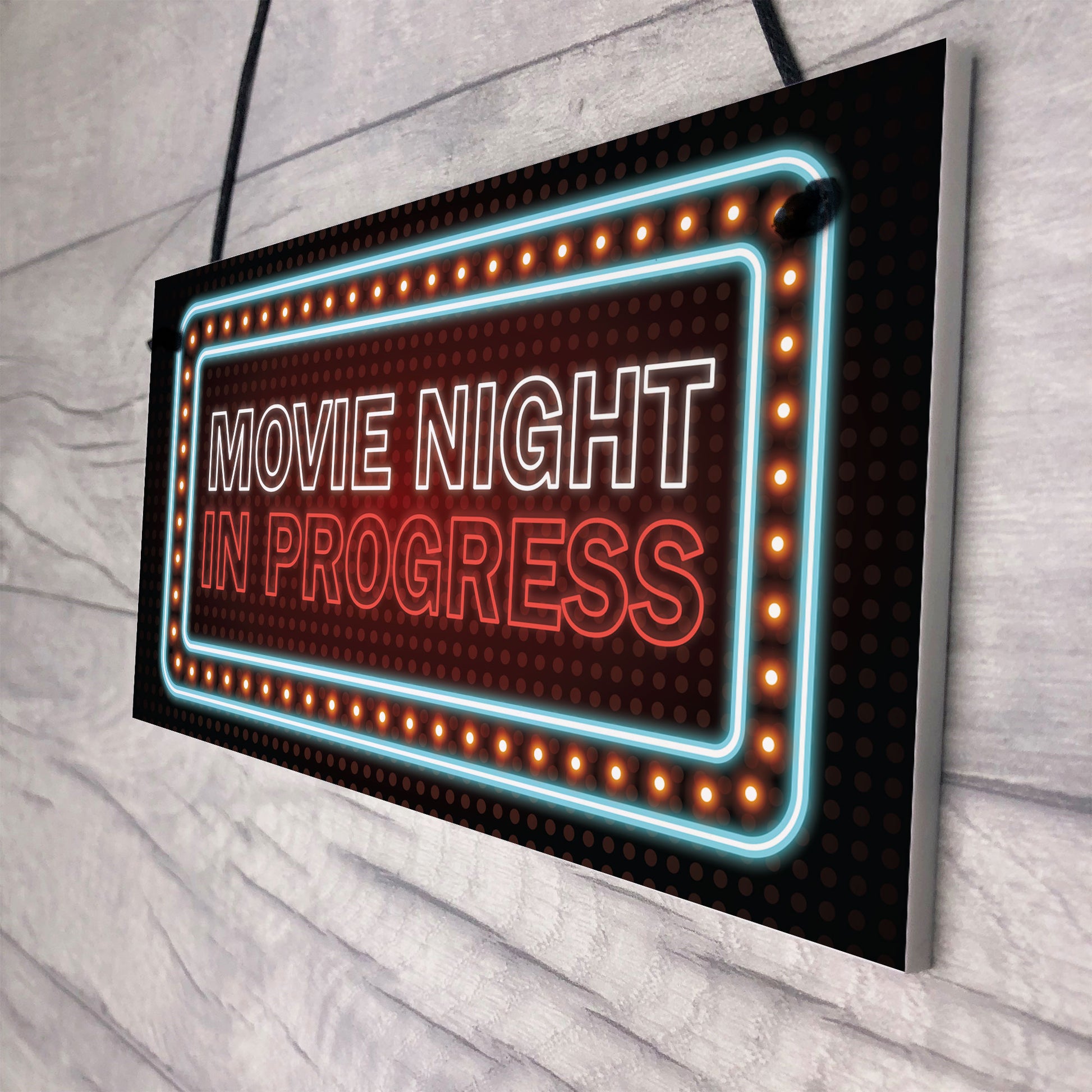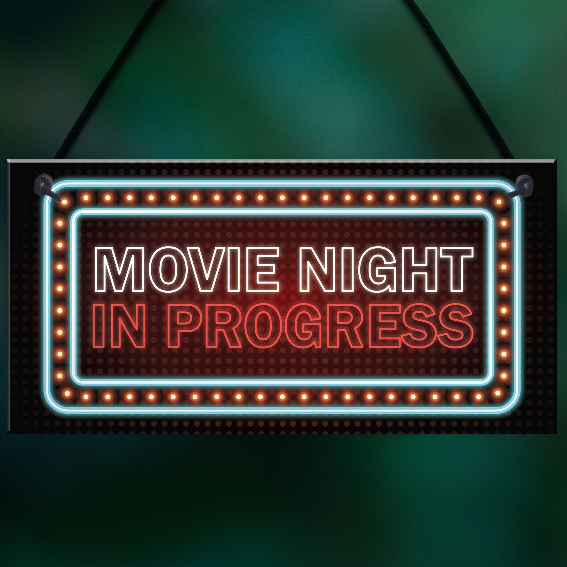 Novelty Cinema Room Sign NEON EFFECT Movie Night Plaque