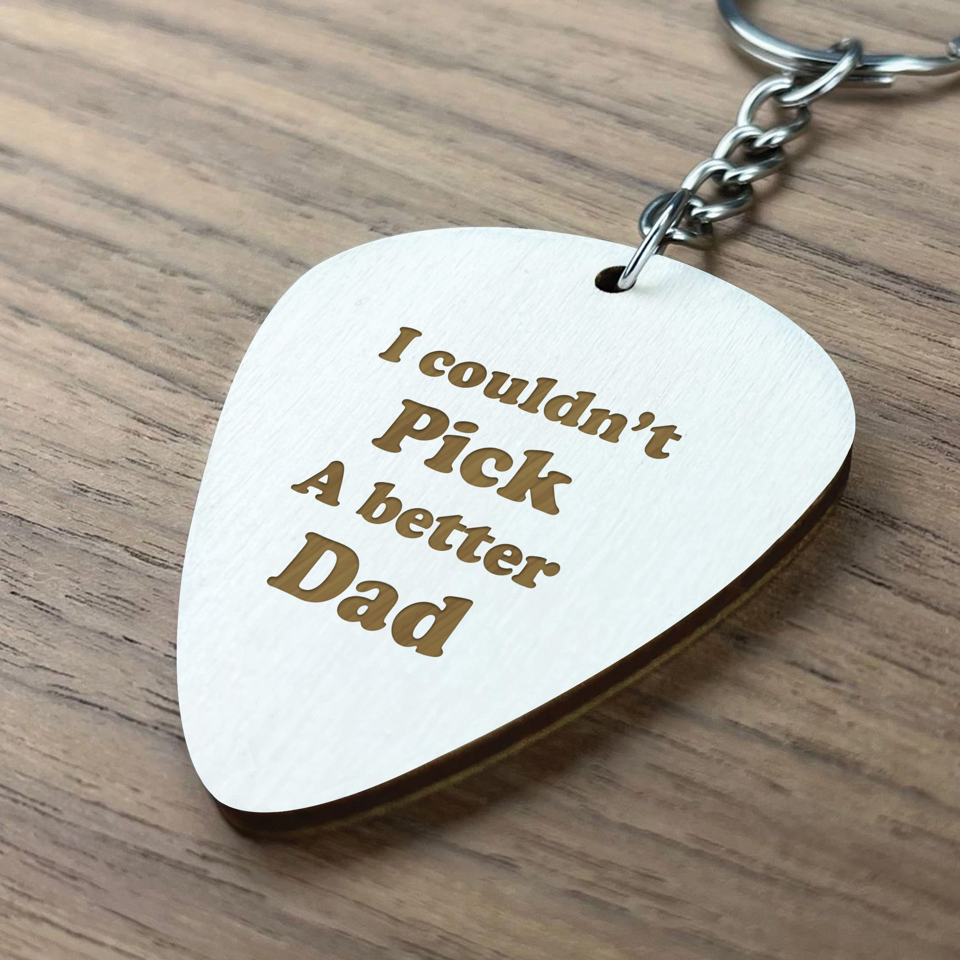Novelty Dad Gift Wooden Guitar Pick Keyring Birthday Christmas