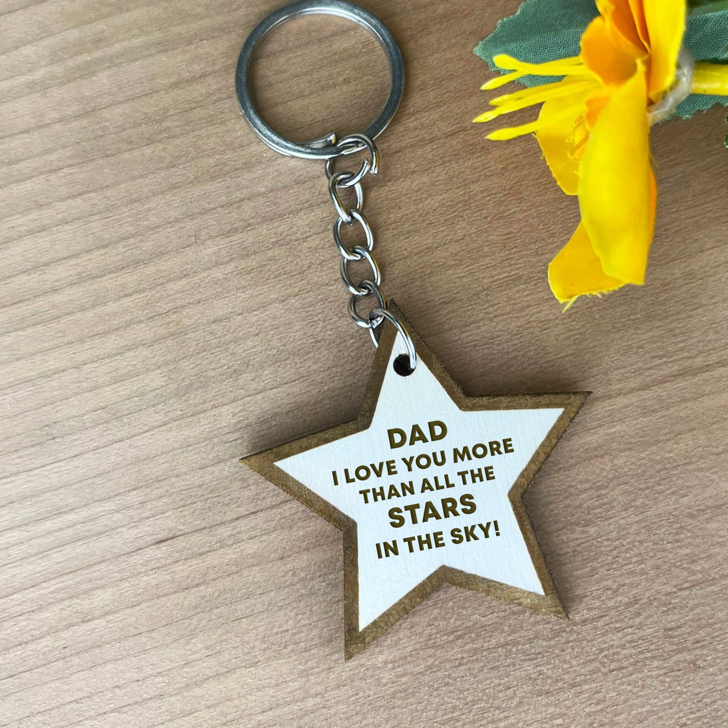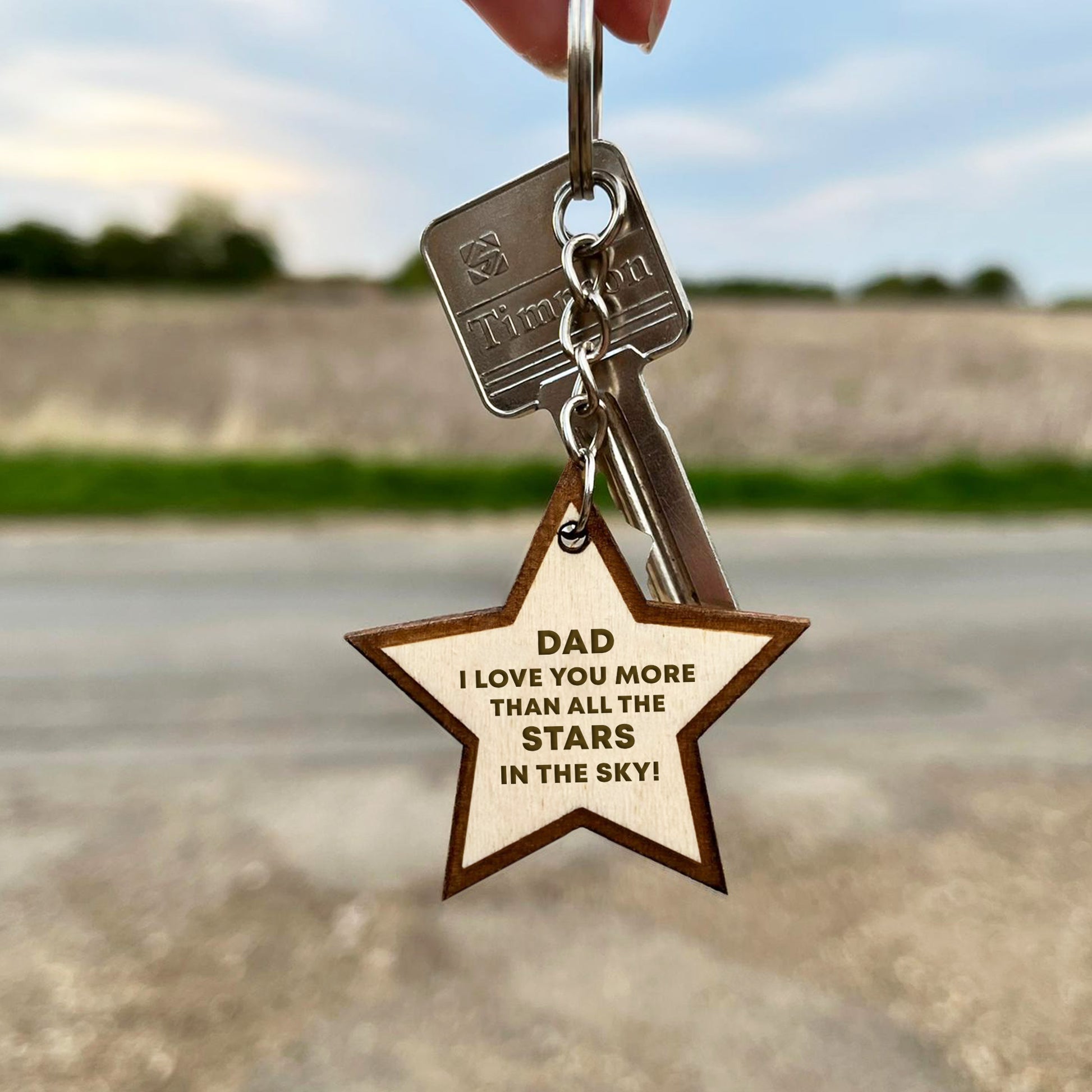 Novelty Dad Gifts Wooden Engraved Keyring Fathers Day Birthday