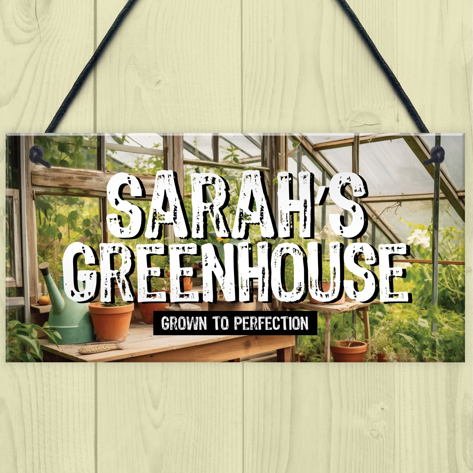Novelty Greenhouse Sign Shabby Personalised Garden Sign Shed