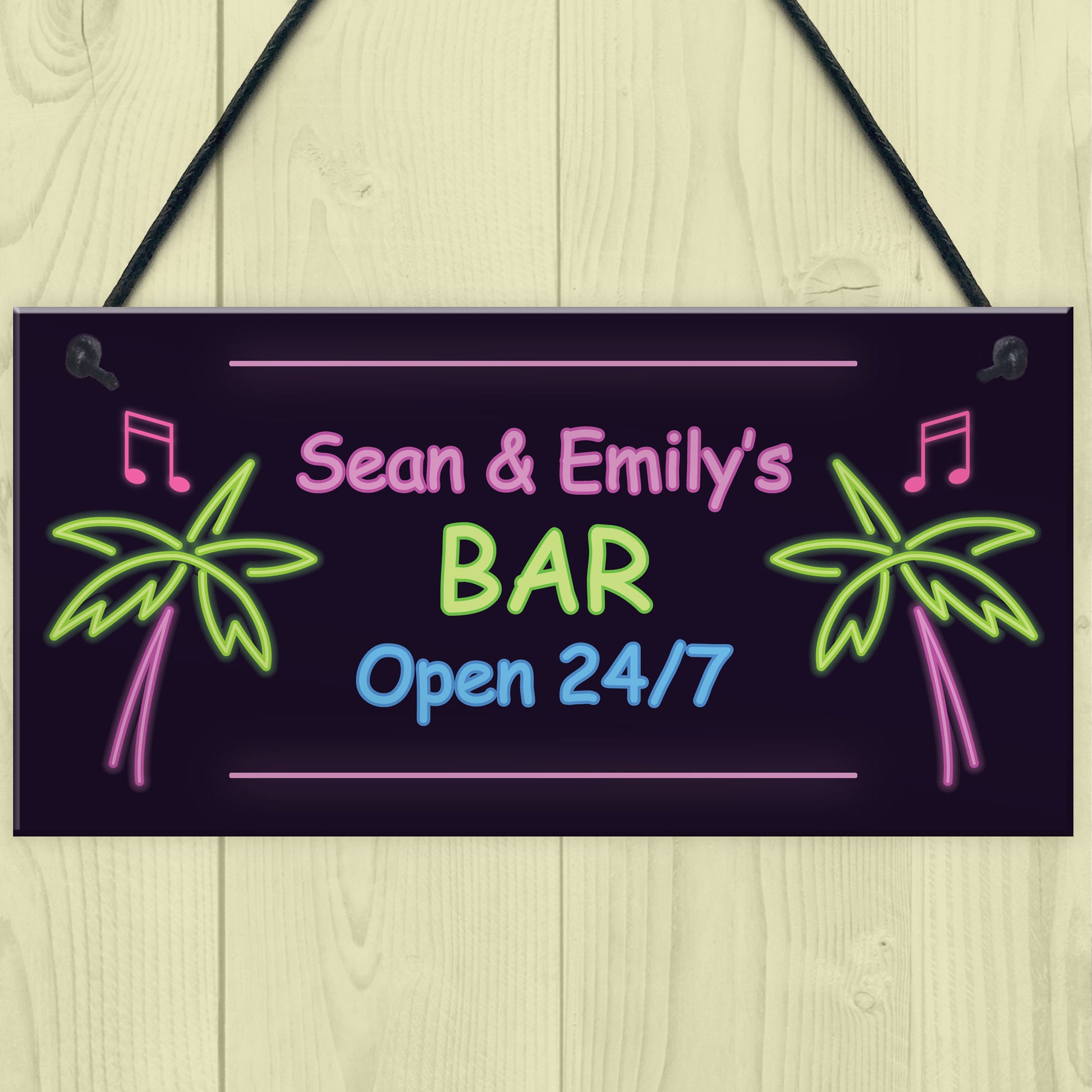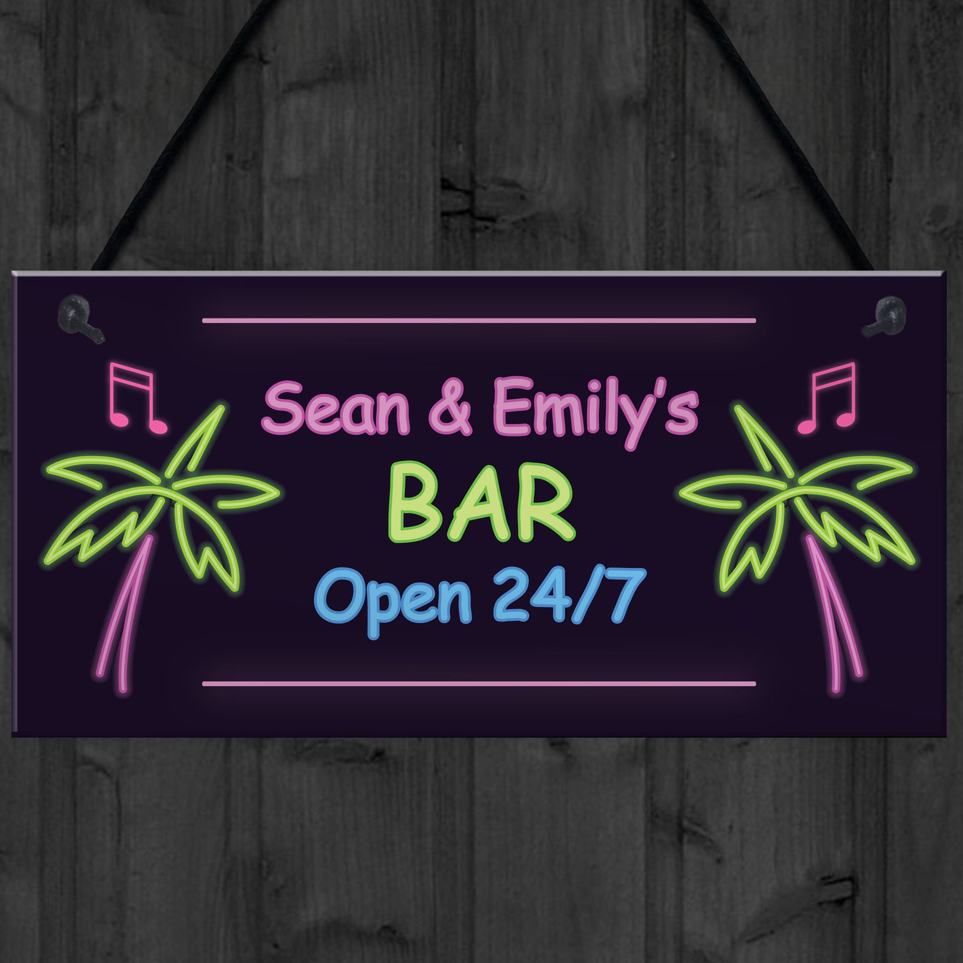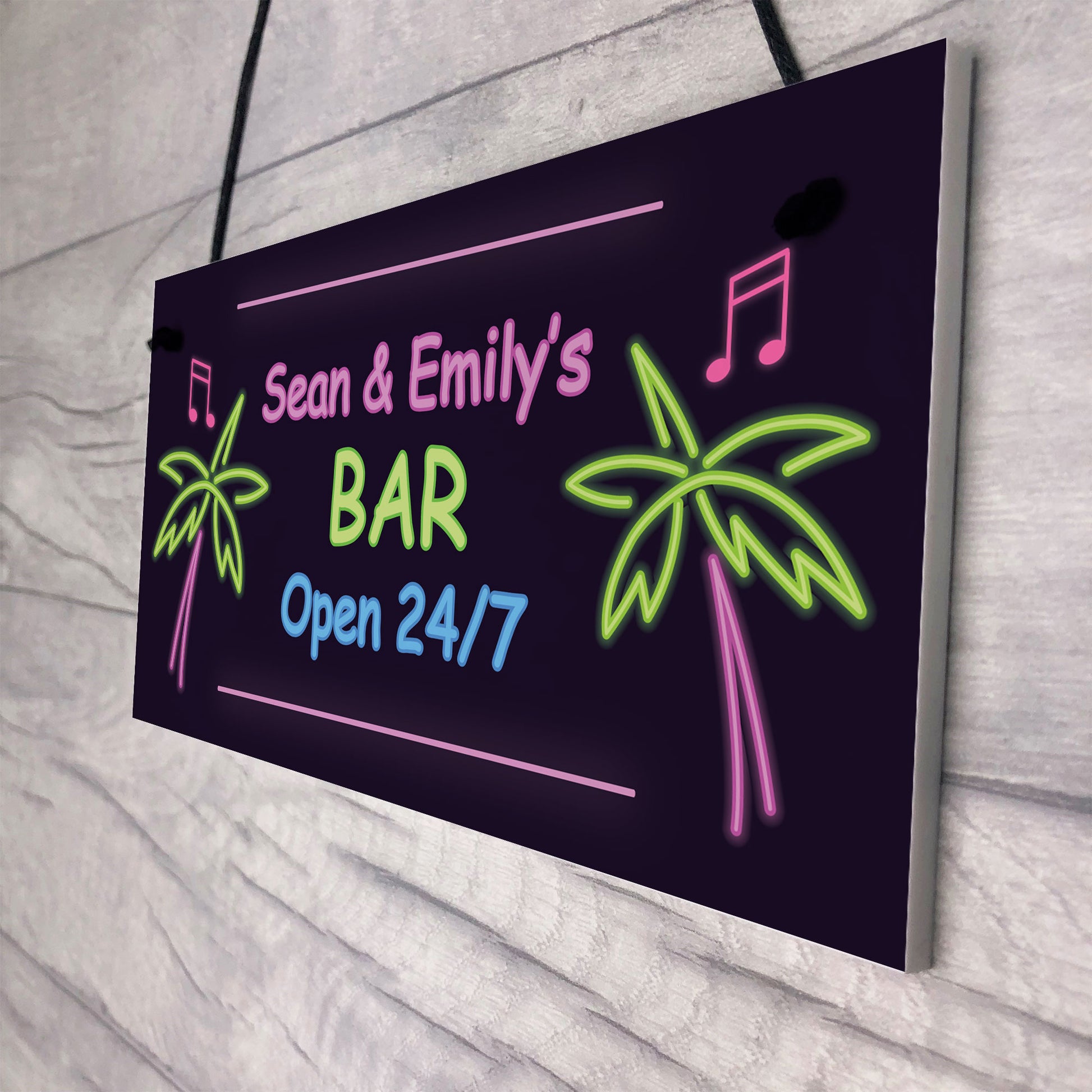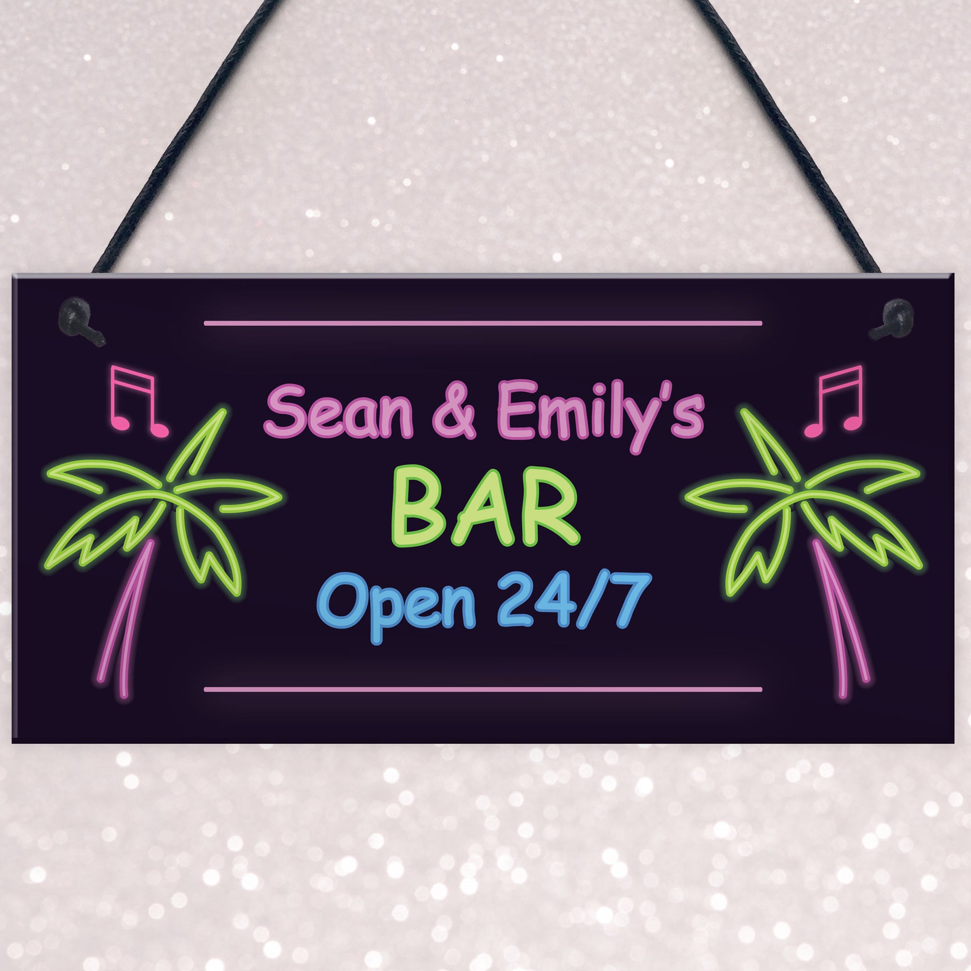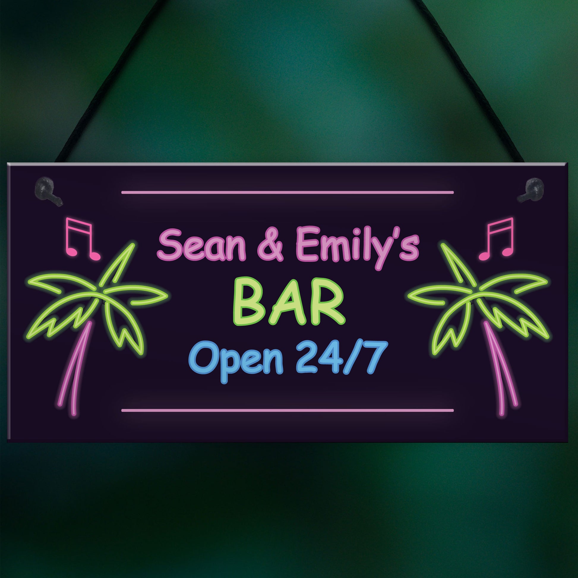 Novelty Neon Effect Bar Sign Open 24/7 PERSONALISED Sign