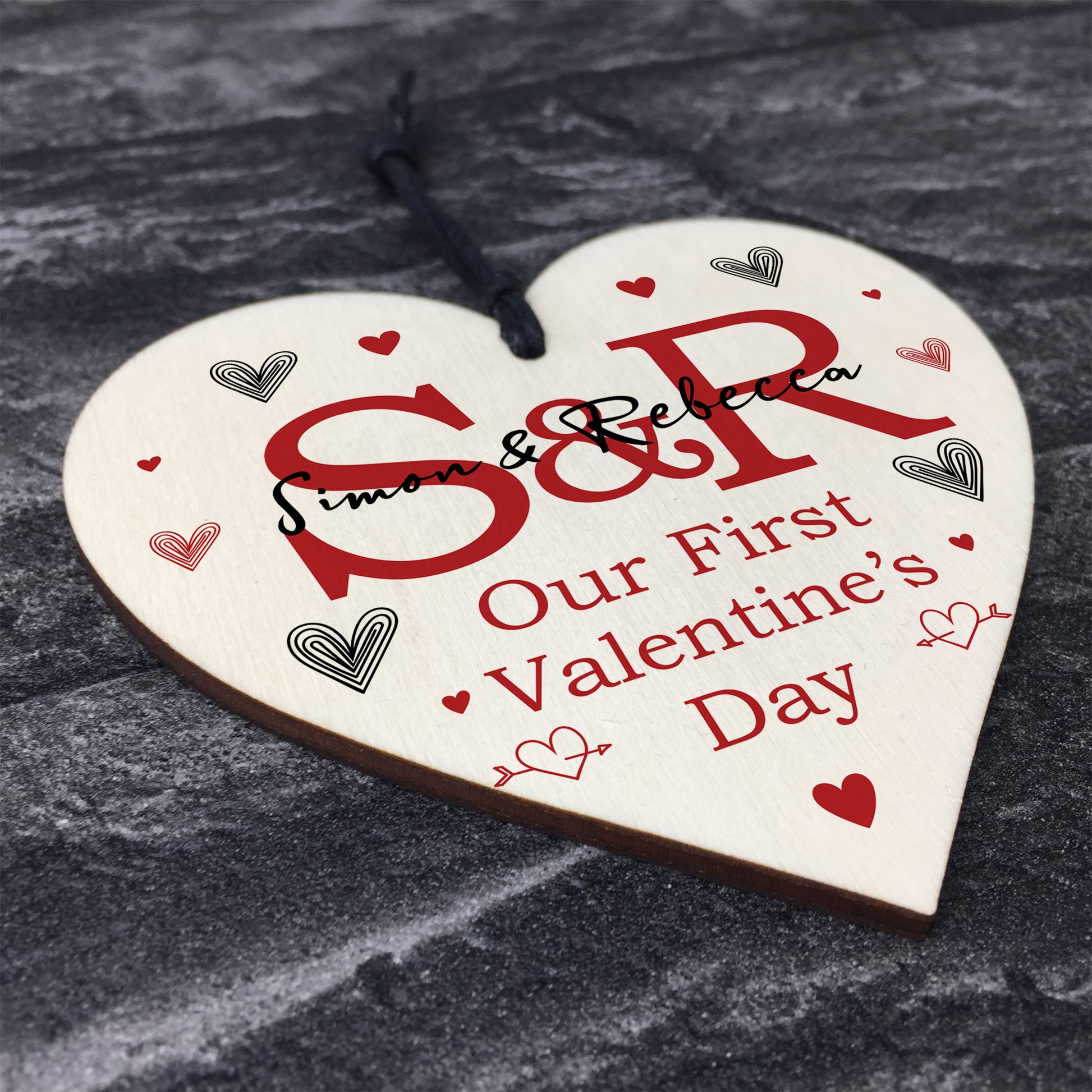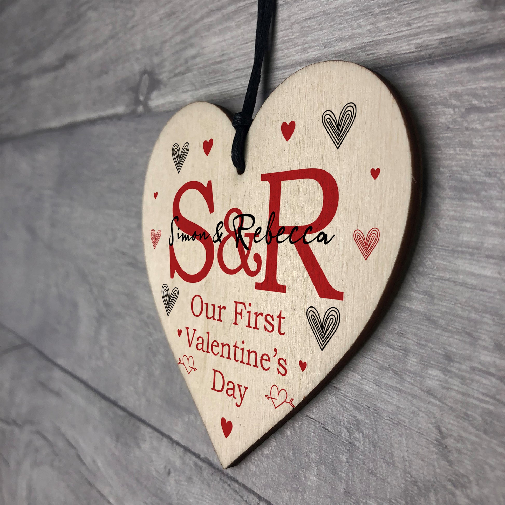 Our First Valentines Day Gift Wood Heart Personalised Boyfriend