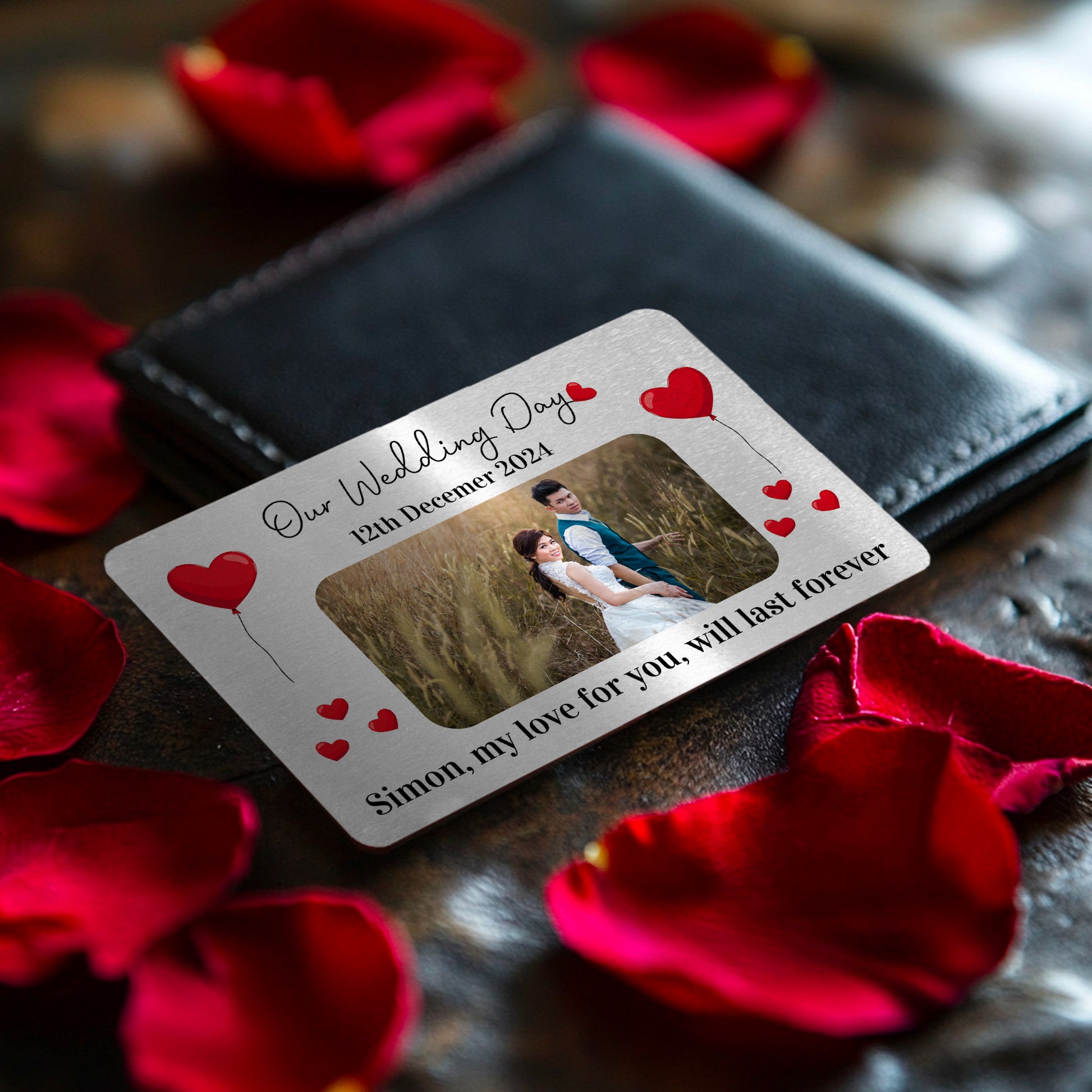 Our Wedding Day Gift Personalised Photo Metal Wallet Card Gift