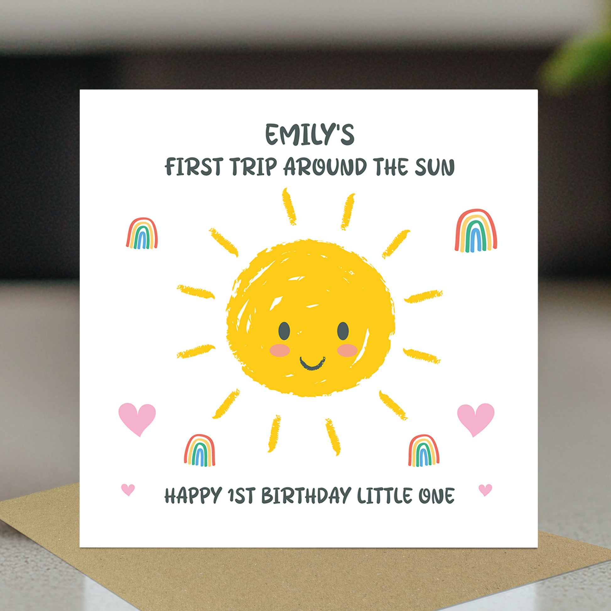 The blank interior gives you the freedom to add your own personalised message, making it the perfect choice for expressing your thoughts and feelings in a unique way. Paired with a stylish brown craft envelope, this card is suitable for a 1st Birthday!