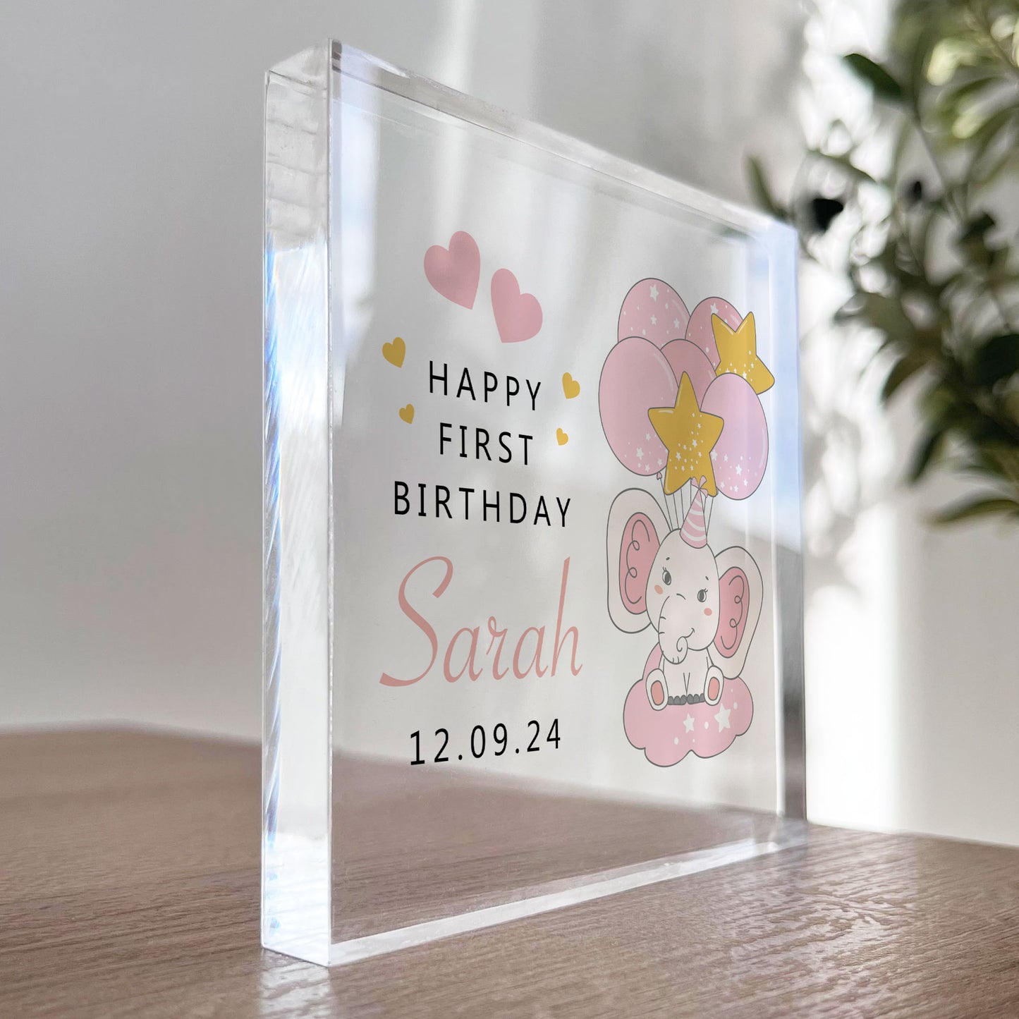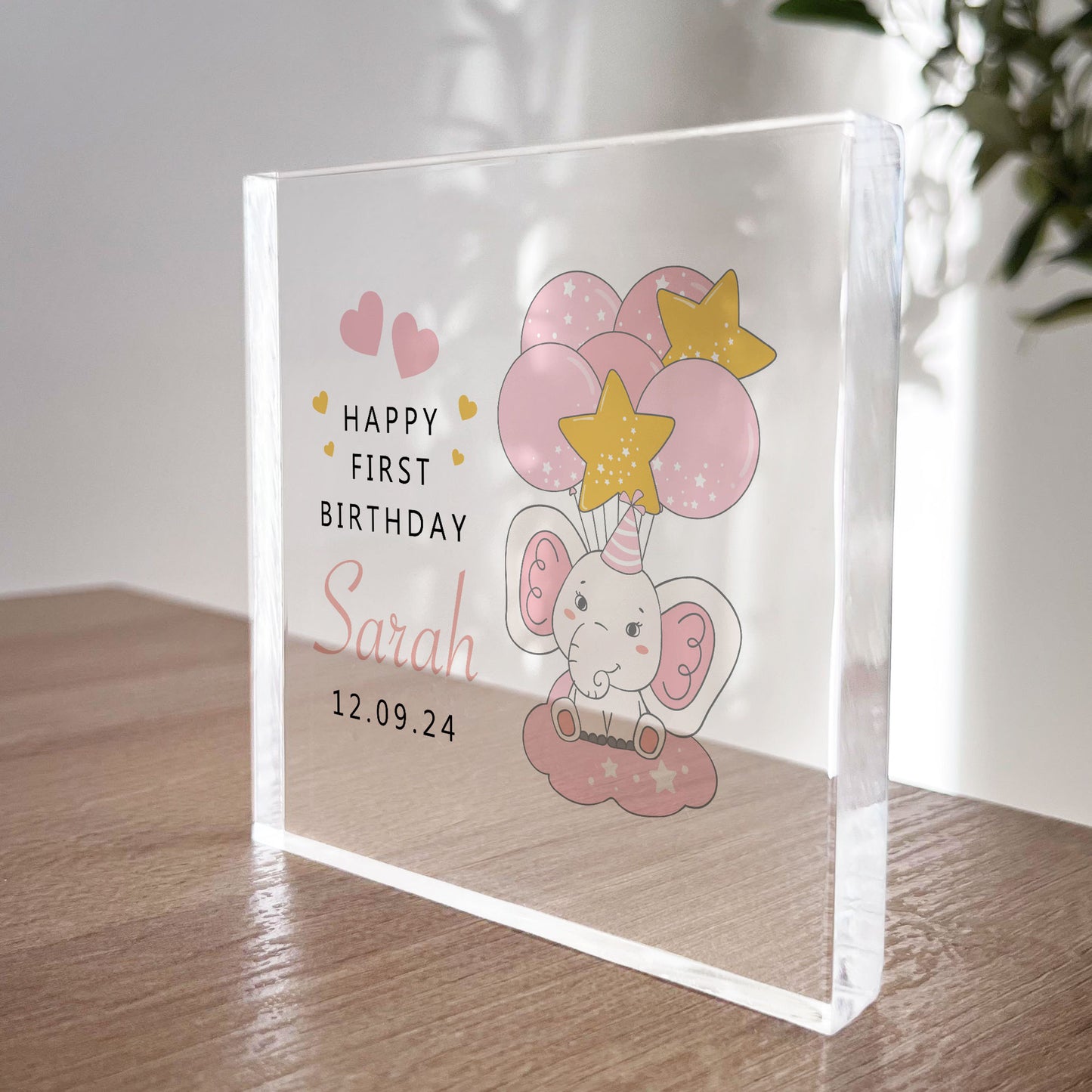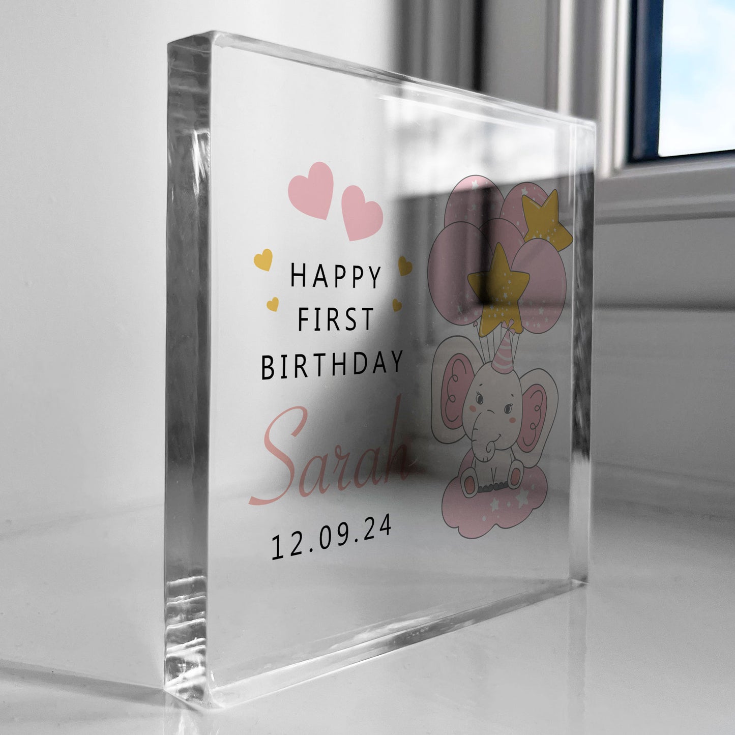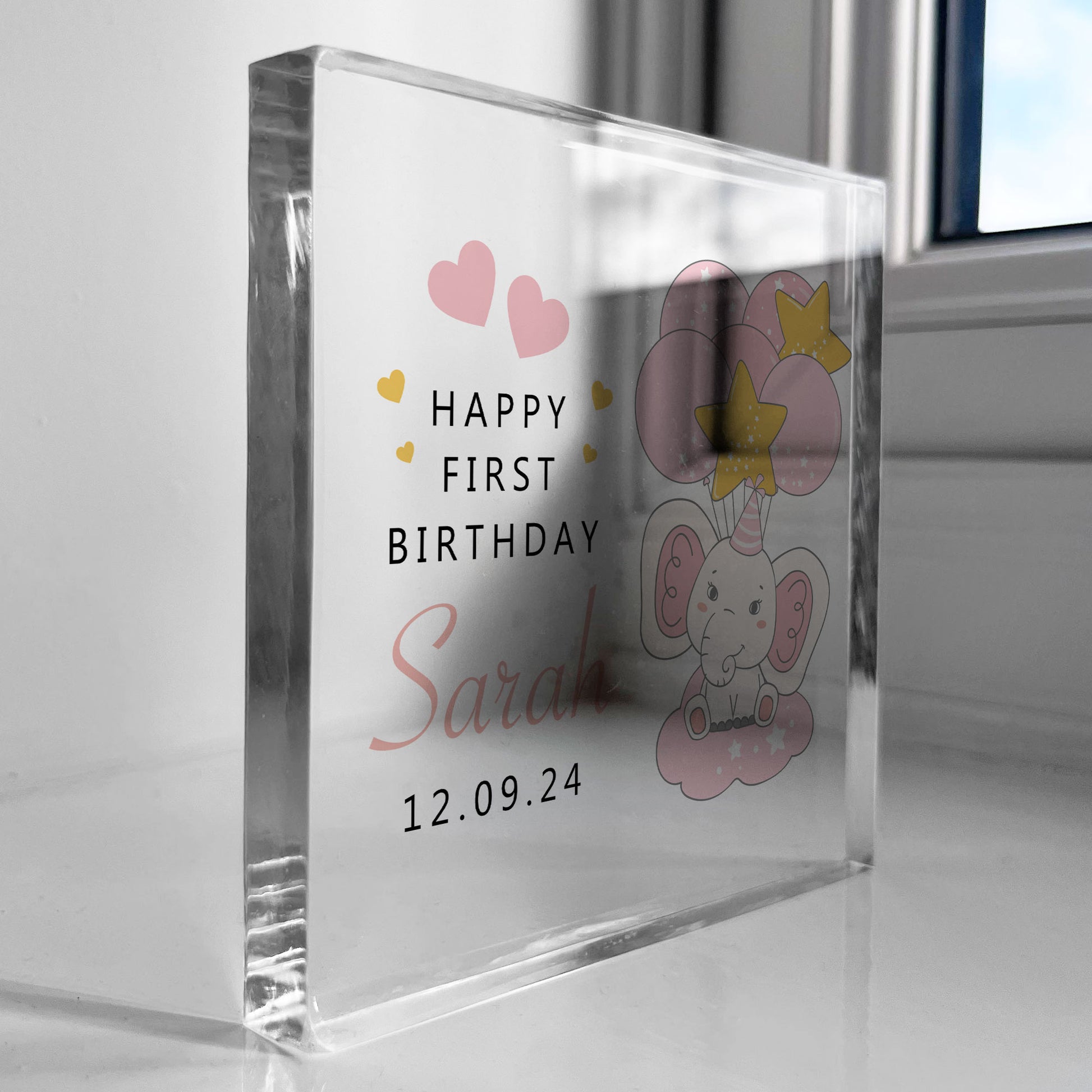 Personalised 1st Birthday Gift For Baby Boy Girl Acrylic Block