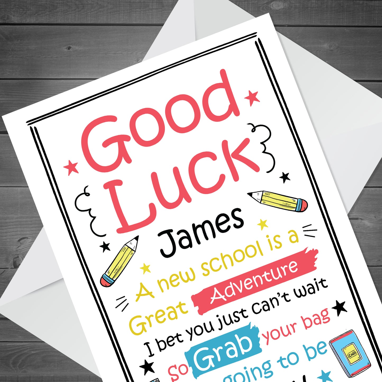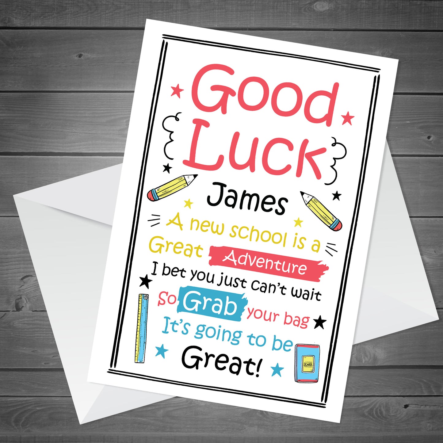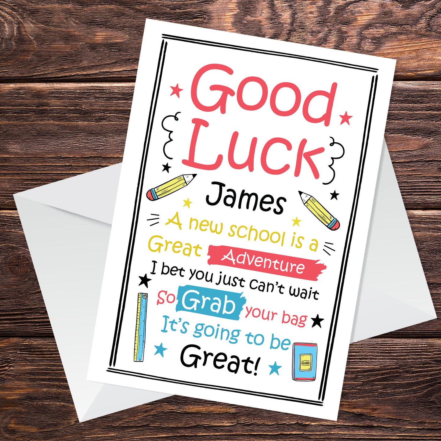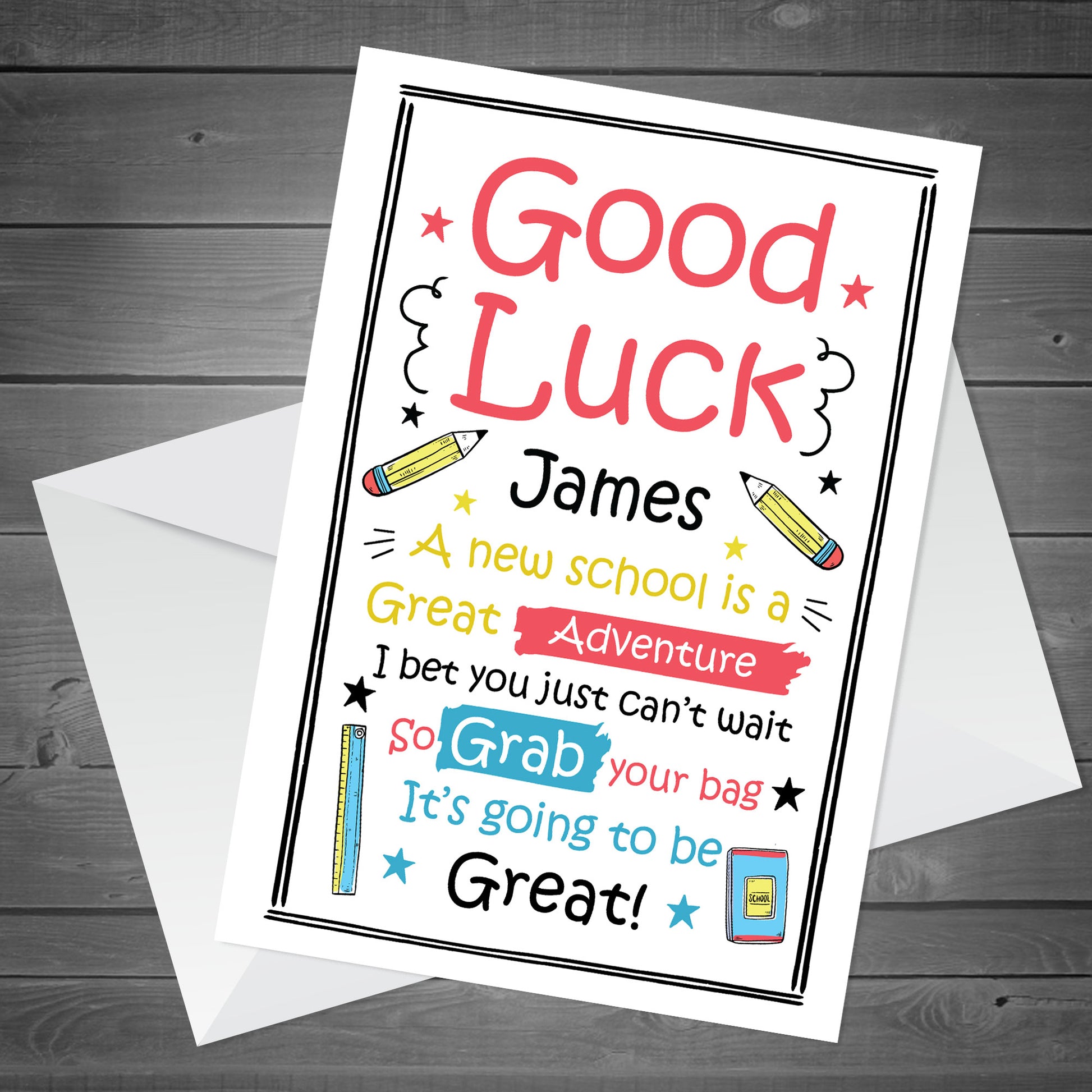 Personalised 1ST FIRST DAY AT SCHOOL Card Good Luck Card