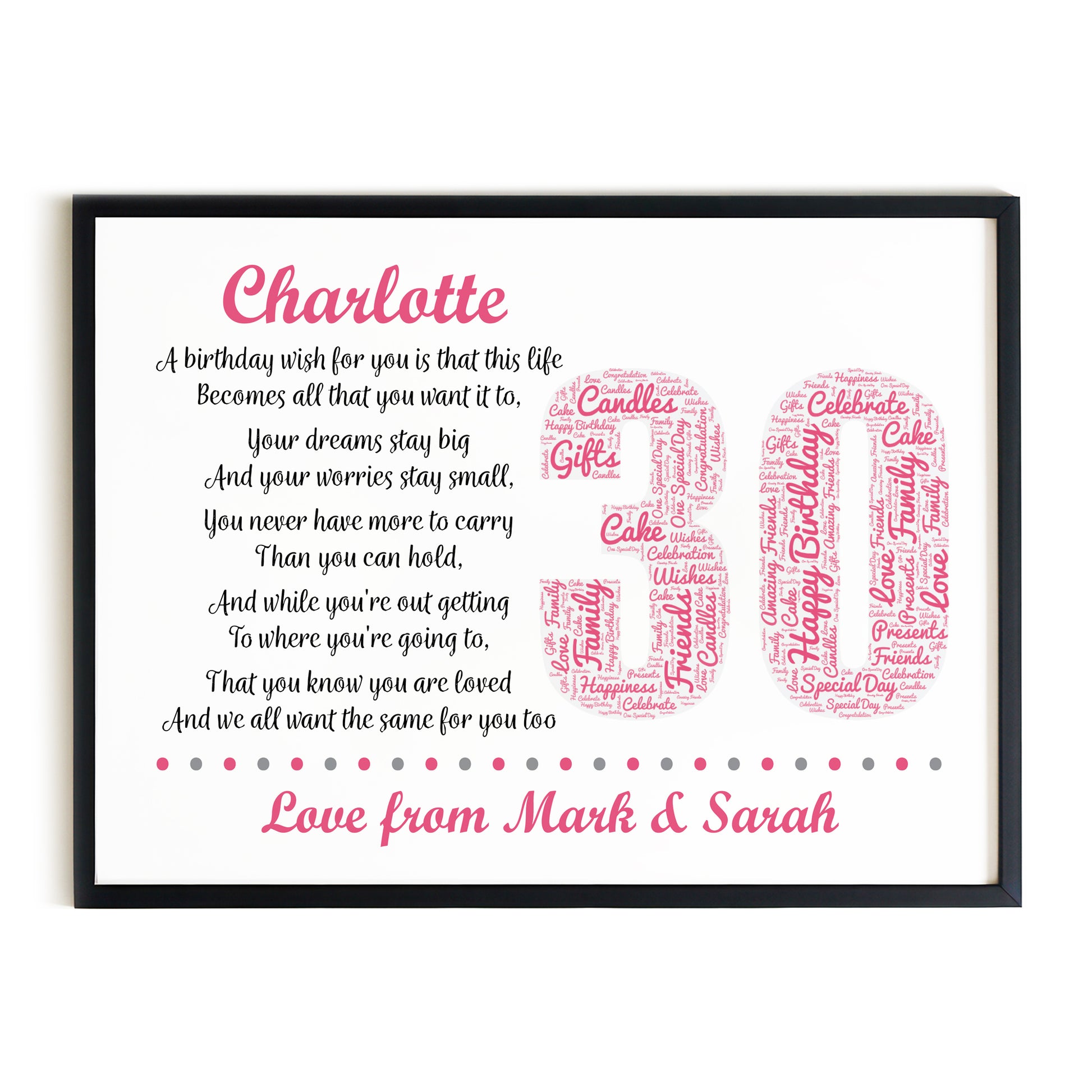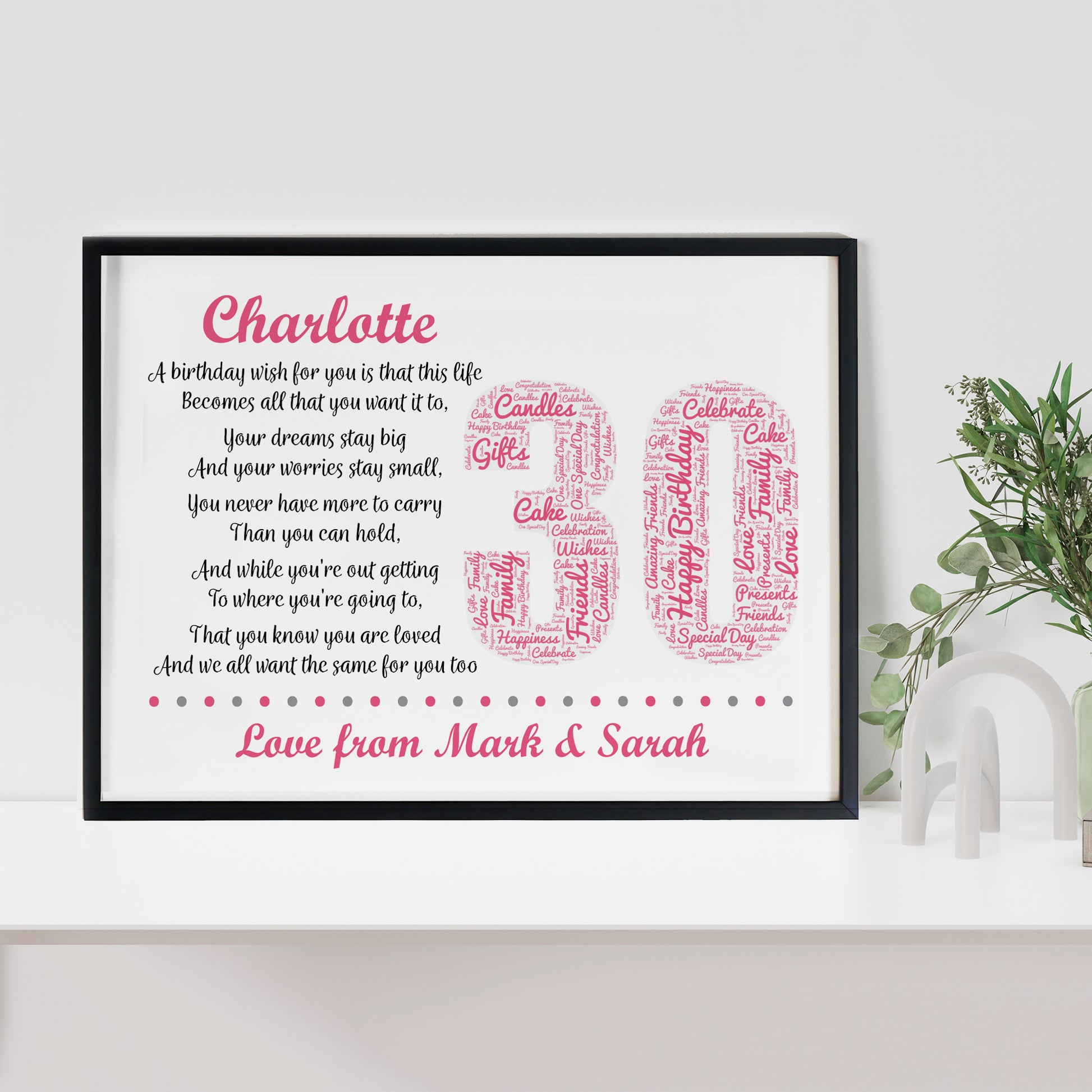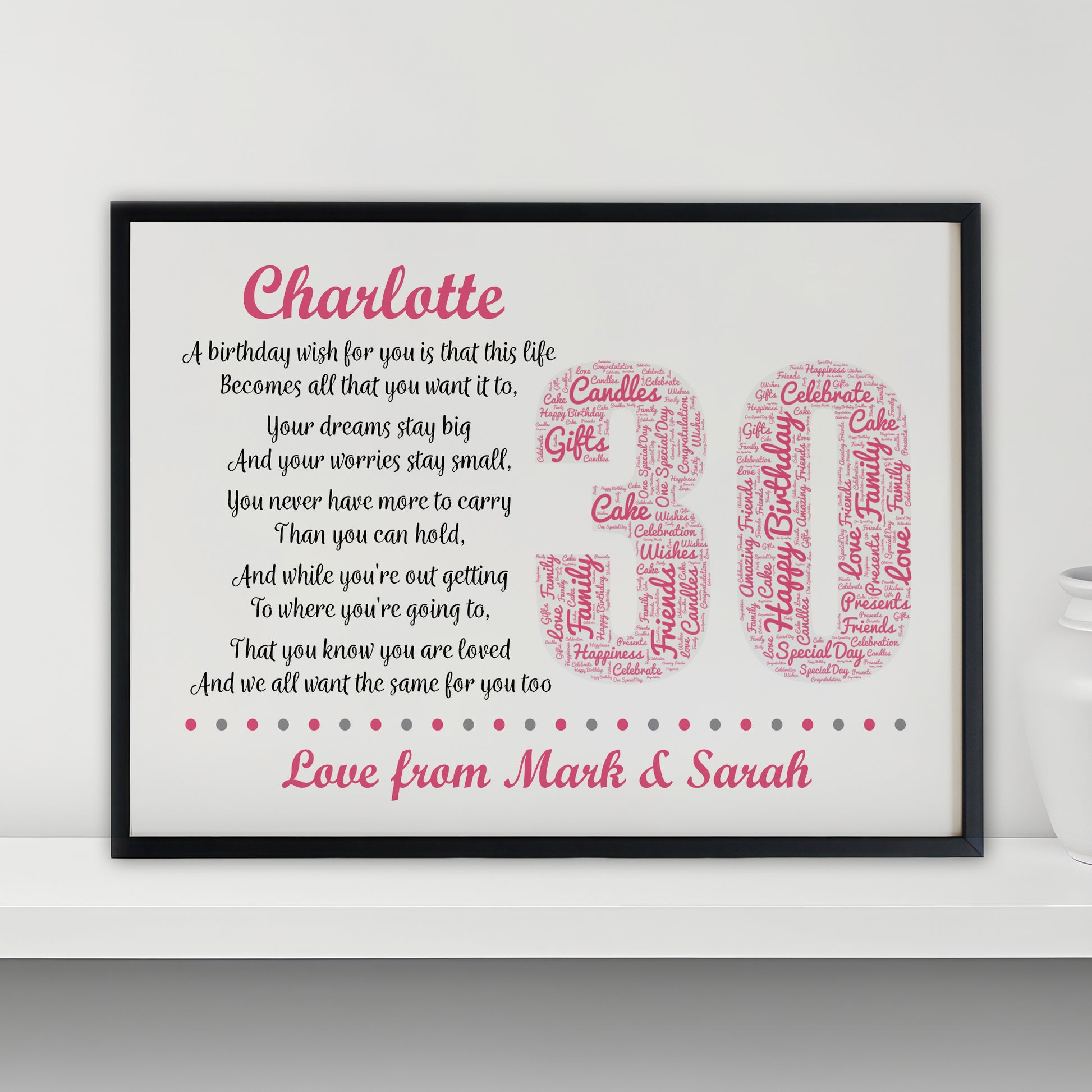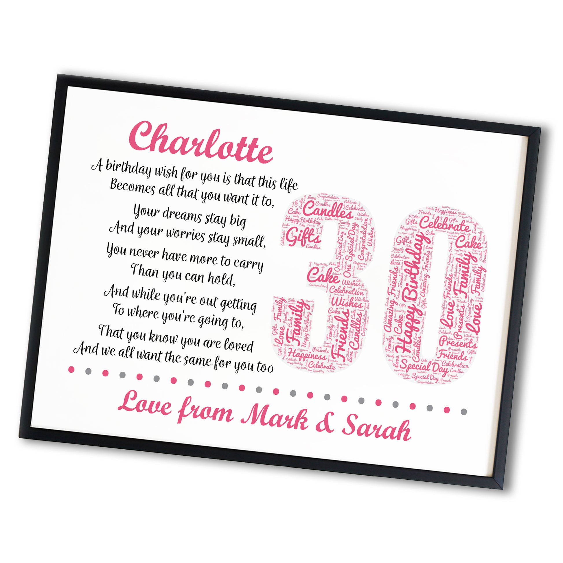 Personalised 30th Birthday Gift for Mum Daughter A3 Framed Print