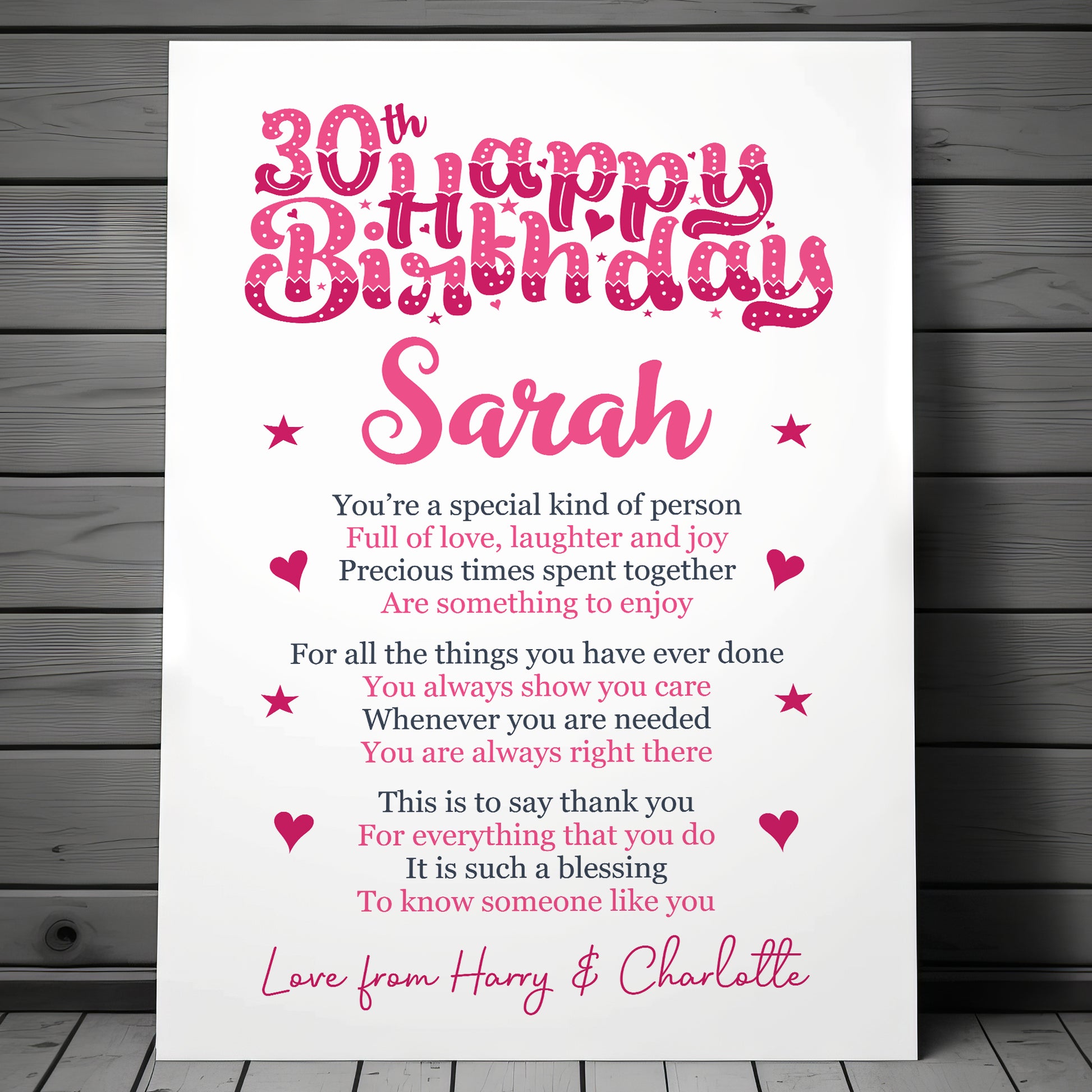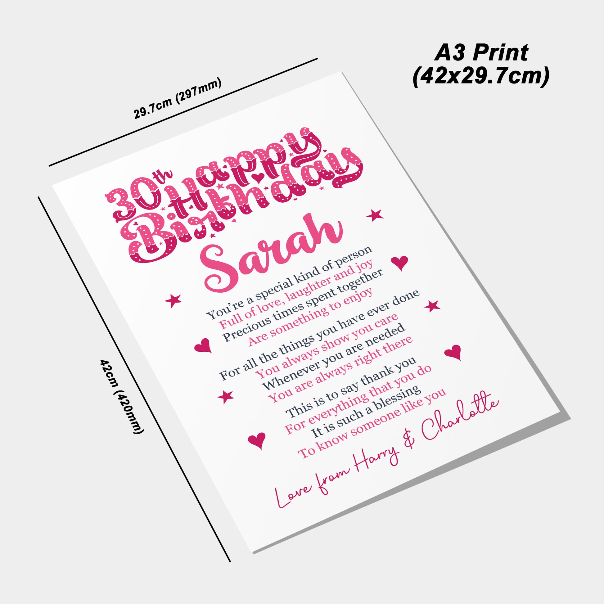 PERSONALISED 30th Birthday Gifts For Her Gift For Daughter A3