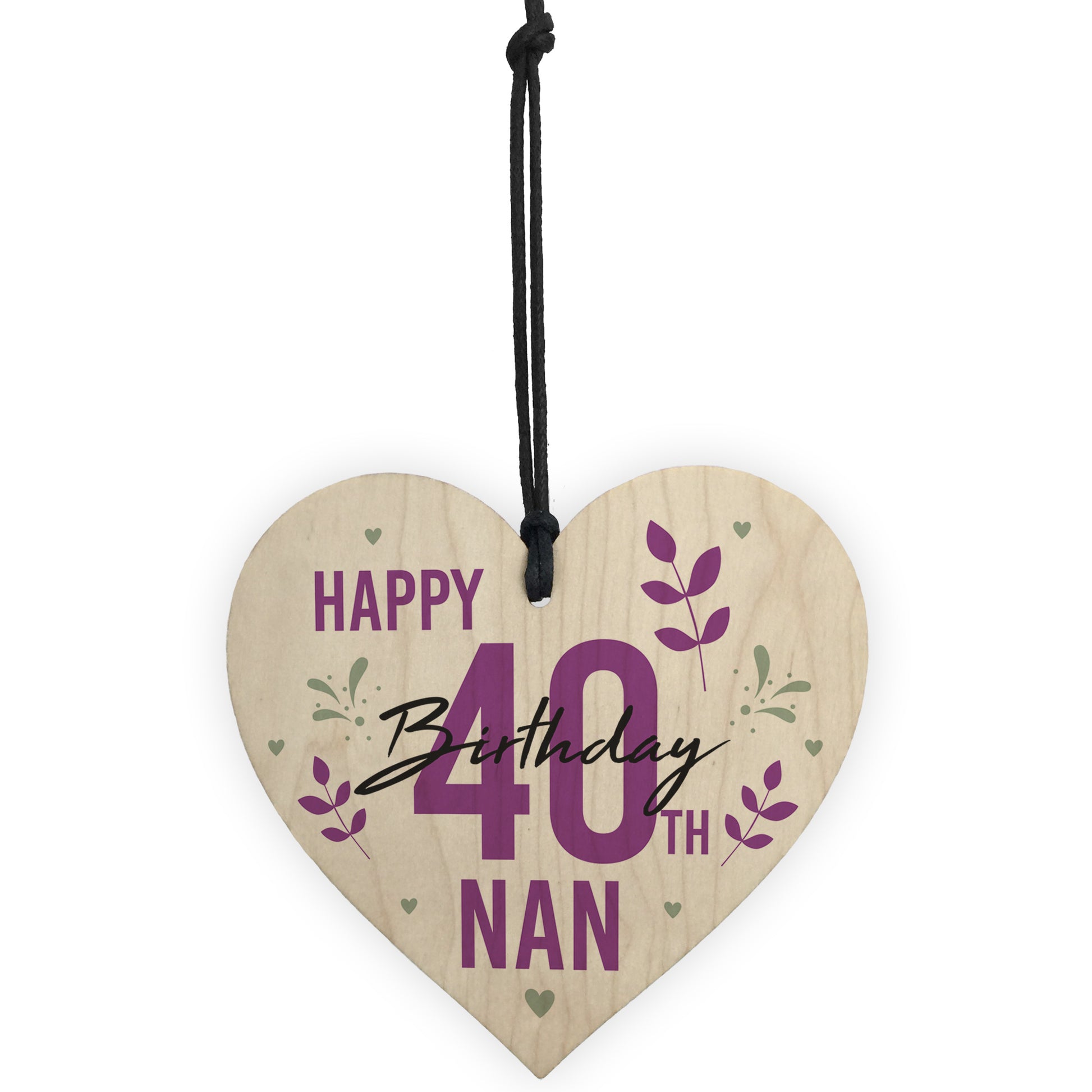 Personalised 40th 50th 60th Birthday Gift For Nan Wood Heart