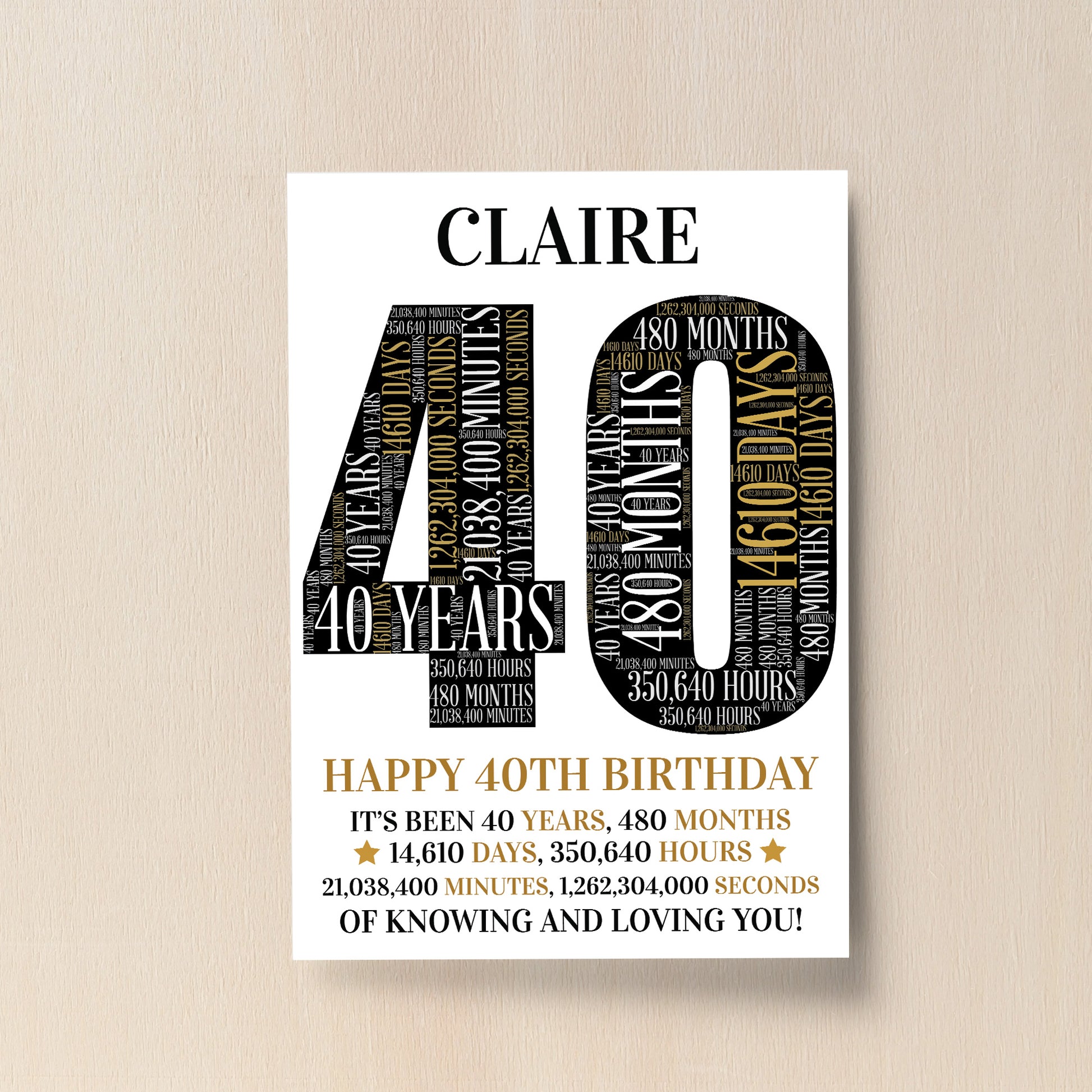 Personalised 40th Birthday Gift 40th Word Art Print 40th Gifts
