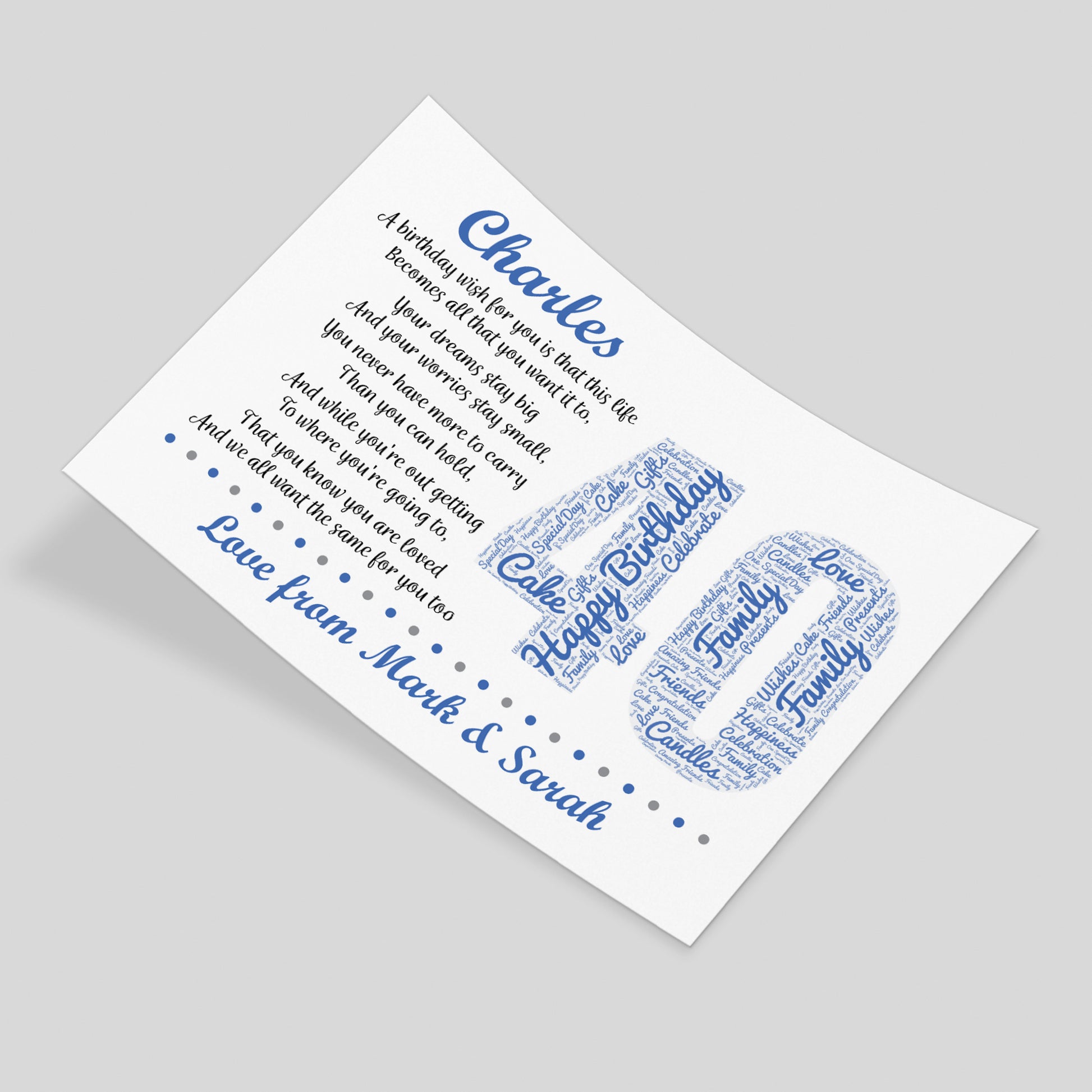 Personalised 40th Birthday Gifts for Him Husband Dad A3 Print