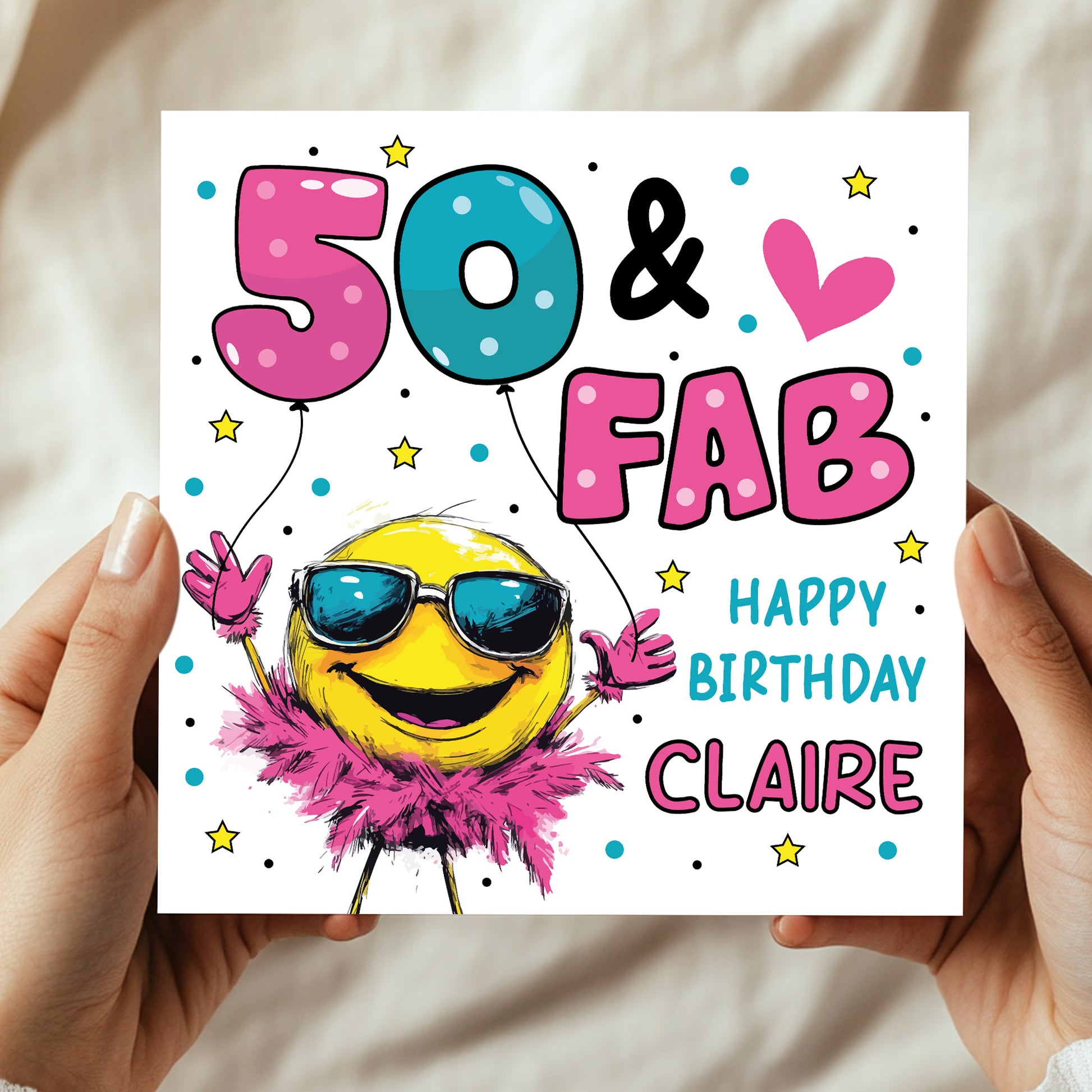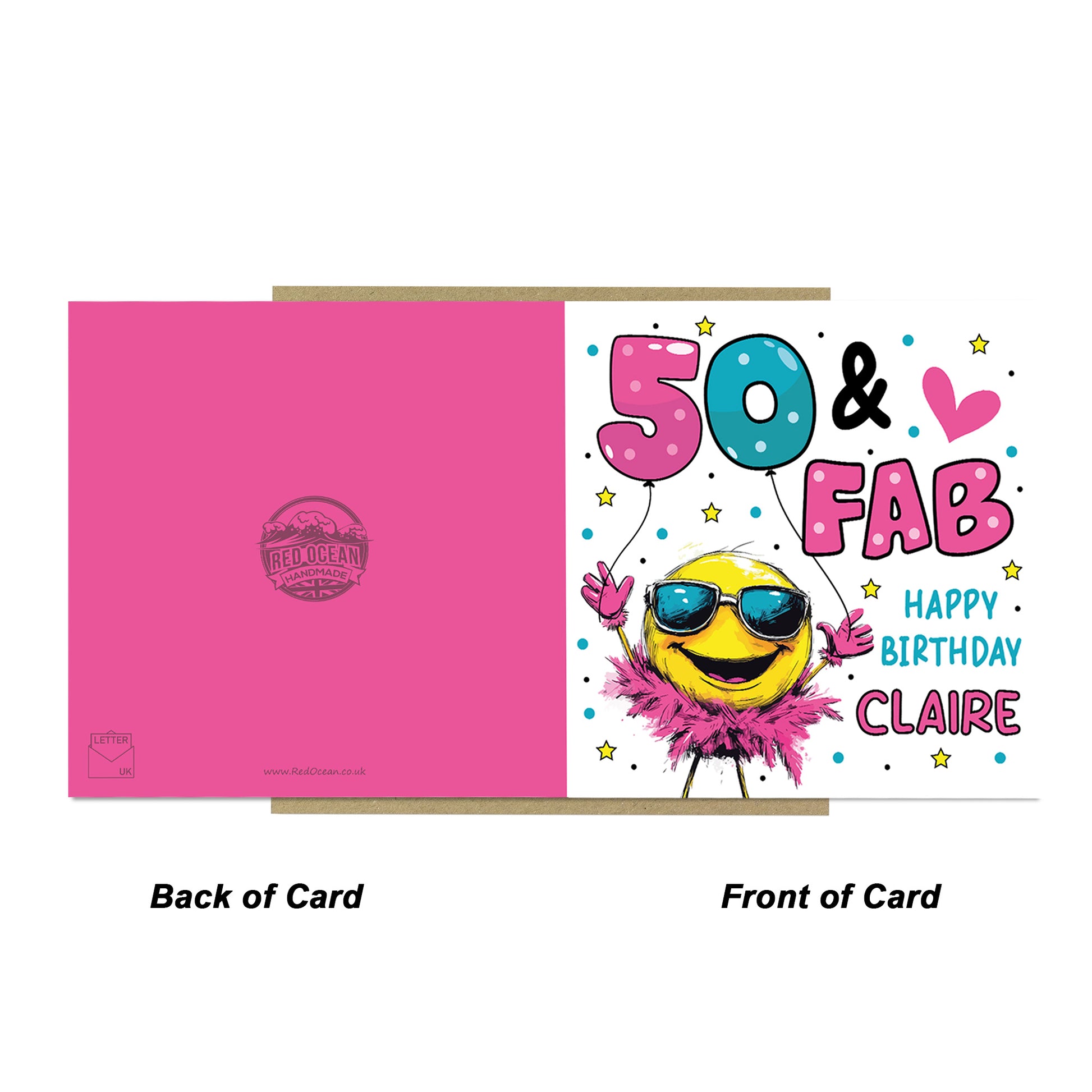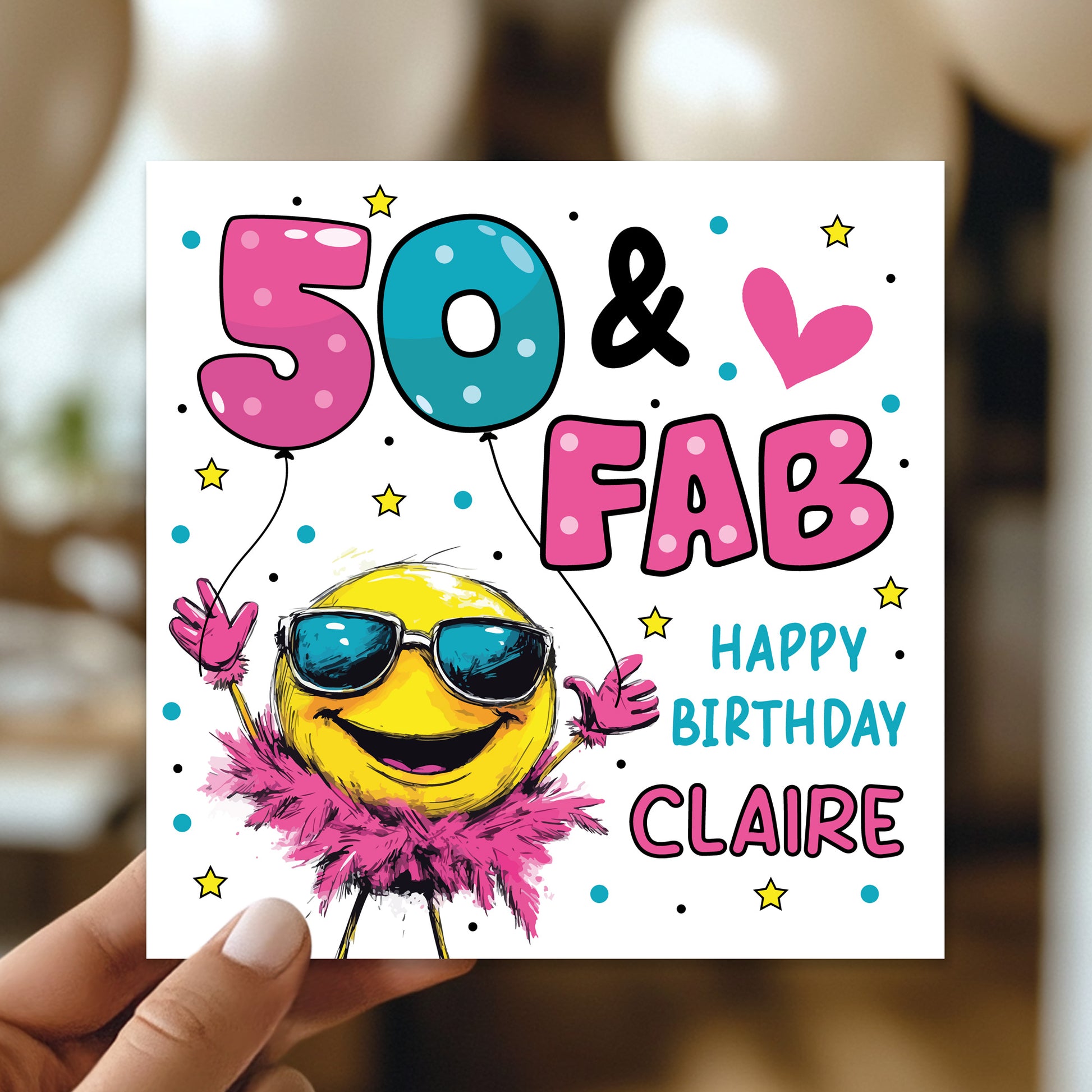 Personalised 50th Birthday Card For Women 50 And Fab For Mum