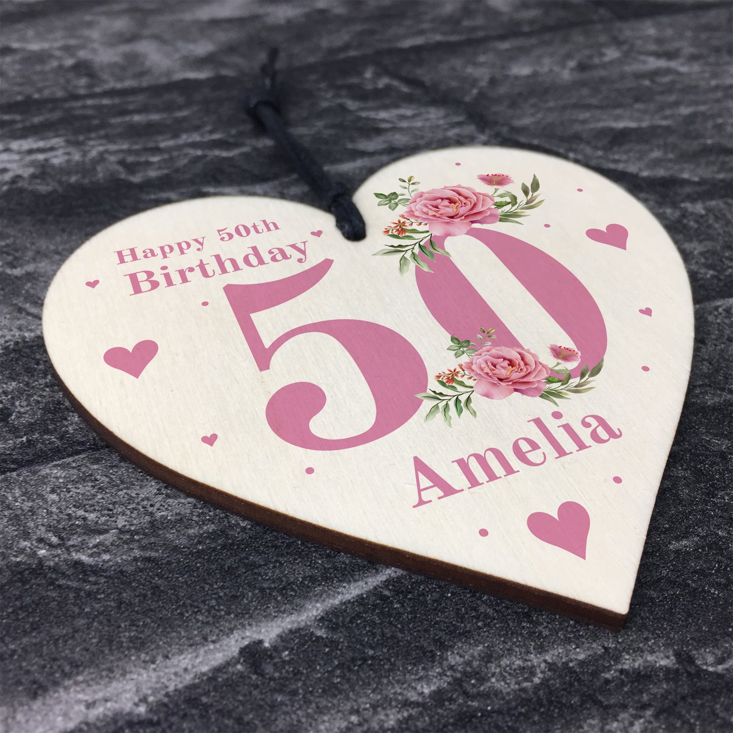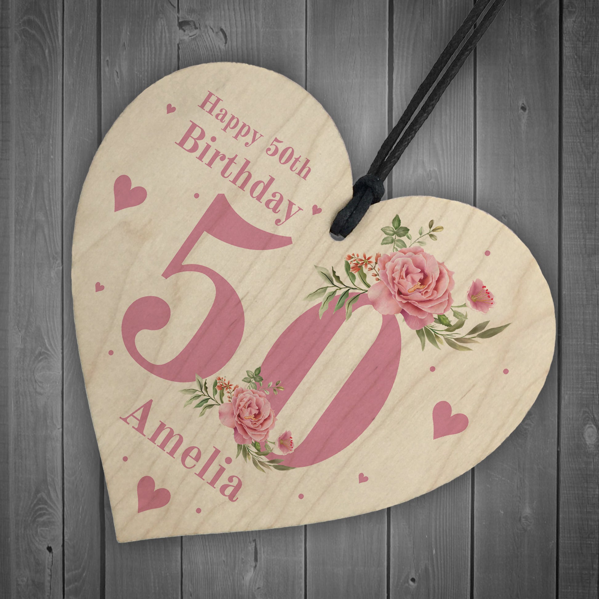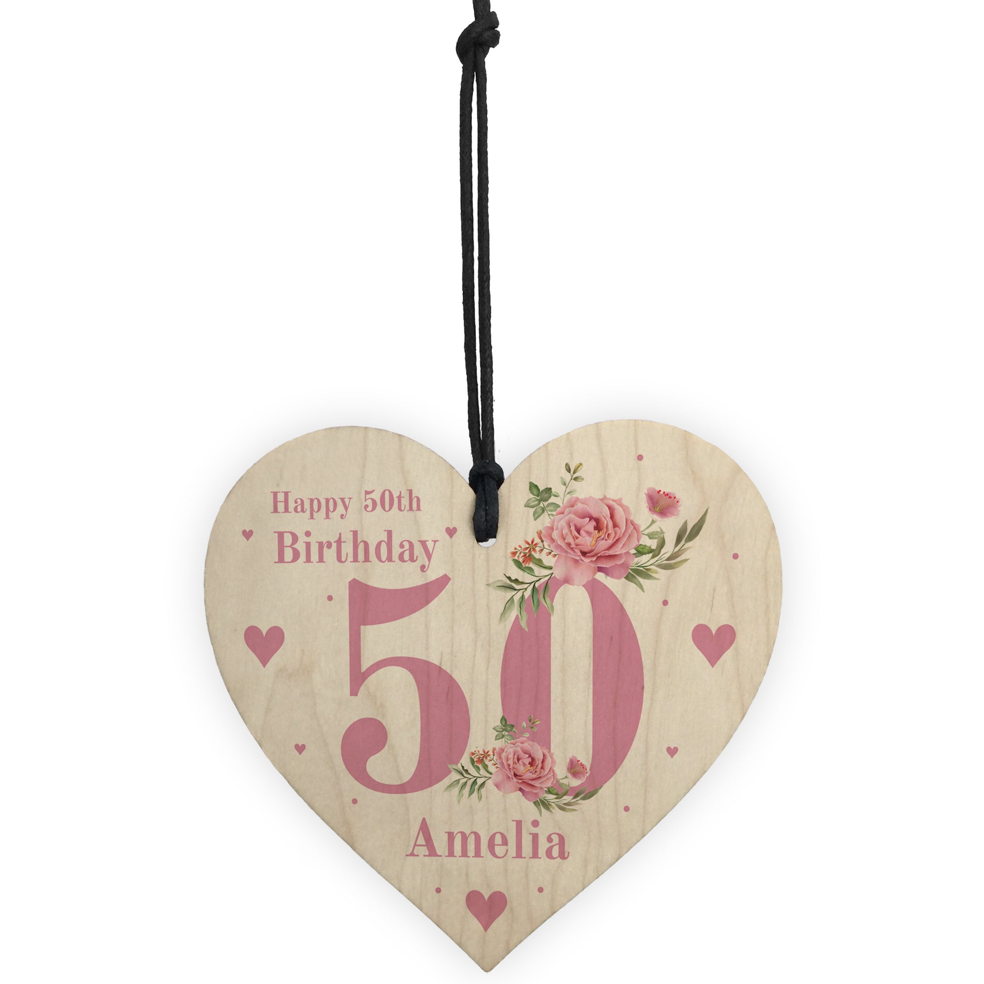 Personalised 50th Birthday Card Mum Sister Auntie Friend Heart