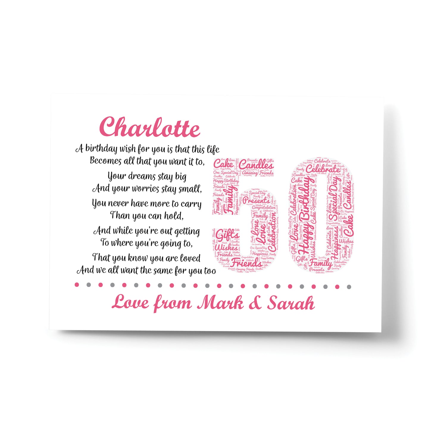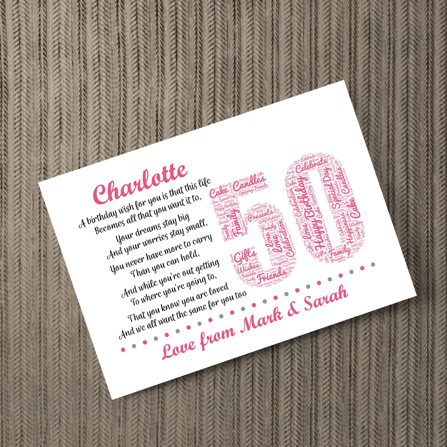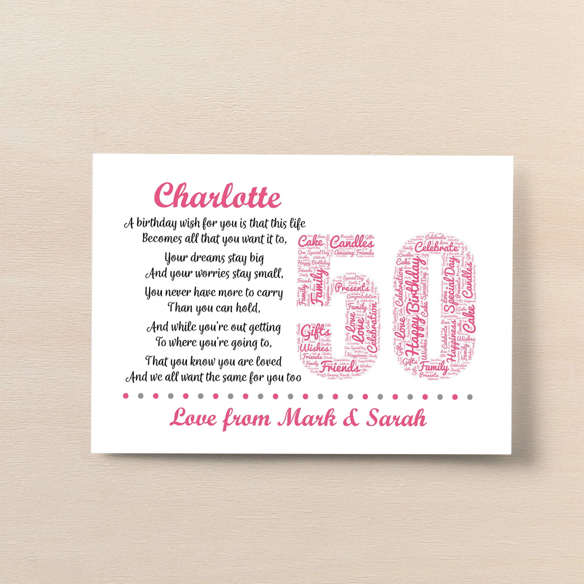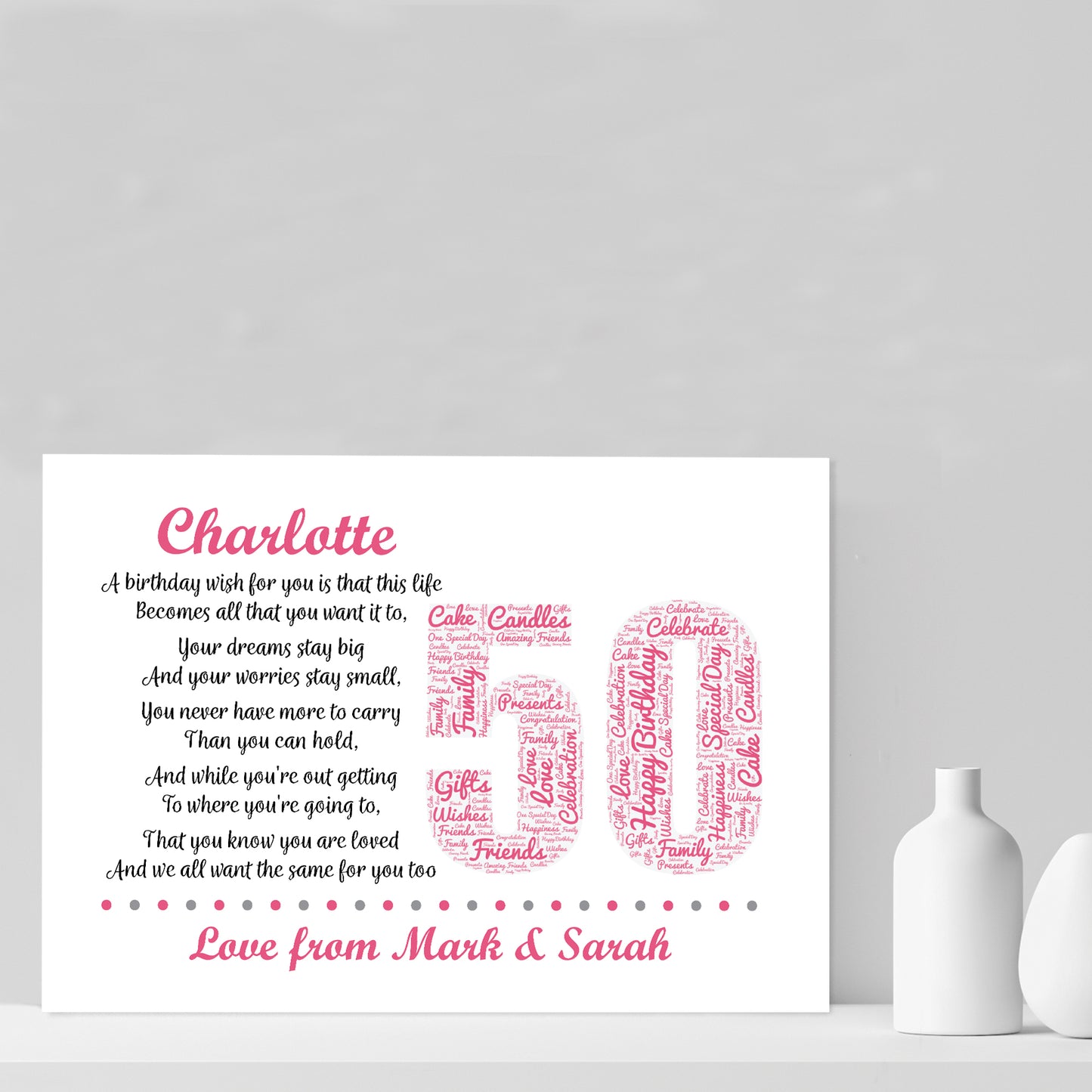 Personalised 50th Birthday Gifts for Her Women Mum A4 Print