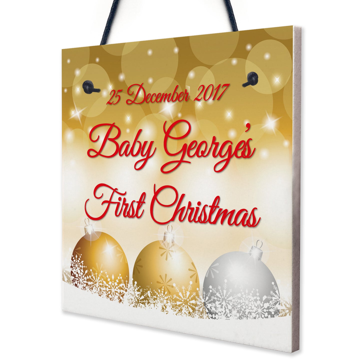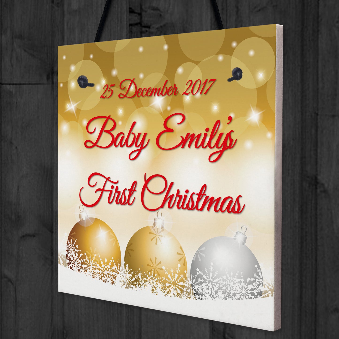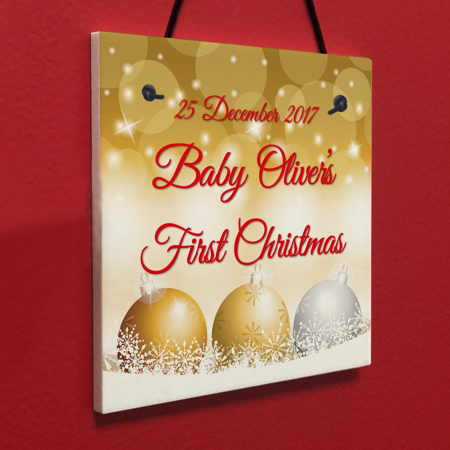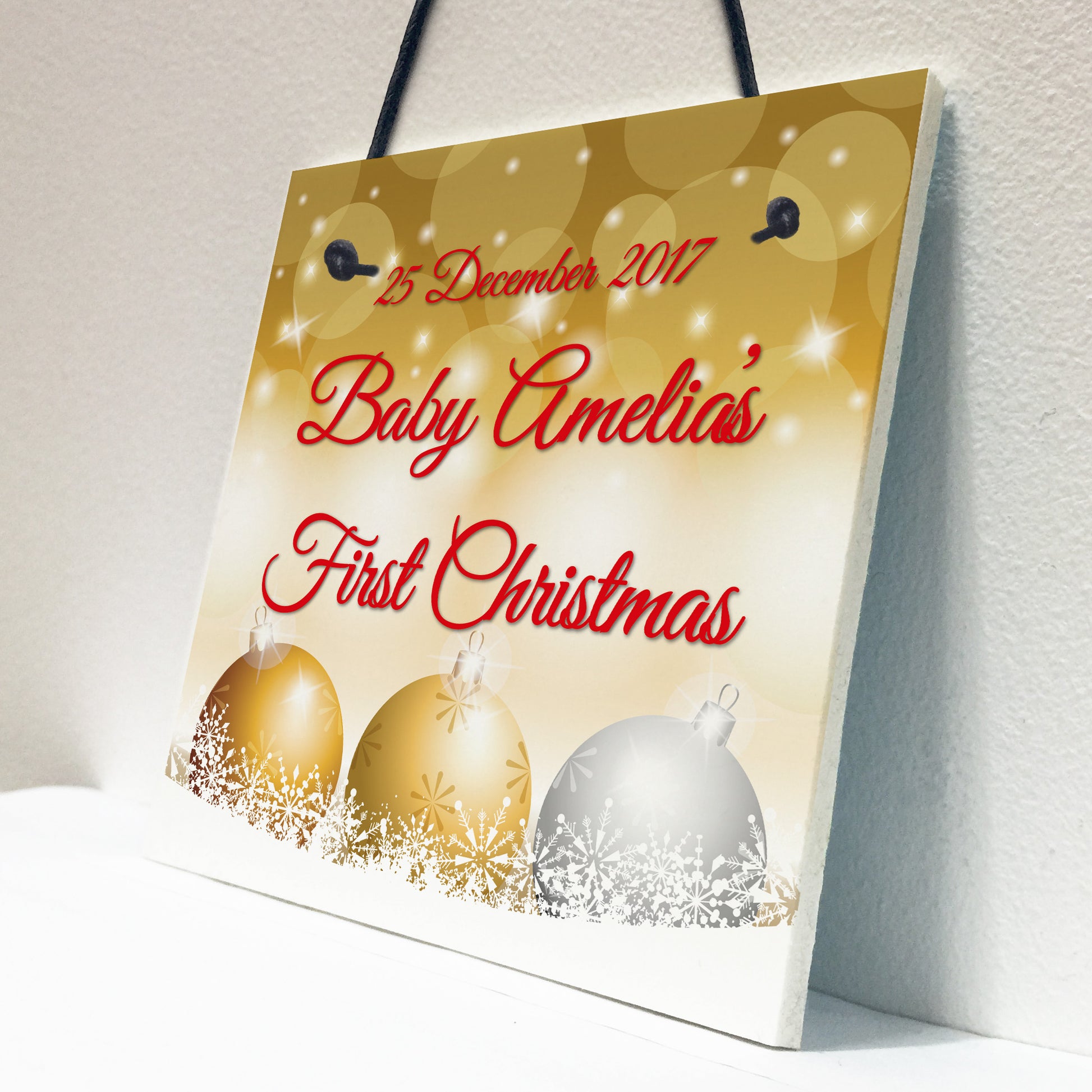 Personalised Baby First 1st Christmas Tree Bauble Hanging Plaque
